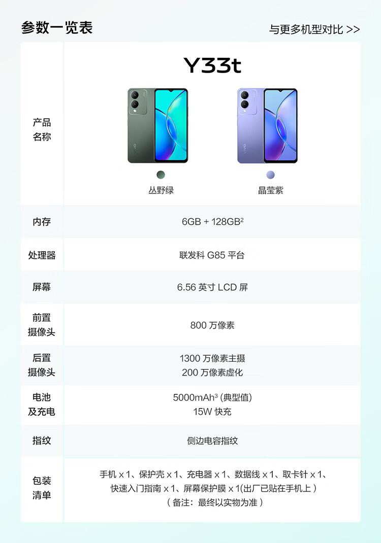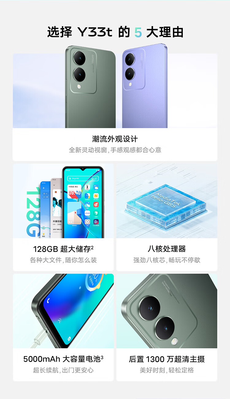 Vivo Y33t 6GB+128GB crystal purple 5000mAh battery with 13 million pixel eight core processor, all network connected elderly phone