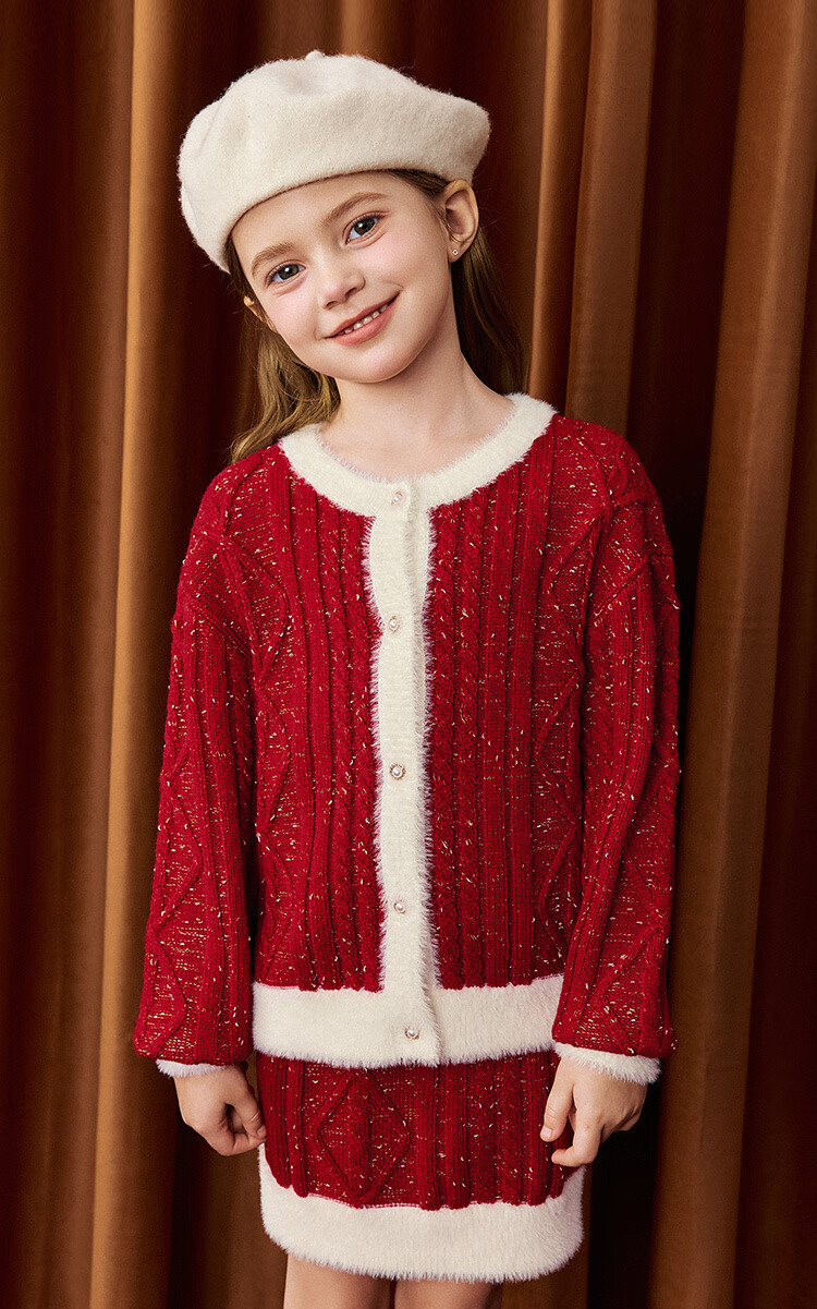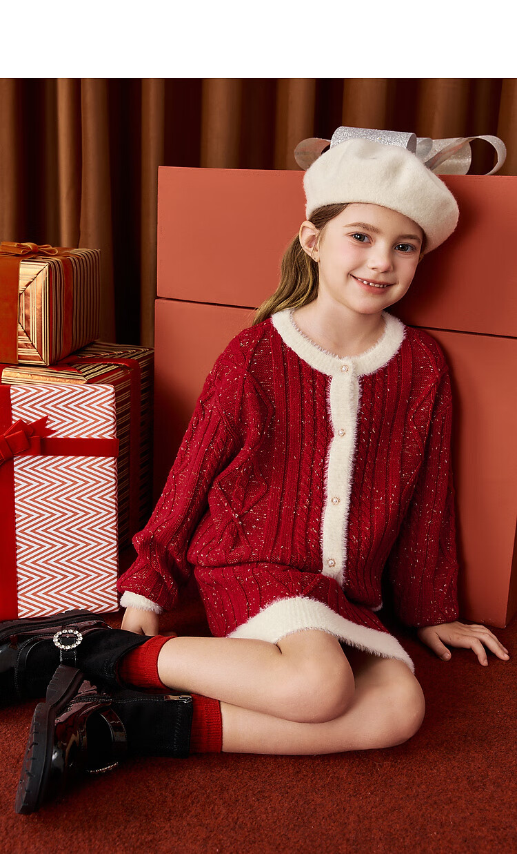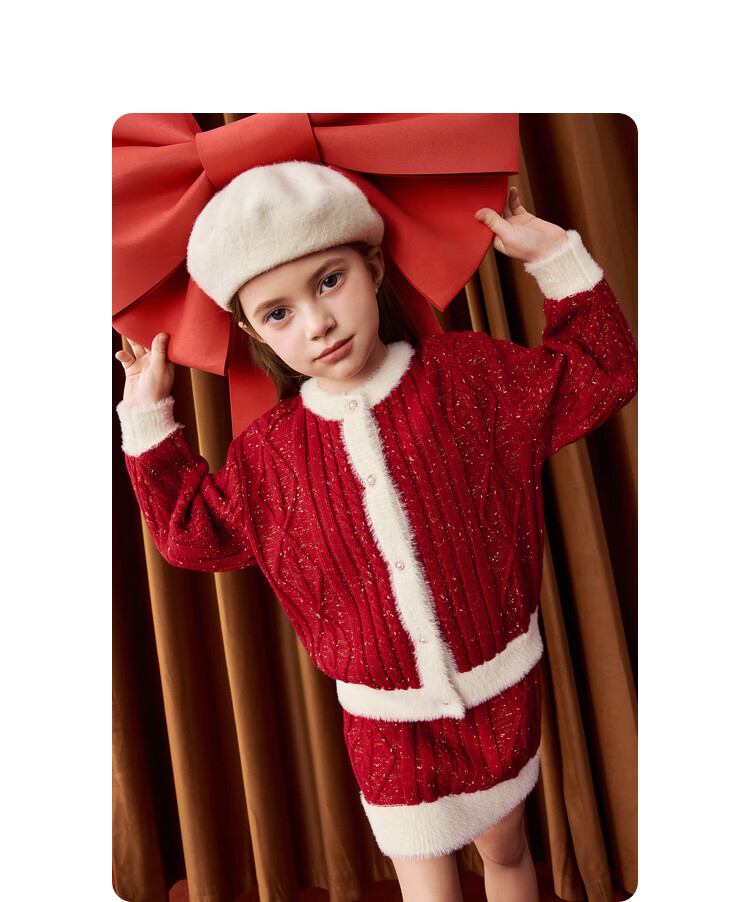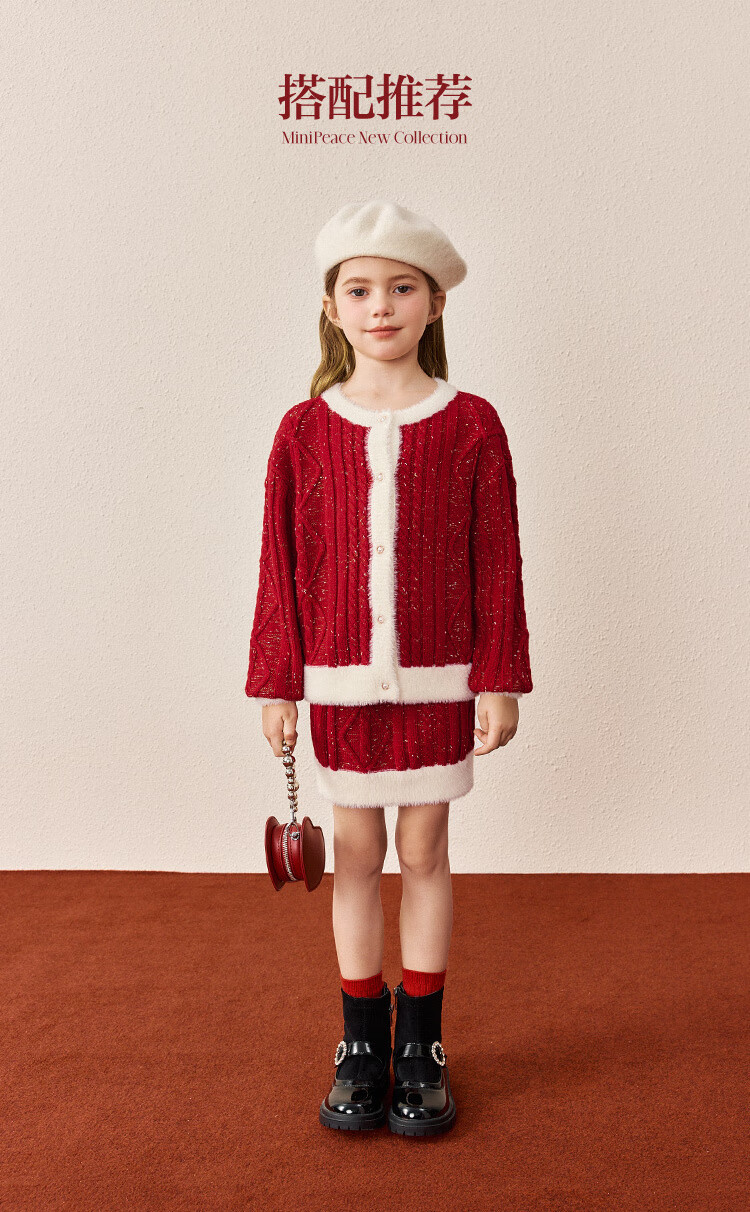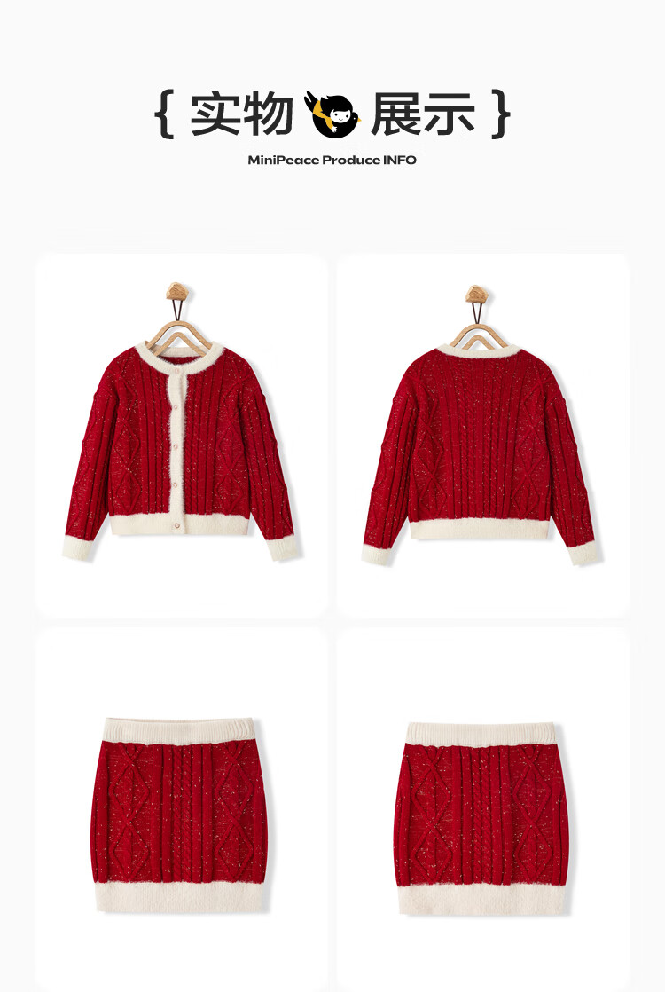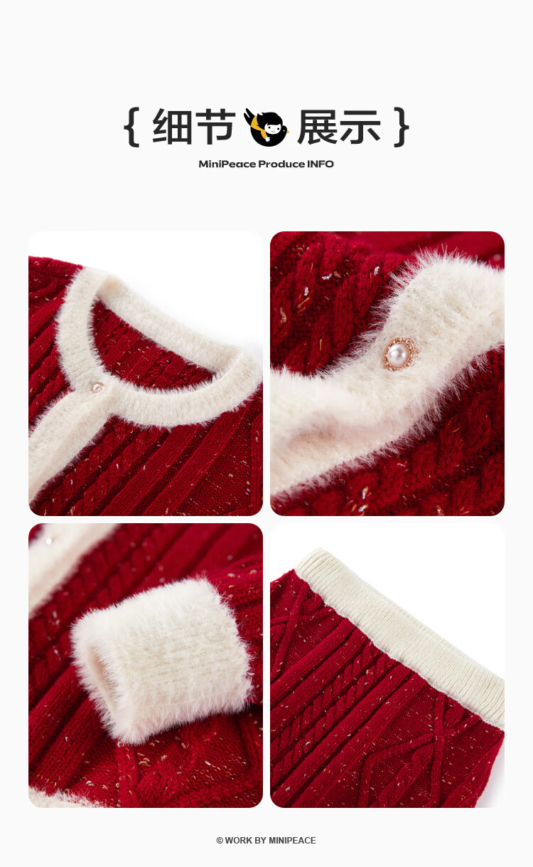 商品名称:MiniPeace太平鸟童装女童红色套装新年衣服金色亮丝针织2件套拜年 红色 120cm