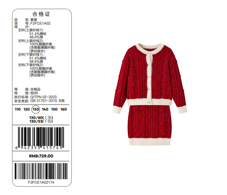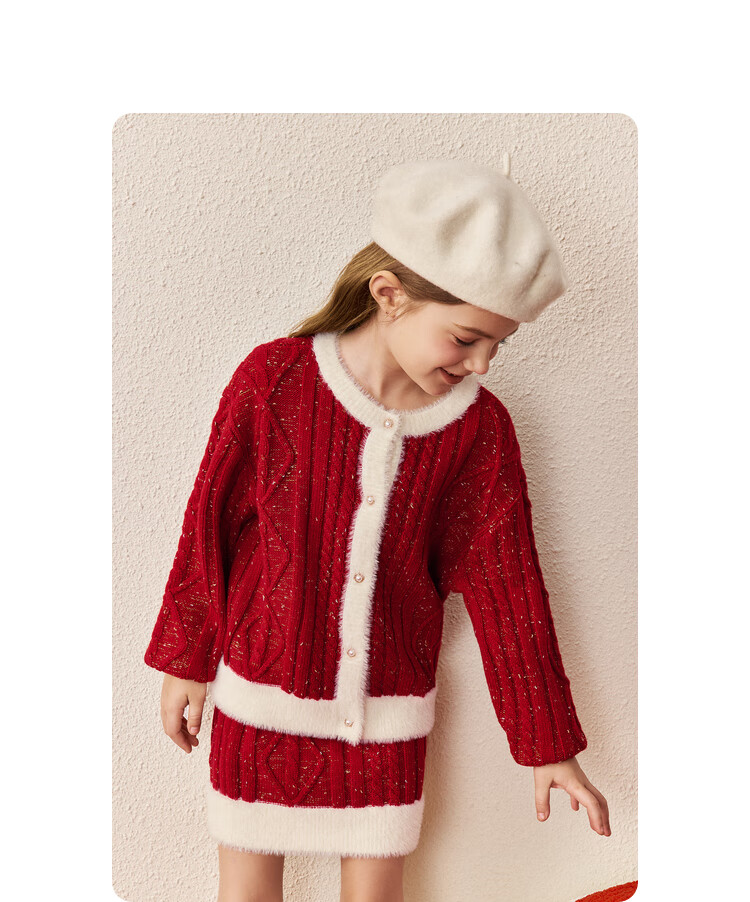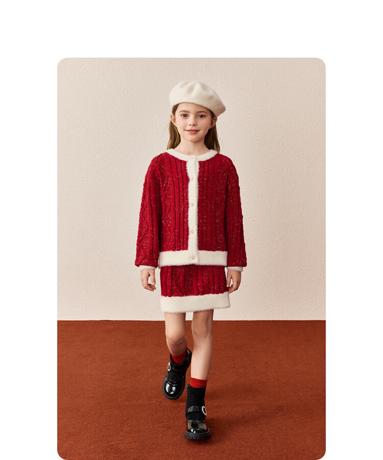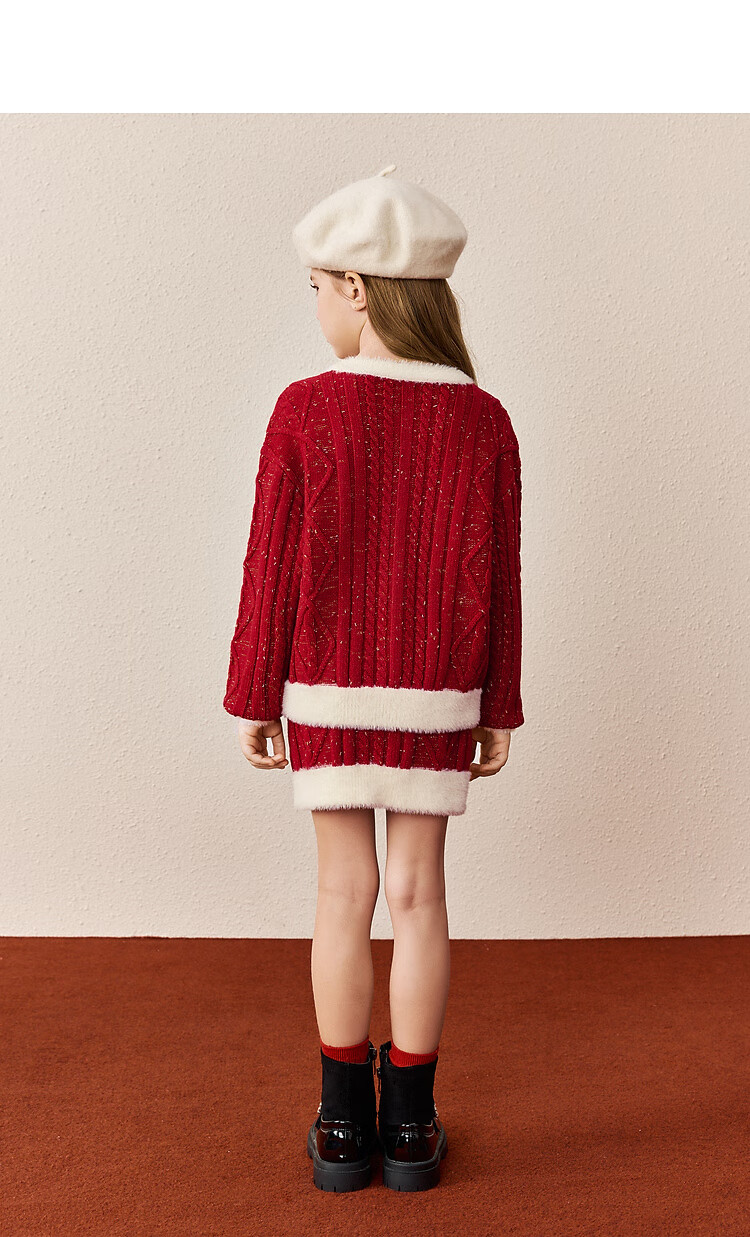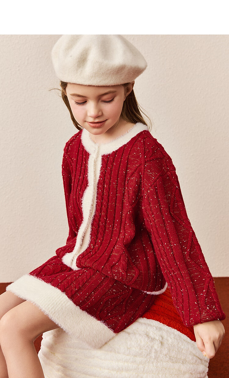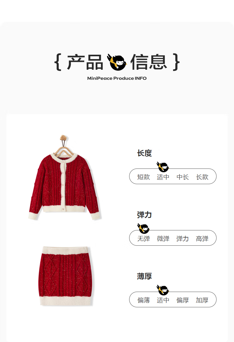 商品名称:MiniPeace太平鸟童装女童红色套装新年衣服金色亮丝针织2件套拜年 红色 120cm