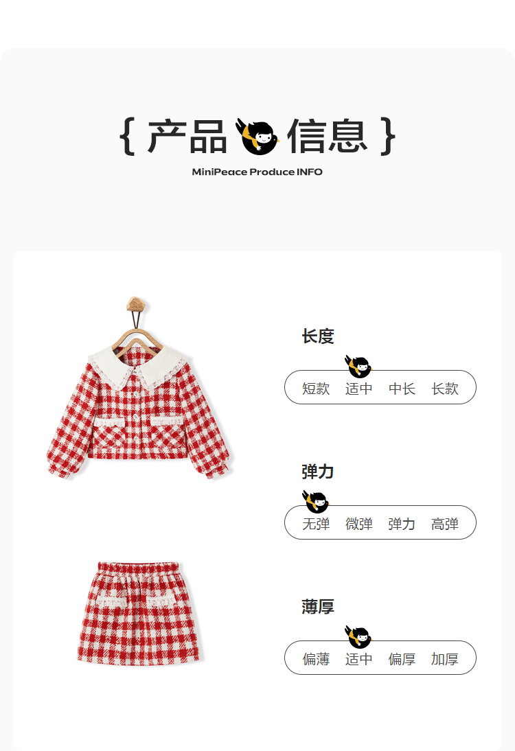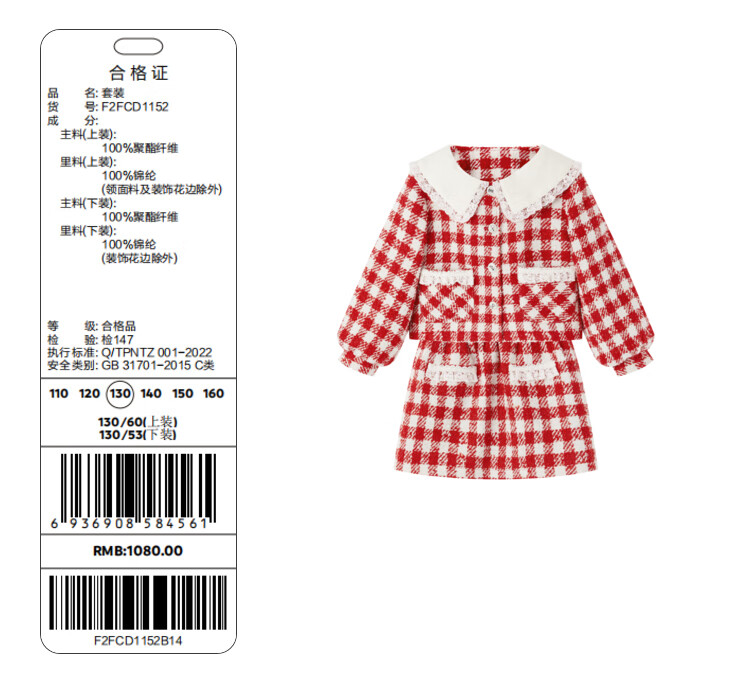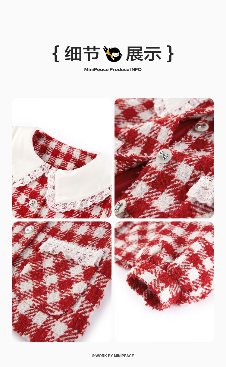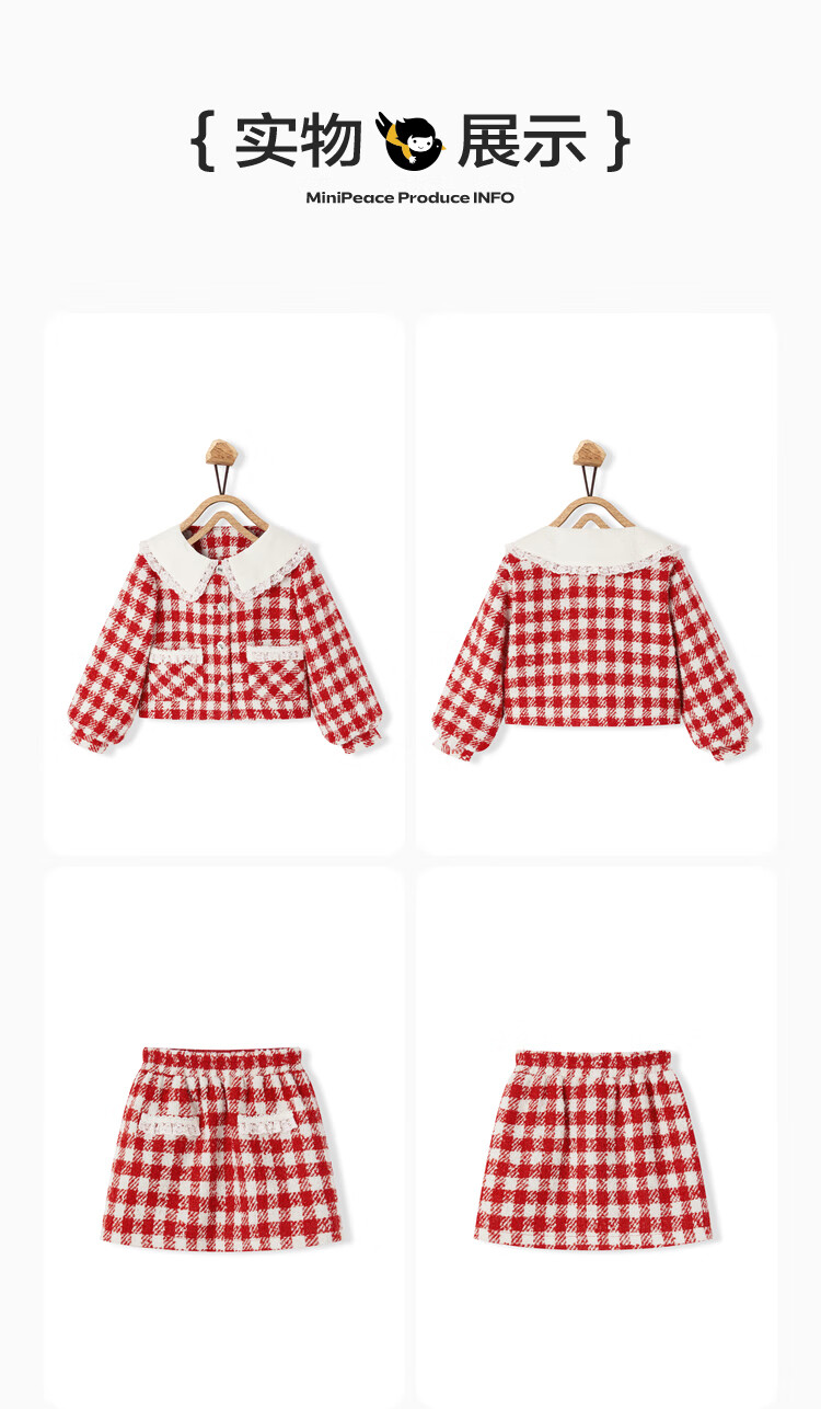 商品名称:MiniPeace商场同款太平鸟童装套装时髦小香风2023春新衣服 红格纹 150cm