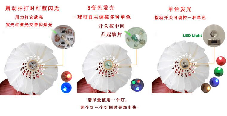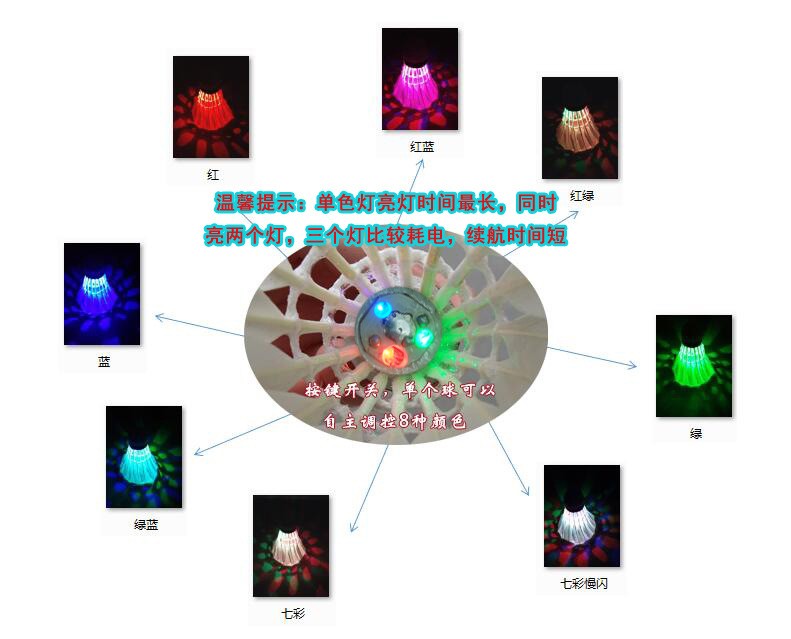 商品名称:8只发光羽毛球带灯七彩闪光夜用打烂塑料尼龙LED夜光羽毛球 耐打单色常亮发光鹅毛球4只装