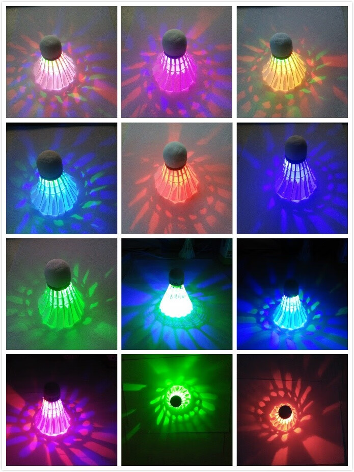 Set of 4 sets of 8 glowing badminton balls with colorful flashing lights and broken plastic nylon LED night light badminton balls