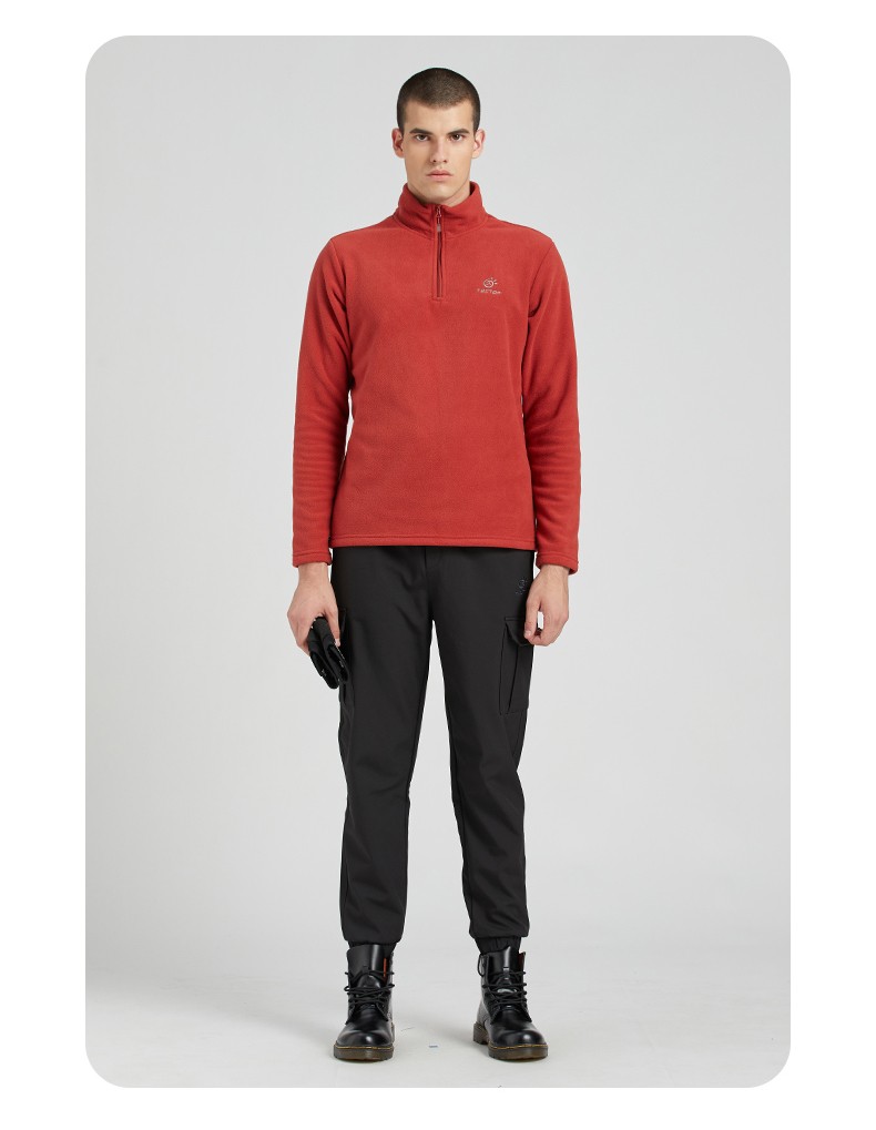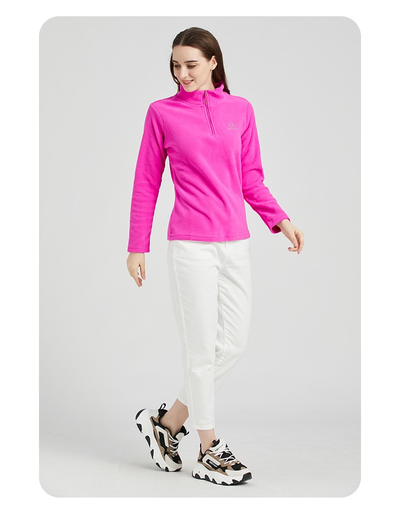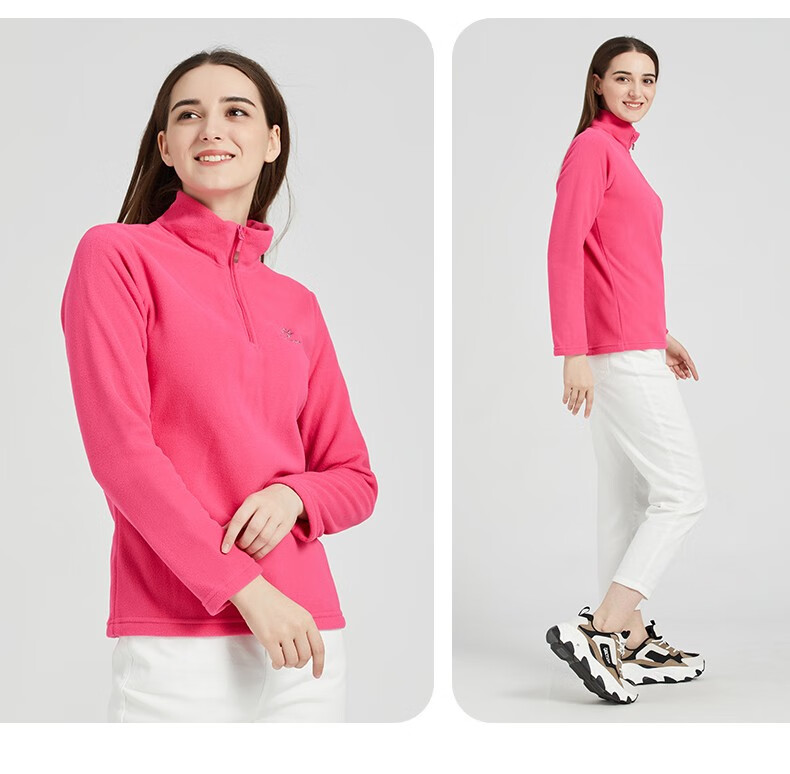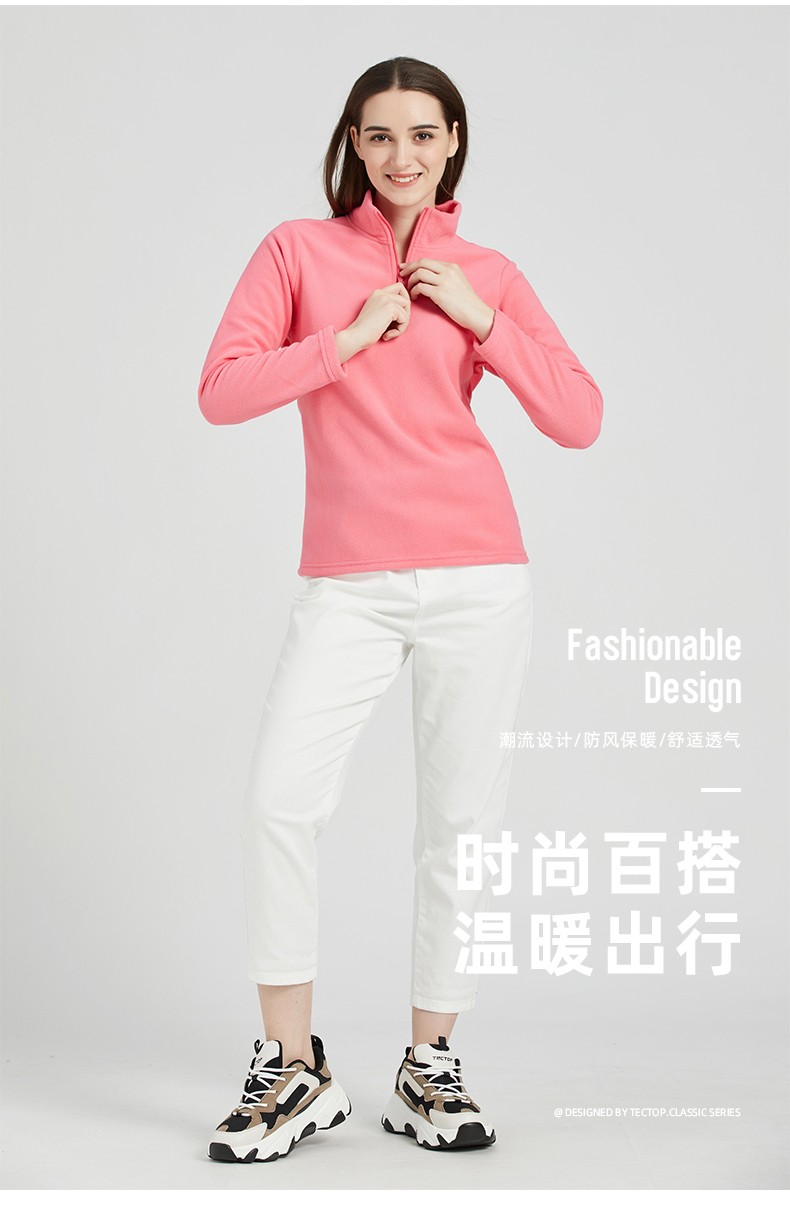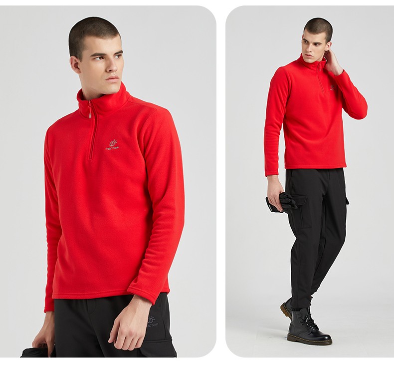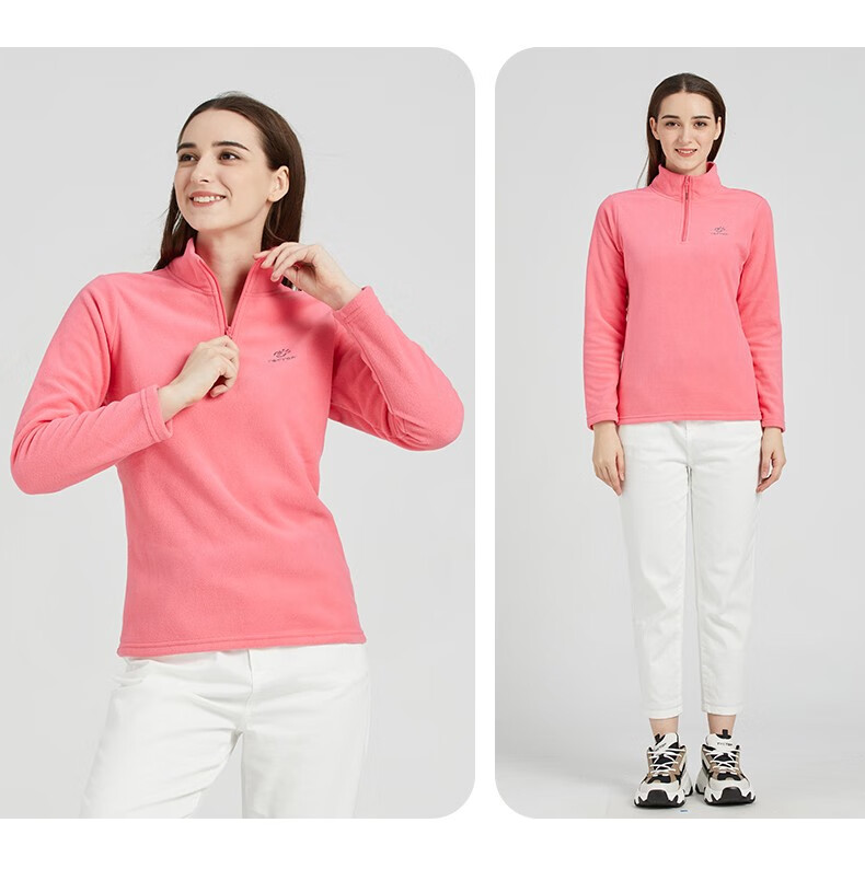 TECTOP trendy fleece jacket for men and women, zippered stand up collar base sweater, thickened warm pullover jacket, plush outdoor 034 women's watermelon red L
