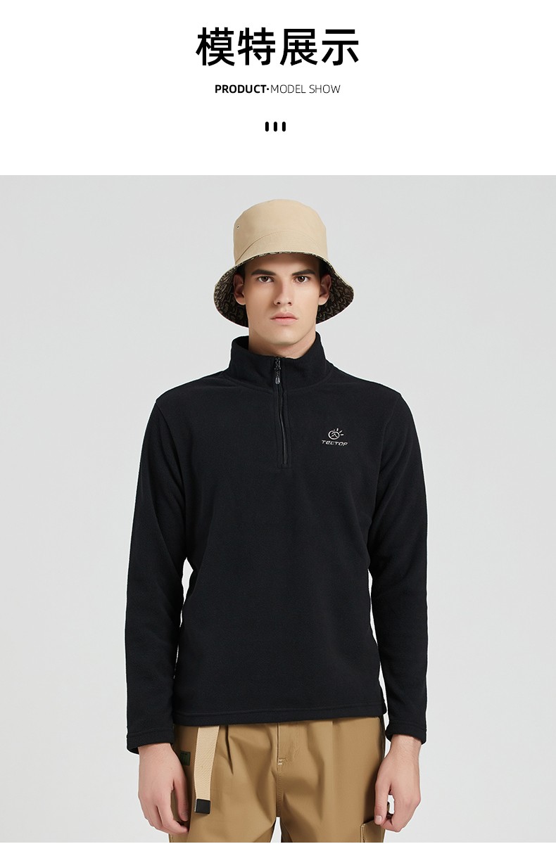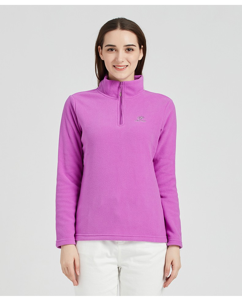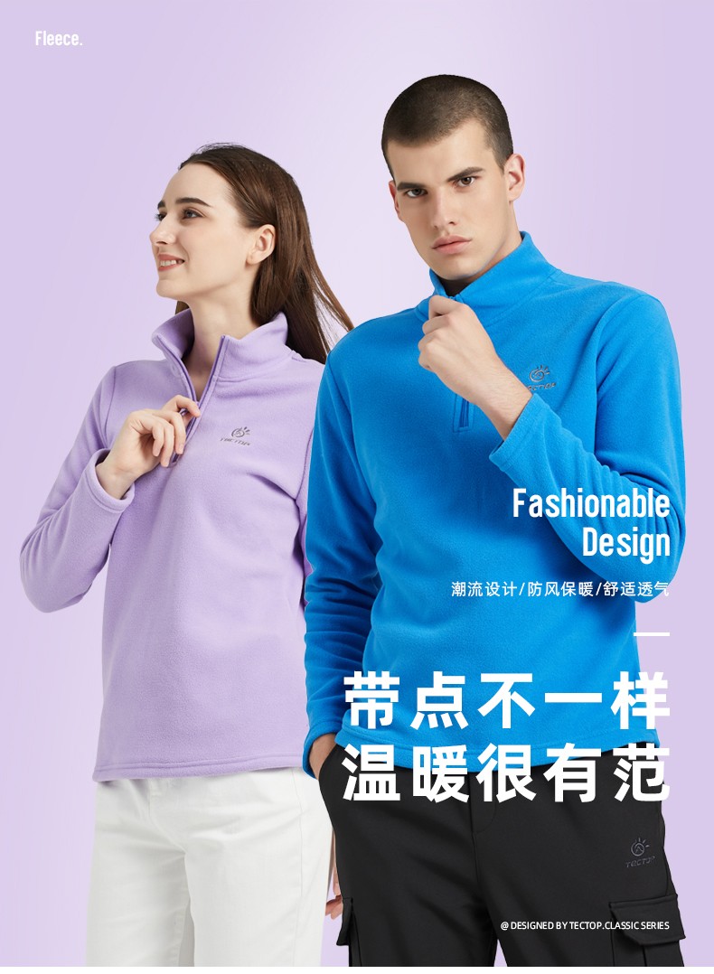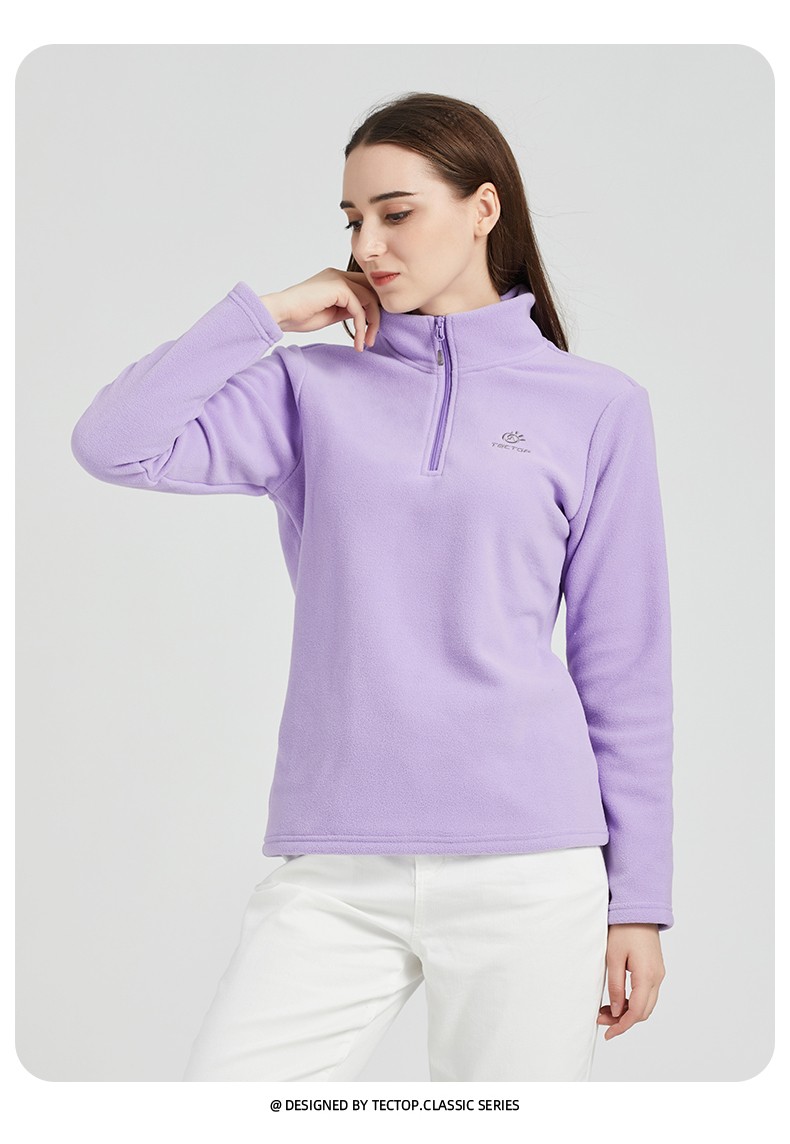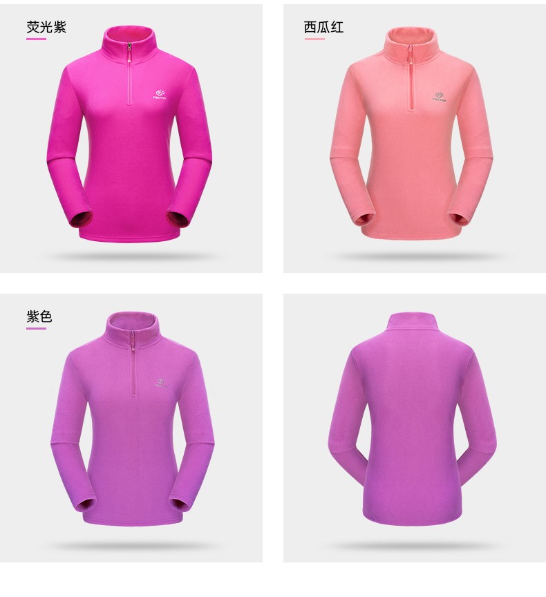 TECTOP trendy fleece jacket for men and women, zippered stand up collar base sweater, thickened warm pullover jacket, plush outdoor 034 women's watermelon red L
