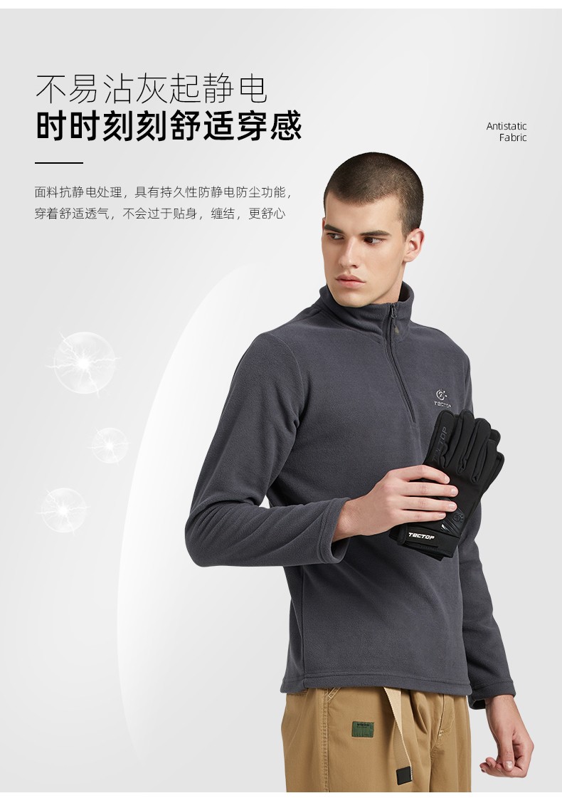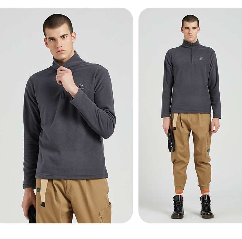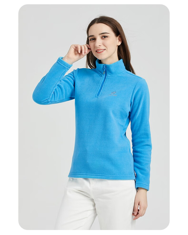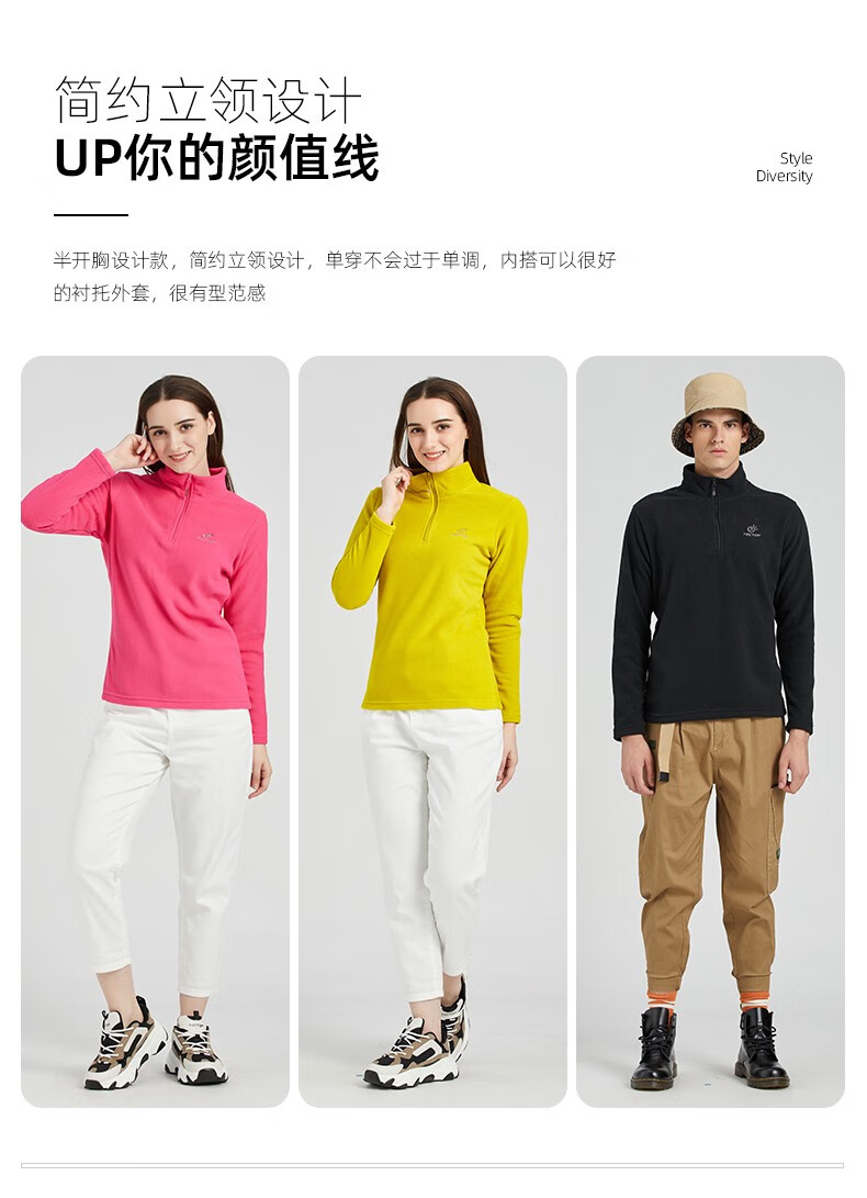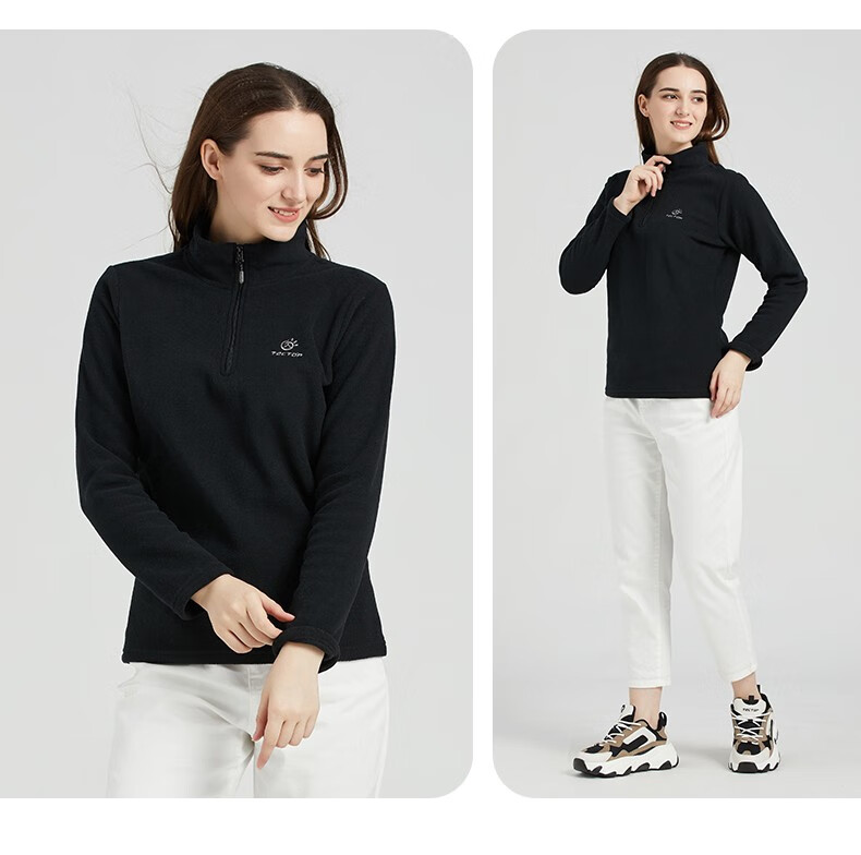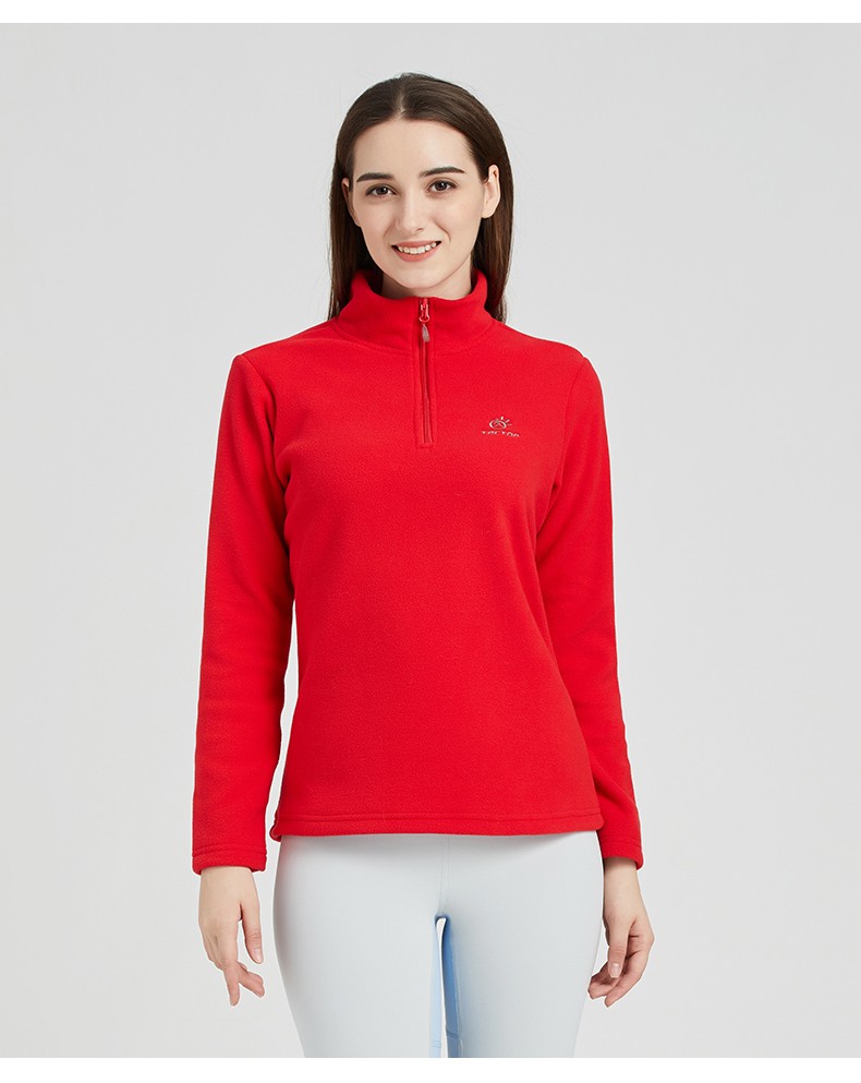 TECTOP trendy fleece jacket for men and women, zippered stand up collar base sweater, thickened warm pullover jacket, plush outdoor 034 women's watermelon red L