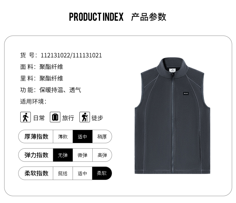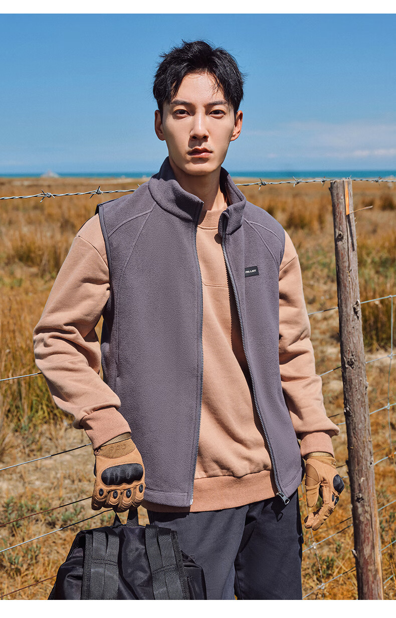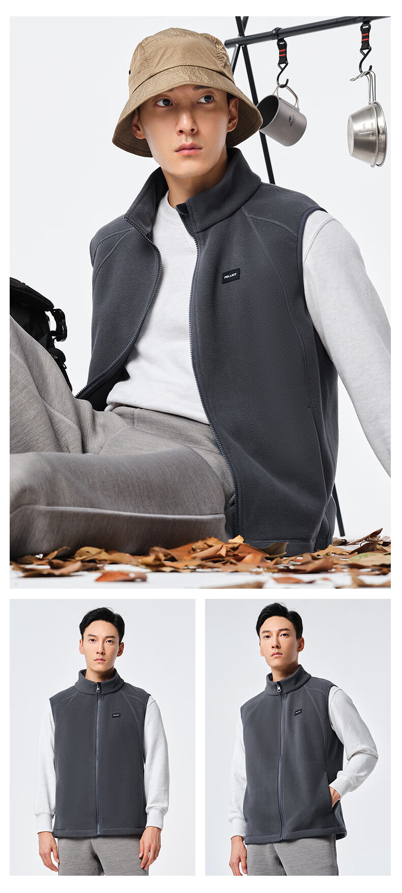 Boxi and fleece vest men's and women's fleece jacket autumn/winter camisole cardigan with plush vest 11131021 men's dark gray XL