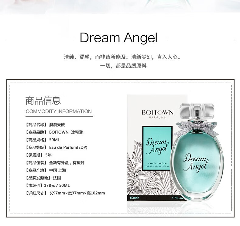 Boitown Women's perfume Romantic Angel Light Fragrance Lasting and Fresh Gift for Girl Girlfriend's Wife's Birthday and New Year