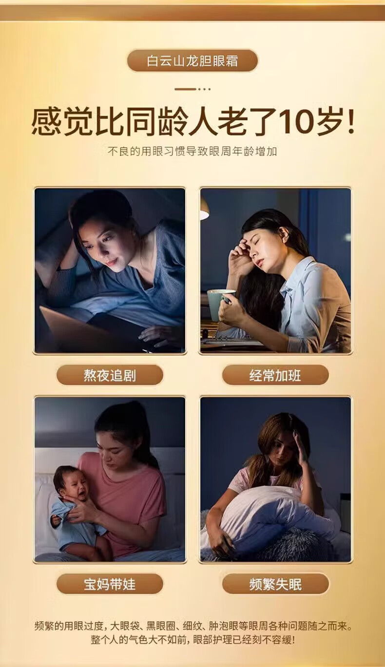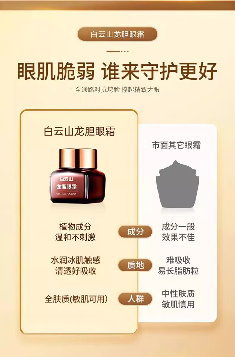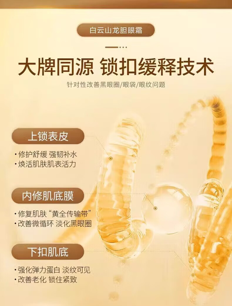 商品名称:白云山龙胆眼霜精华淡化细纹提拉紧致黑眼圈眼袋抗皱眼霜小棕瓶 拍1实发3瓶 20g *3