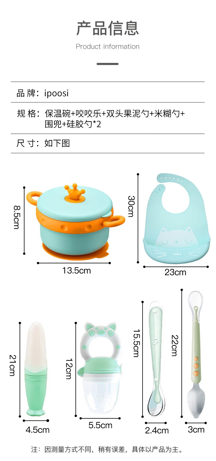商品名称:ipoosi婴儿辅食碗工具碗勺套装儿童餐具米糊勺软硅胶宝宝喂养工具注水碗 豪华辅食 八件套