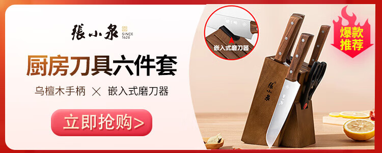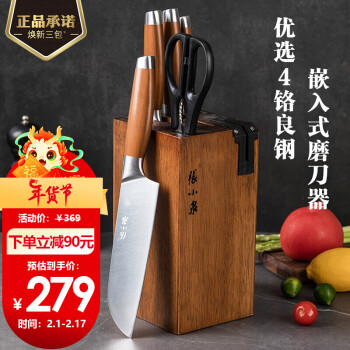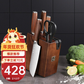 斩骨刀*1、切片刀*1、小厨刀*1、水果刀*1、厨房剪*1、刀座*1