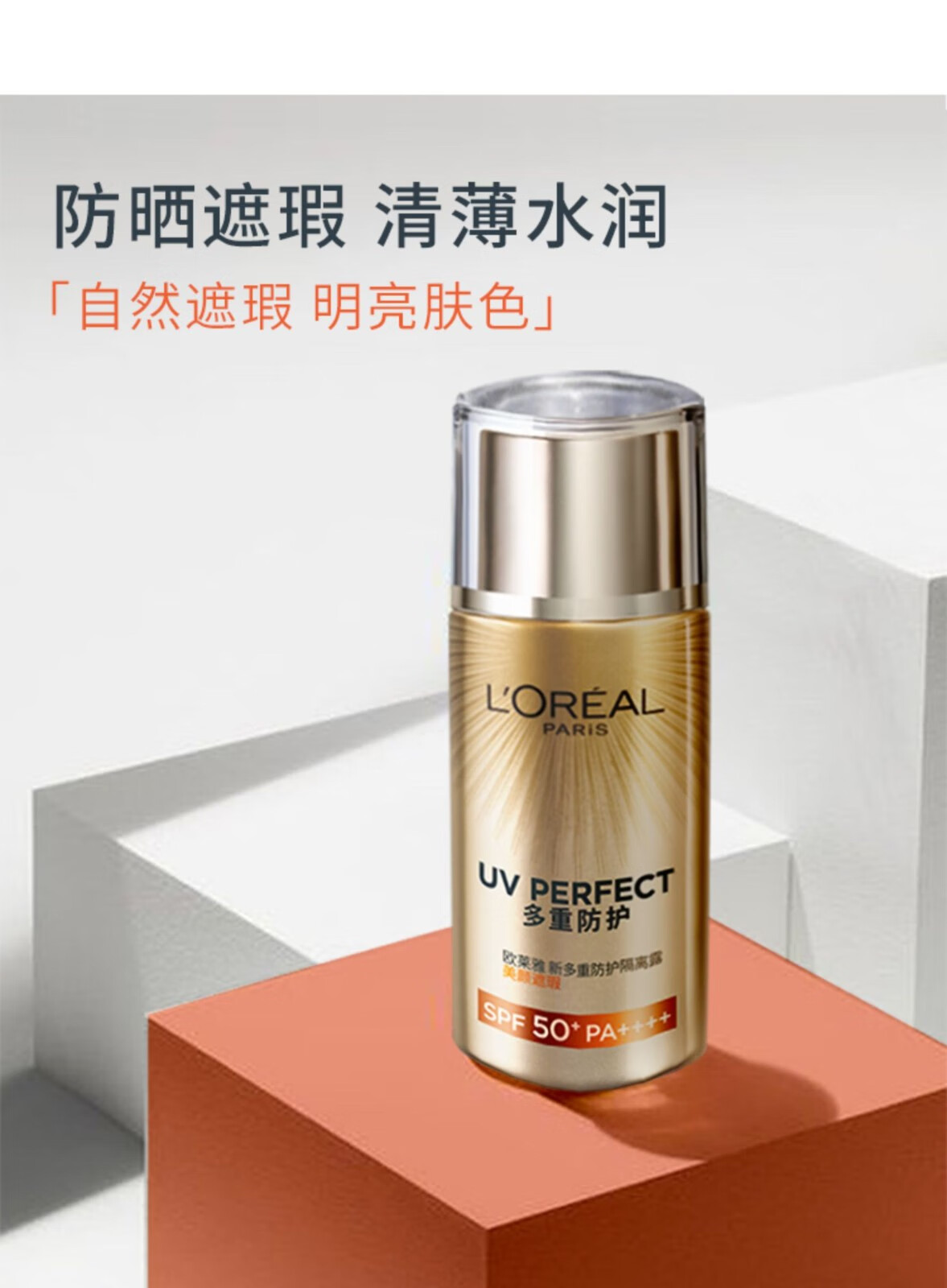 商品名称:欧莱雅(L'OREAL)防晒霜隔离霜女士小金瓶多重防护防晒乳霜女脸部SPF50+ PA++++ 外御内护小金管30ml