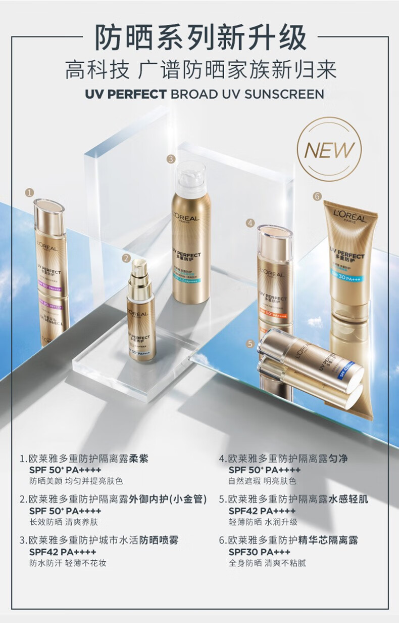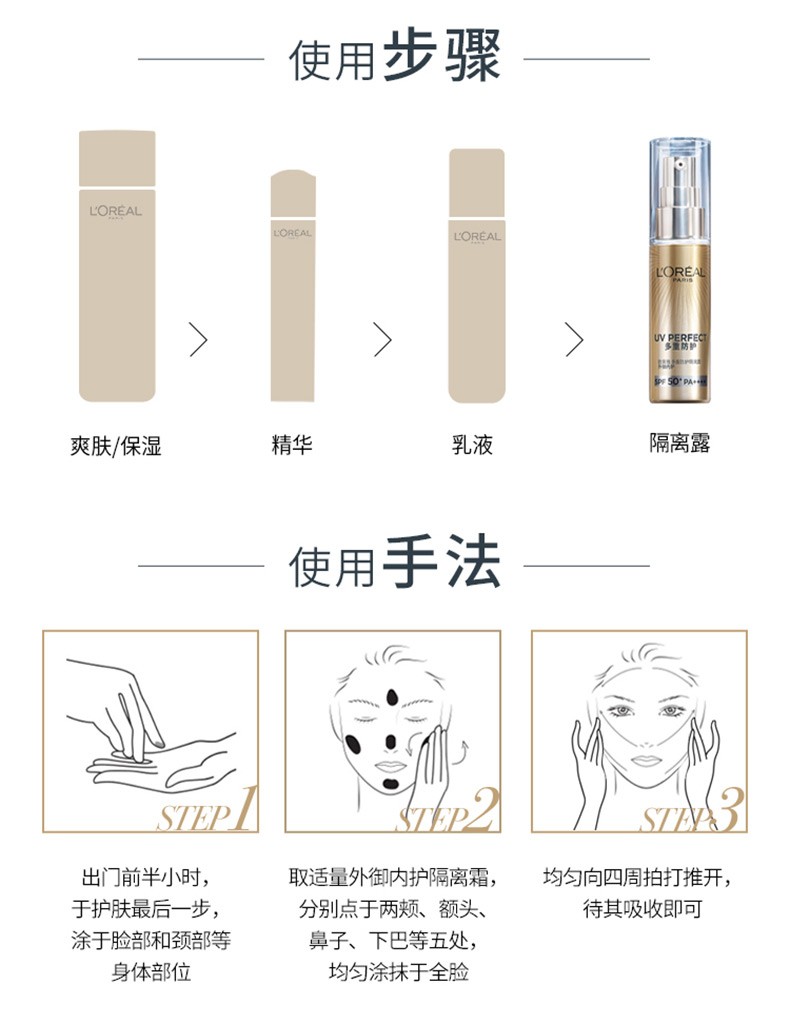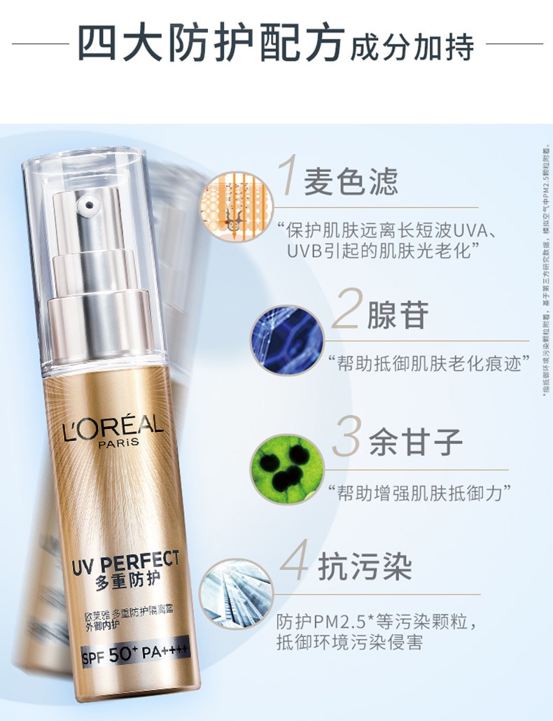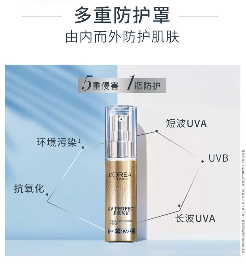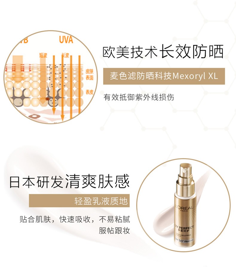 商品名称:欧莱雅(L'OREAL) 防晒霜女士小金管多重防护隔离清爽不黏腻防晒喷雾学生军训户外 小金管防晒15ml*3(共45ml)