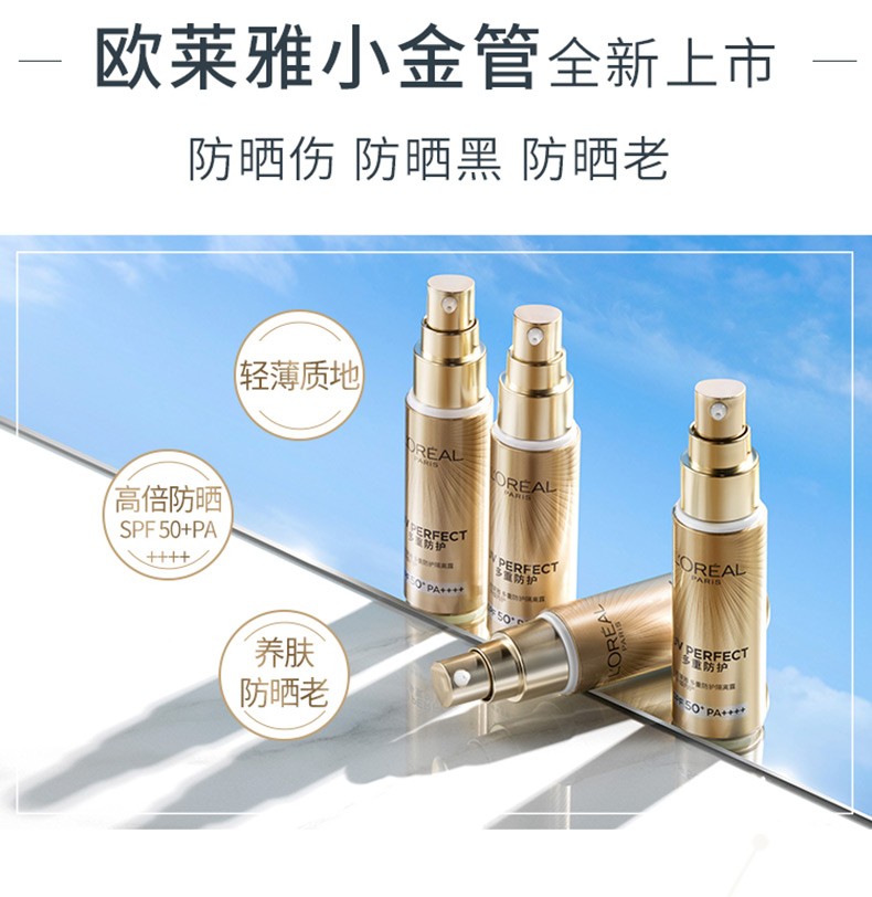 L'OREAL Sunscreen Women's Small Gold Tube Multiple Protection, Isolation, Refreshing, Non greasy Sunscreen spray 15ml * 3 (45ml in total)