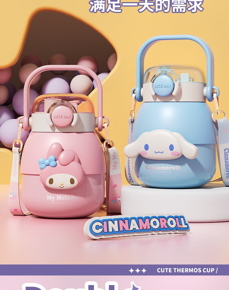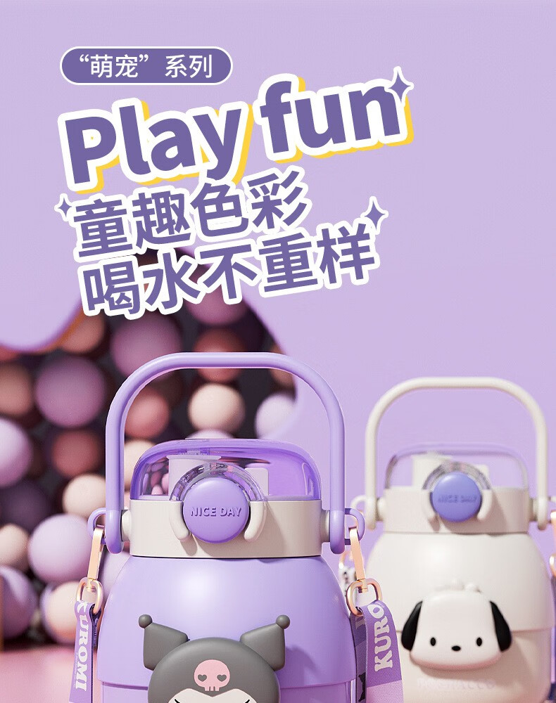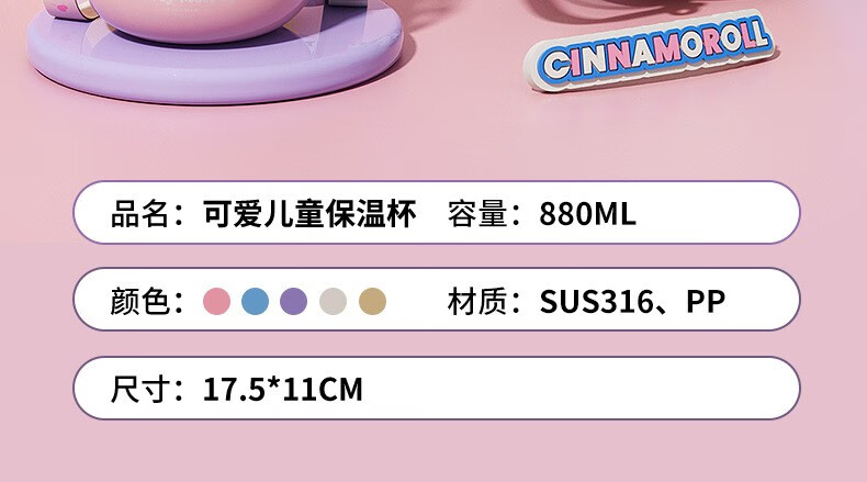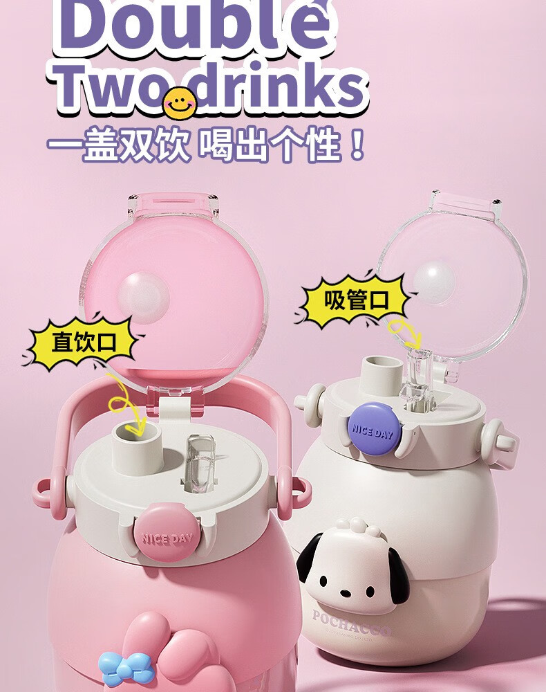商品名称:牧汀双饮大肚保温杯儿童女士学生高颜值吸管水杯大容量316不锈钢杯壶 帕恰狗-880ML