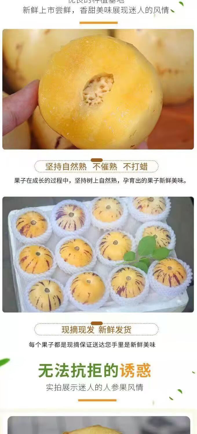 商品名称:【抢购中】人参果黄果黄心新鲜大果云南正宗人参果黄心批发价 新鲜人参果[5斤+大果装]出口