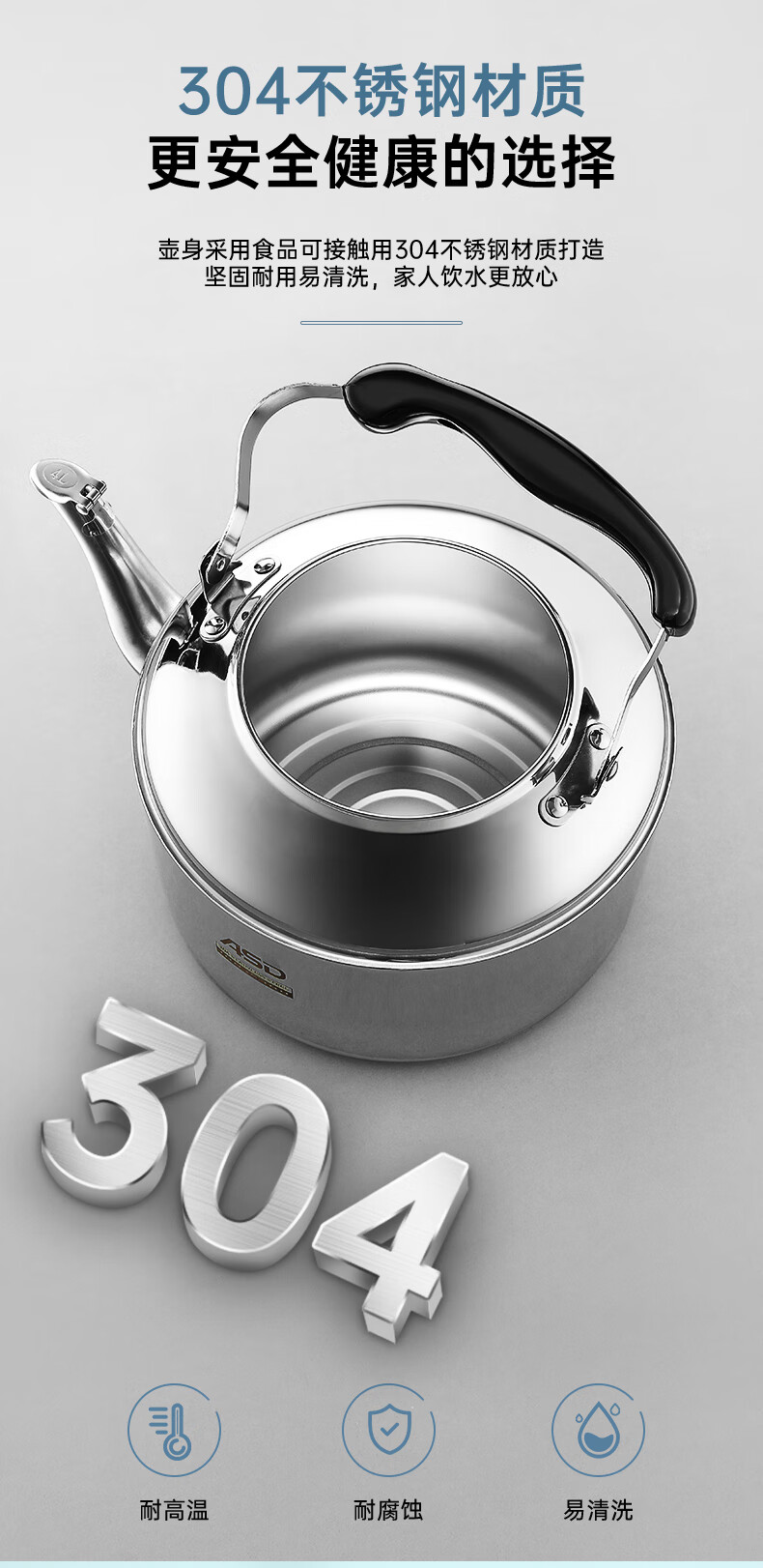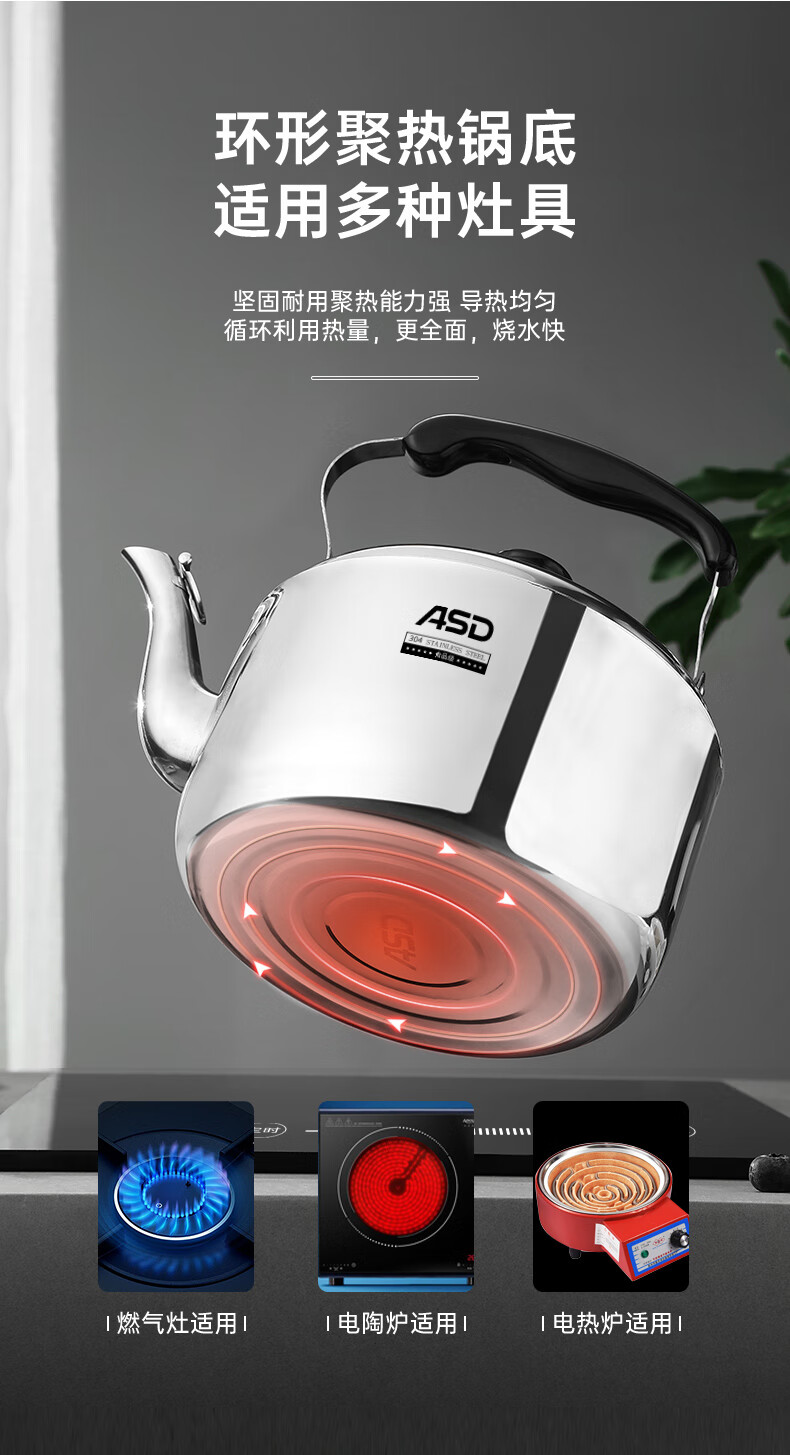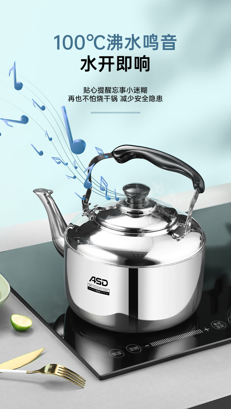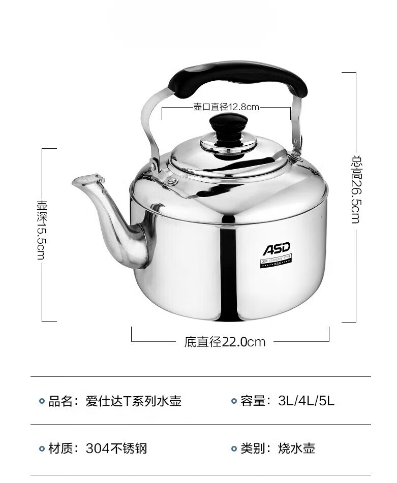 ASD 304 stainless steel kettle, whistle blowing, gas induction cooker, universal hot water kettle, thickened kettle, 3L
