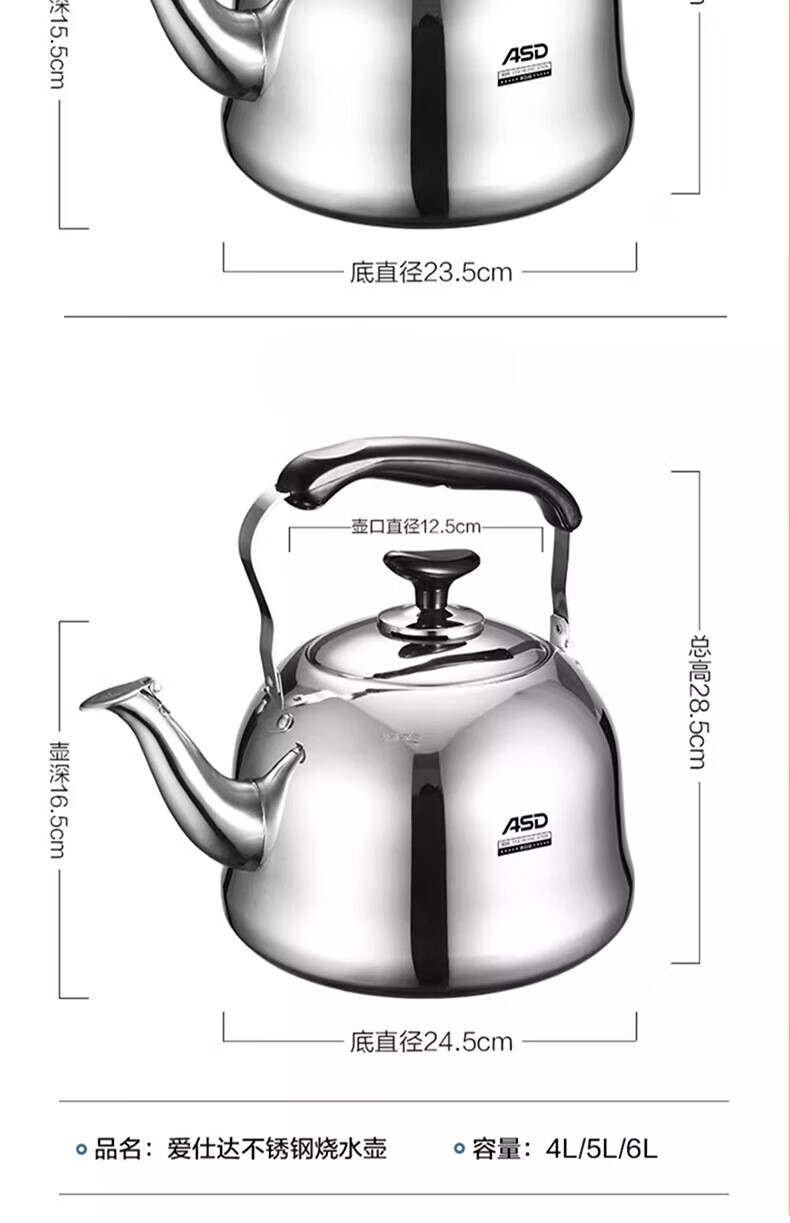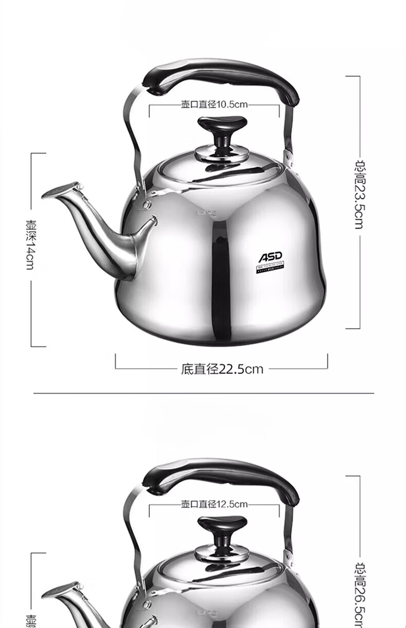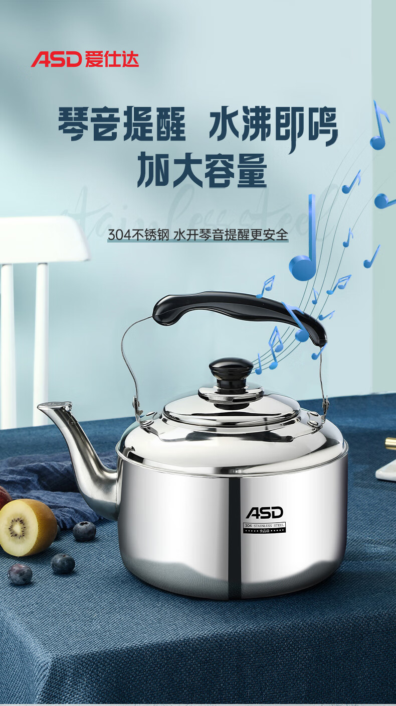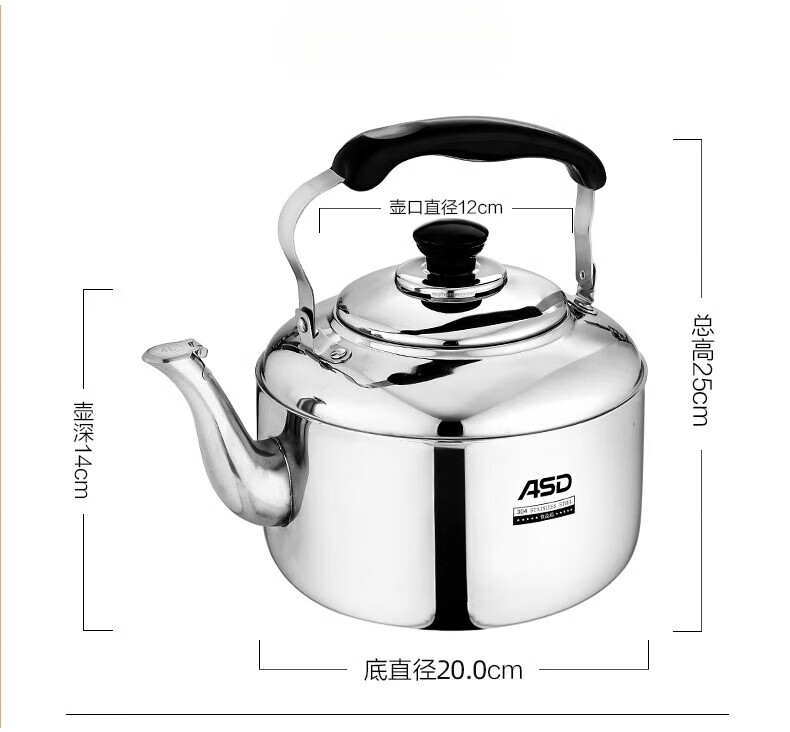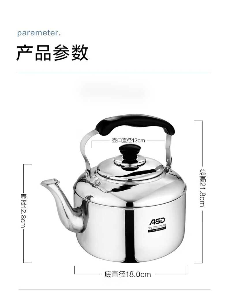 ASD 304 stainless steel kettle, whistle blowing, gas induction cooker, universal hot water kettle, thickened kettle, 3L