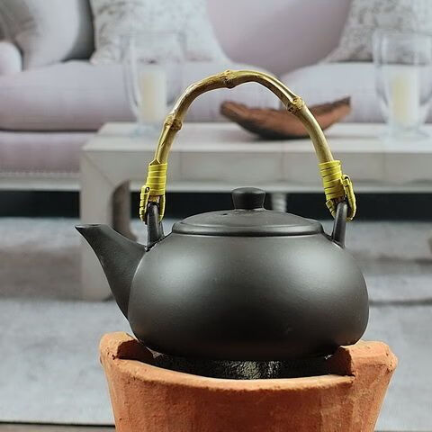 商品名称:暖遥陶壶煮水围炉水壶红泥壶砂挑壶朱泥壶紫砂茶壶明火烧水壶电陶烧水 黑提壶-400毫升
