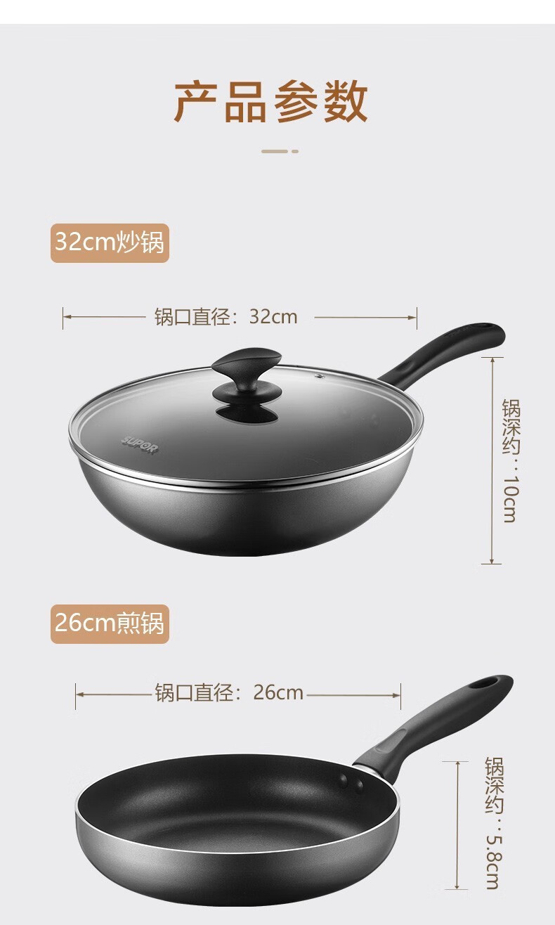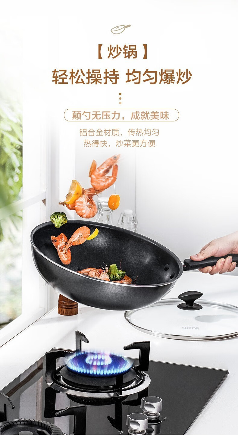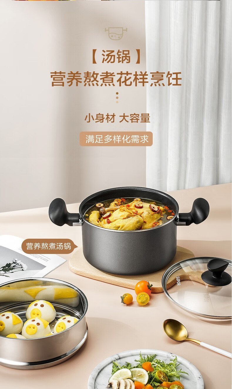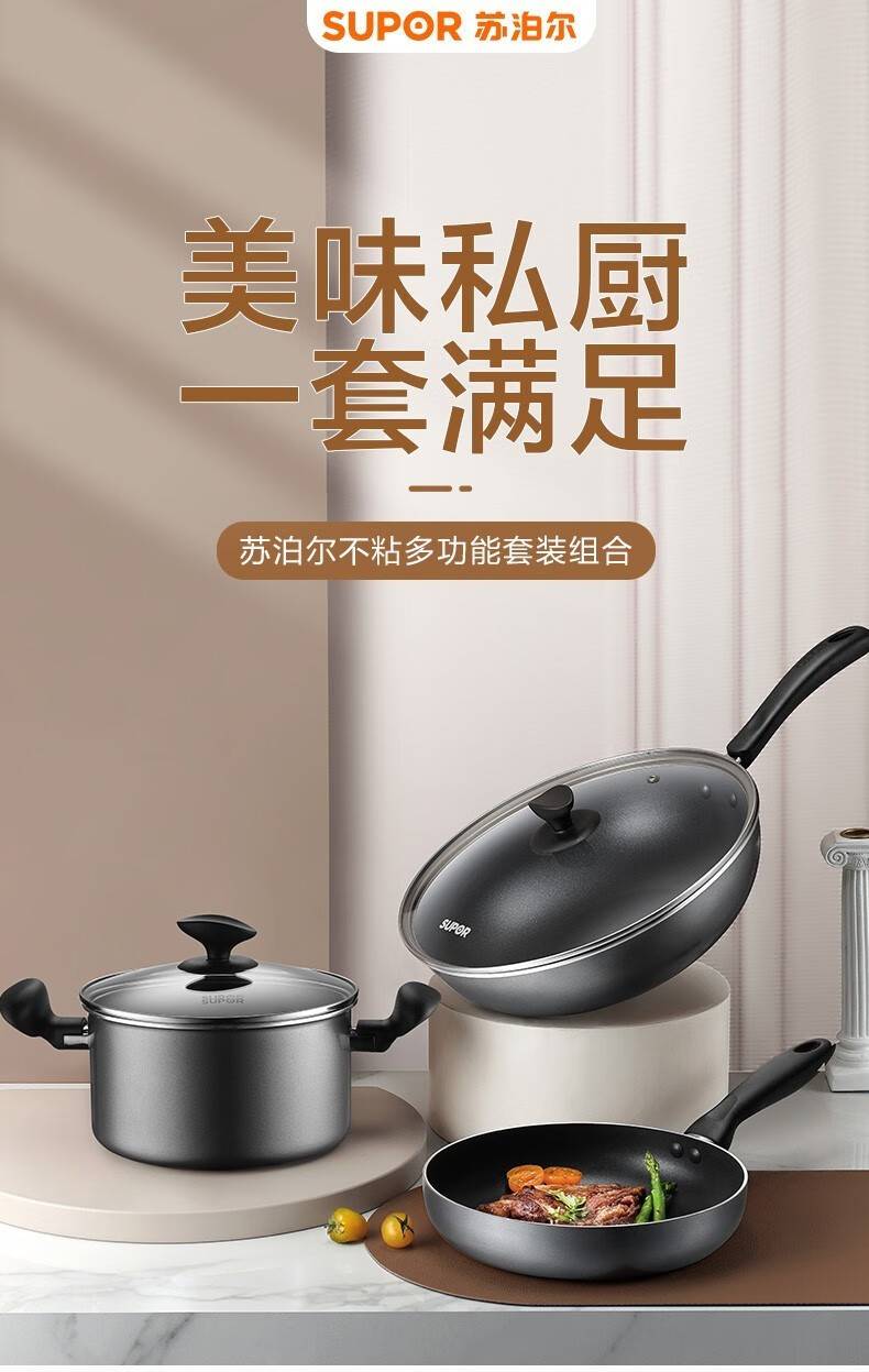 商品名称:苏泊尔(SUPOR)不粘炒锅无烟厨房全锅具套装组合平底锅汤锅煎锅燃气电磁炉通用 四件套【炒+煎+汤+蒸】