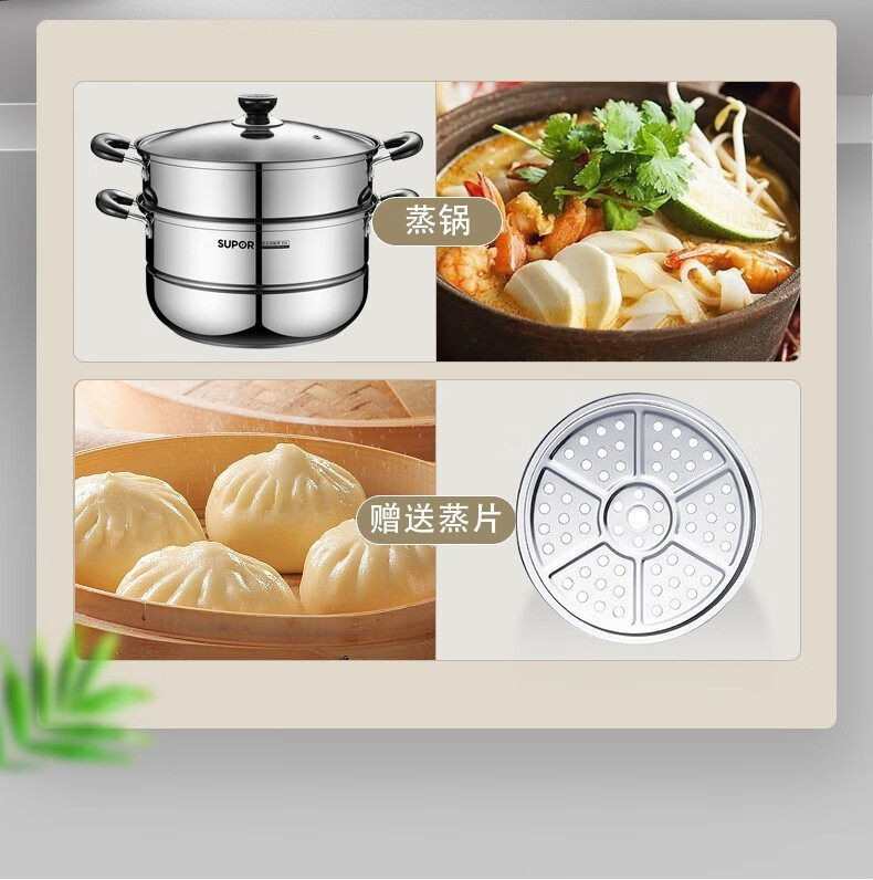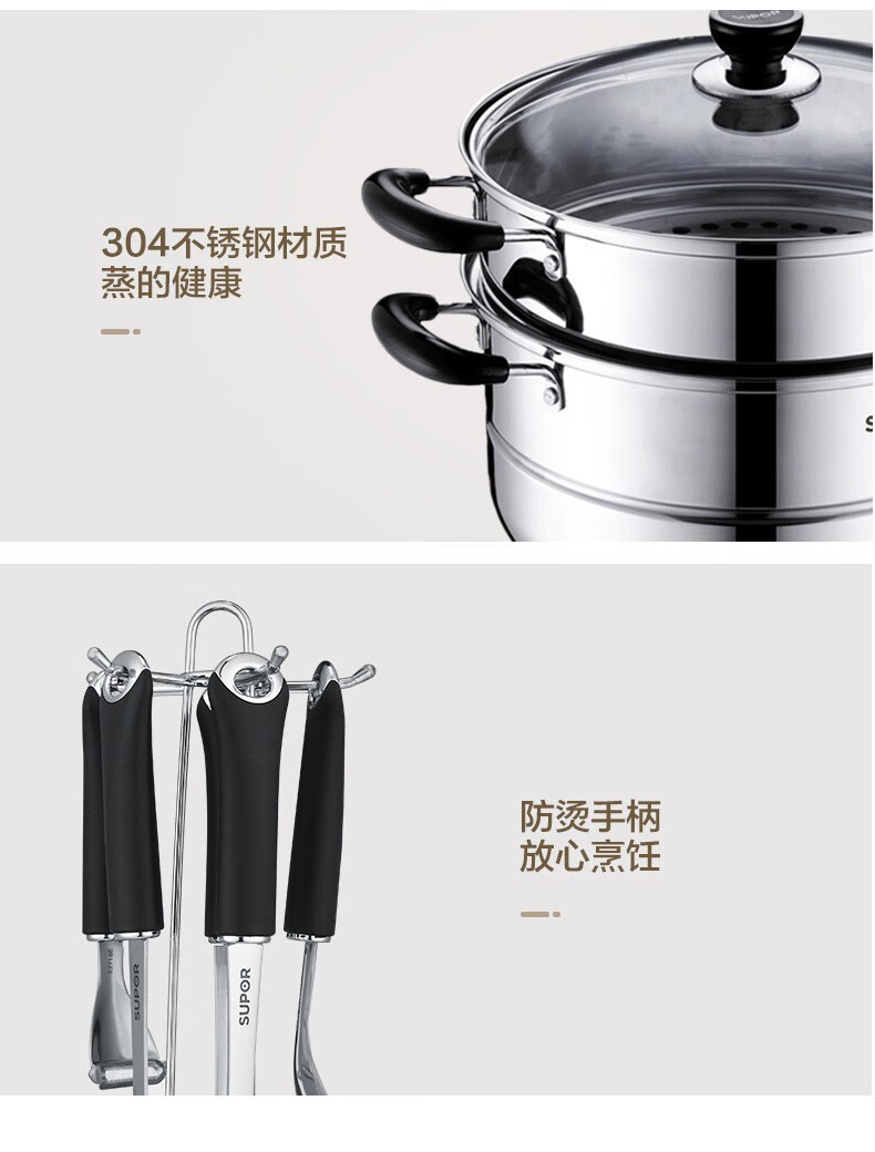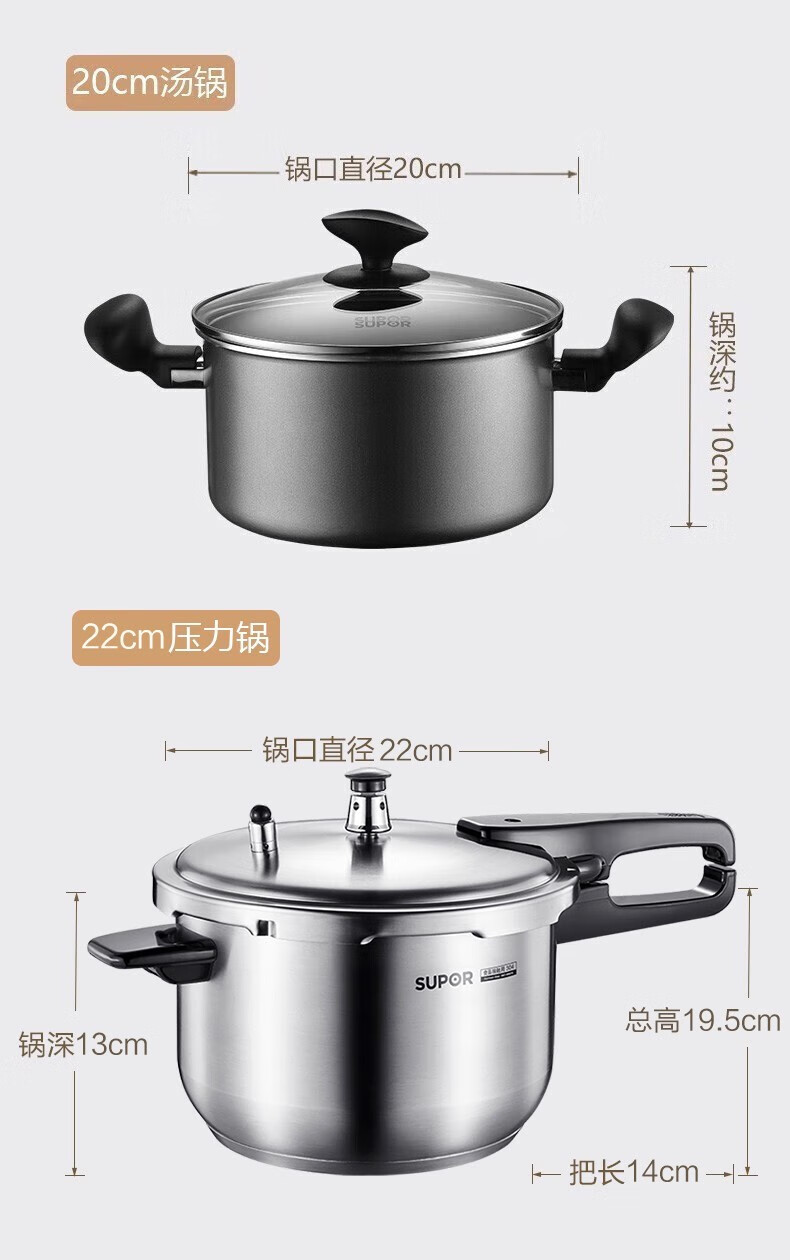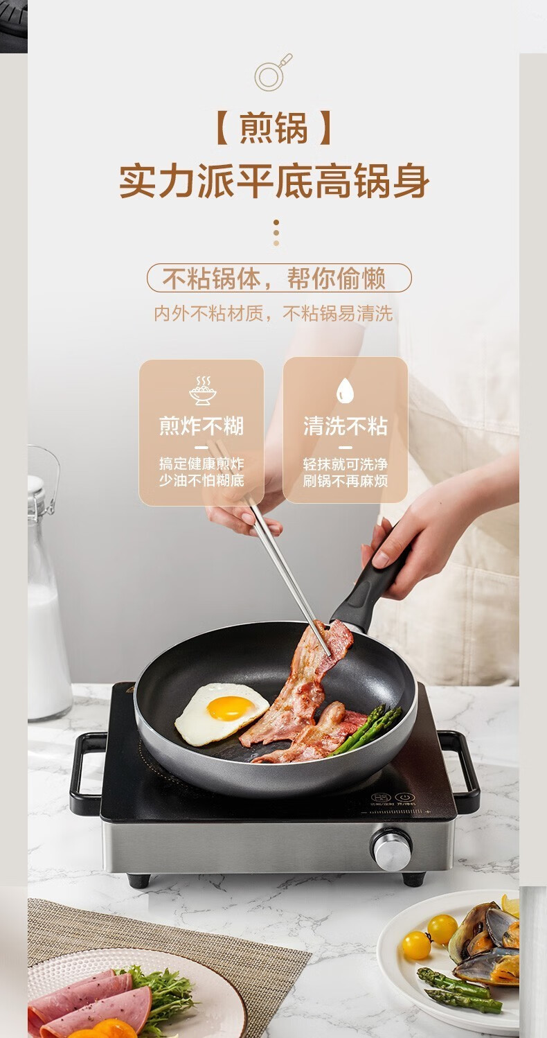 商品名称:苏泊尔(SUPOR)不粘炒锅无烟厨房全锅具套装组合平底锅汤锅煎锅燃气电磁炉通用 四件套【炒+煎+汤+蒸】