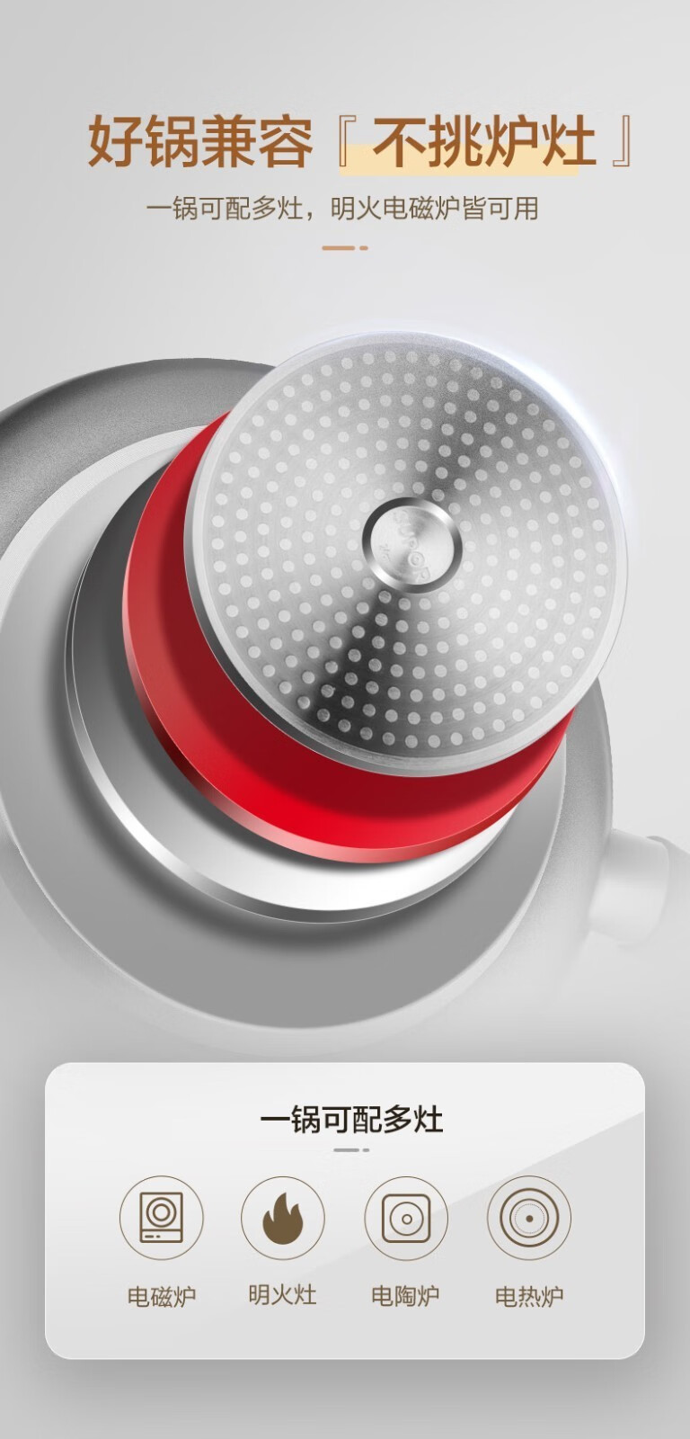 适用炉灶:燃气灶,电磁炉,电陶炉