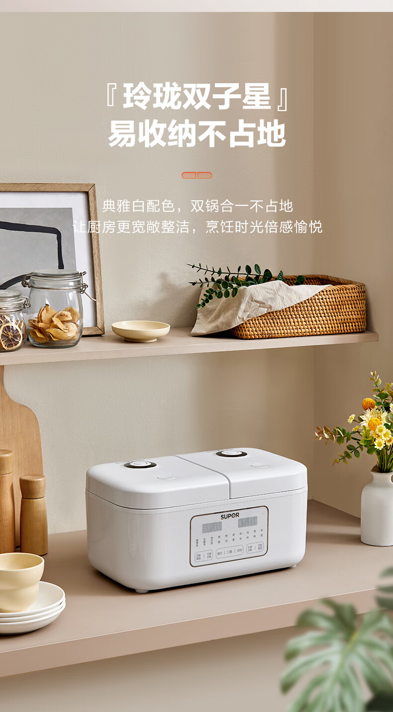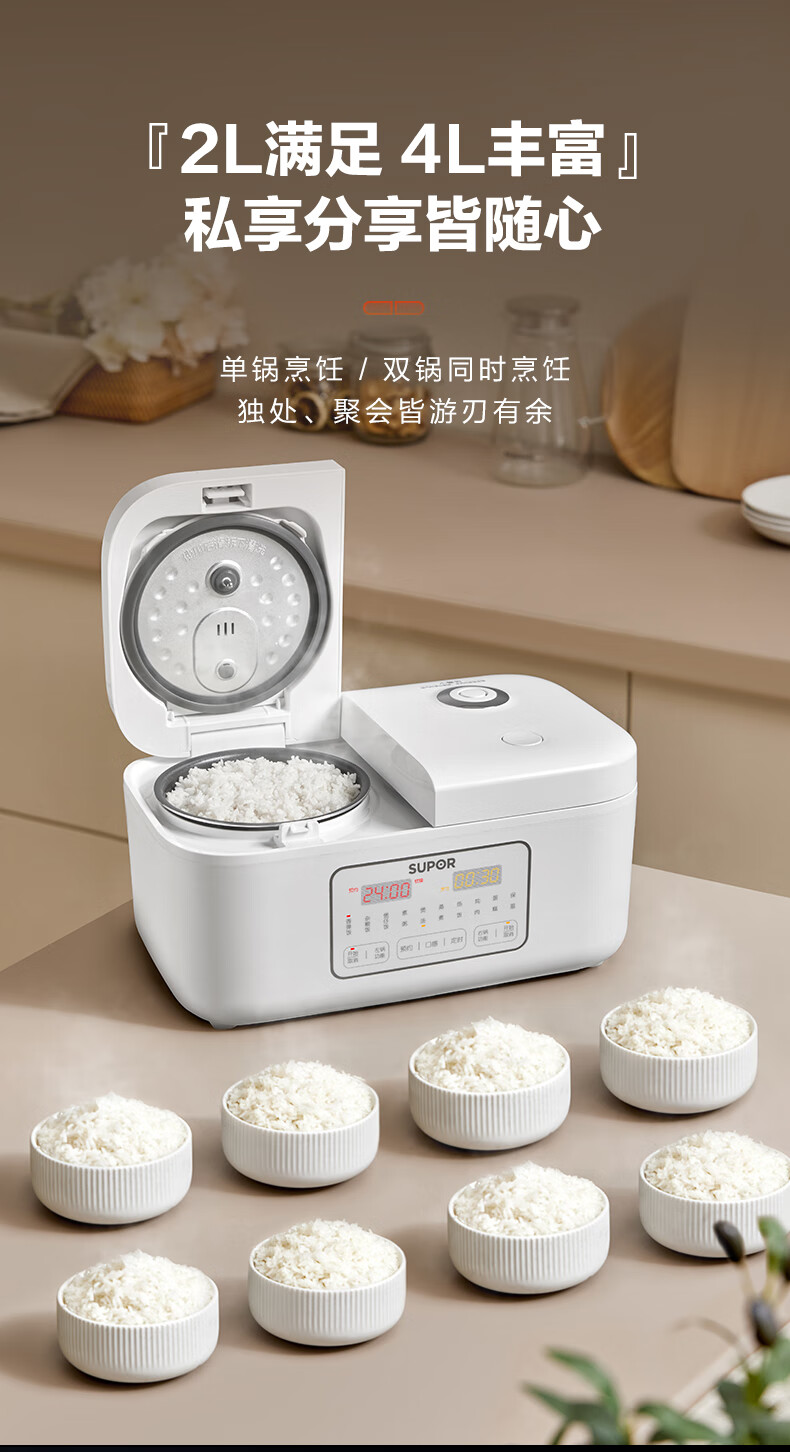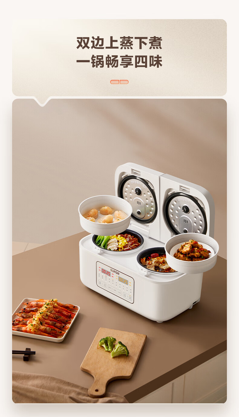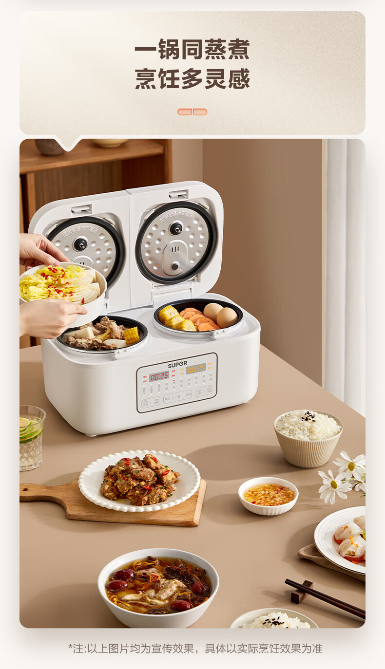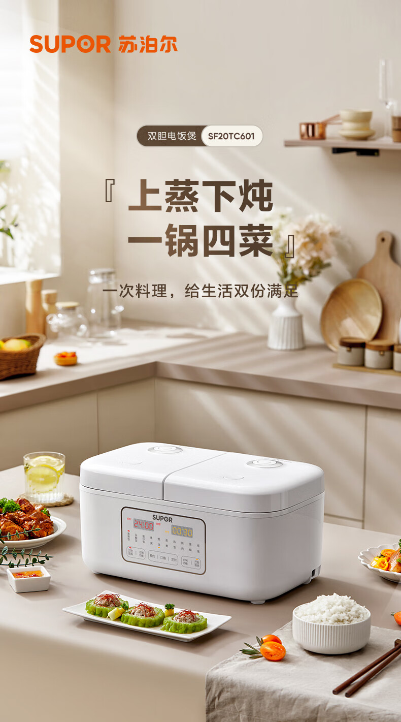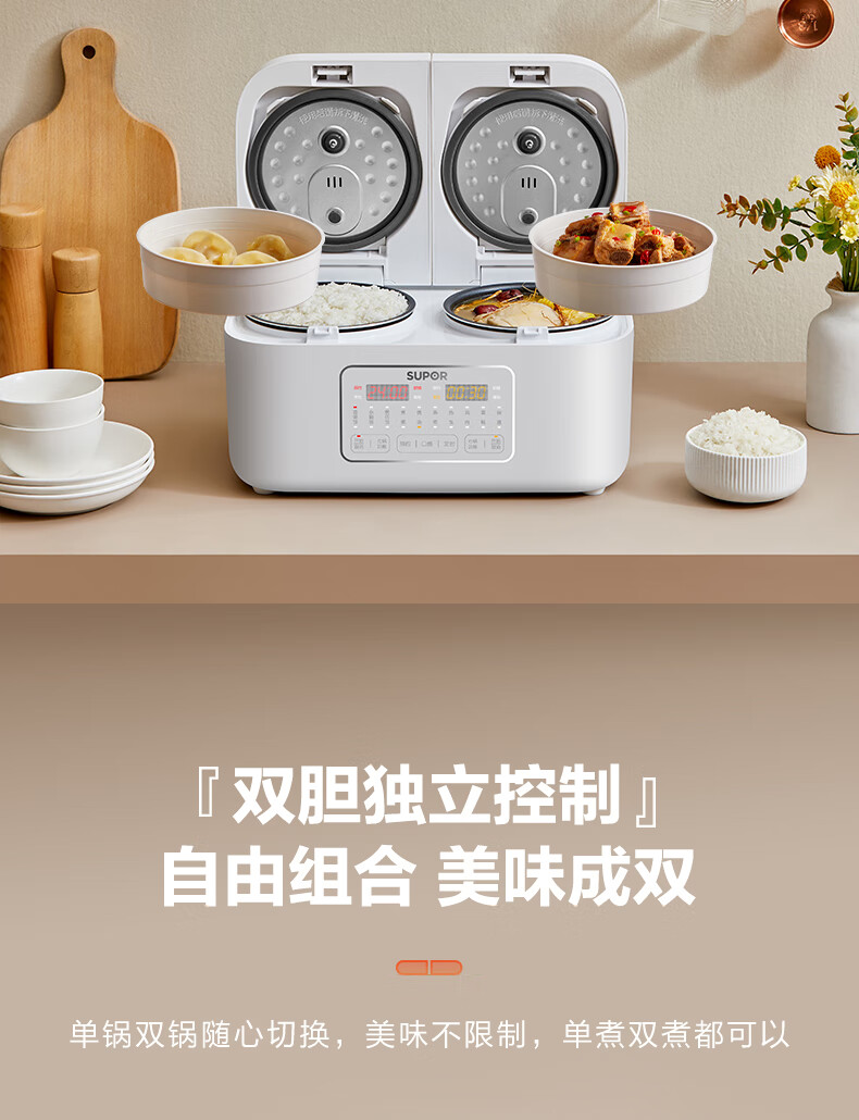 SUPOR Double Gallbladder Electric Rice Cooker Integrated Dual Combination Household 4L Multi functional Intelligent Soup Cooking and Steaming Fully Automatic Dual Control SF20TC601