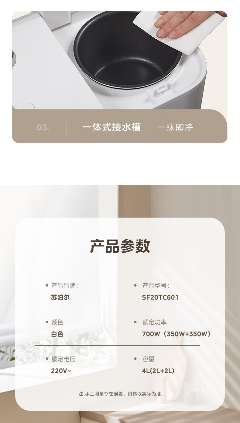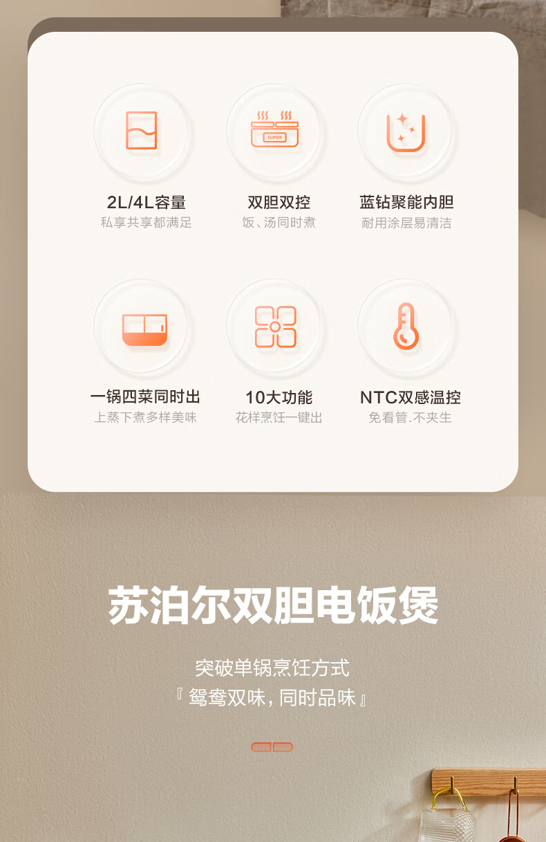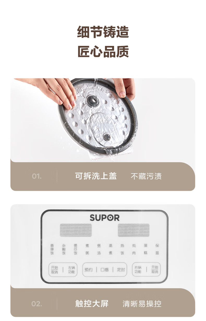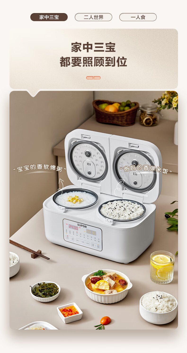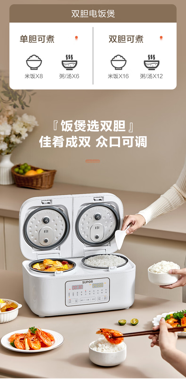 SUPOR Double Gallbladder Electric Rice Cooker Integrated Dual Combination Household 4L Multi functional Intelligent Soup Cooking and Steaming Fully Automatic Dual Control SF20TC601