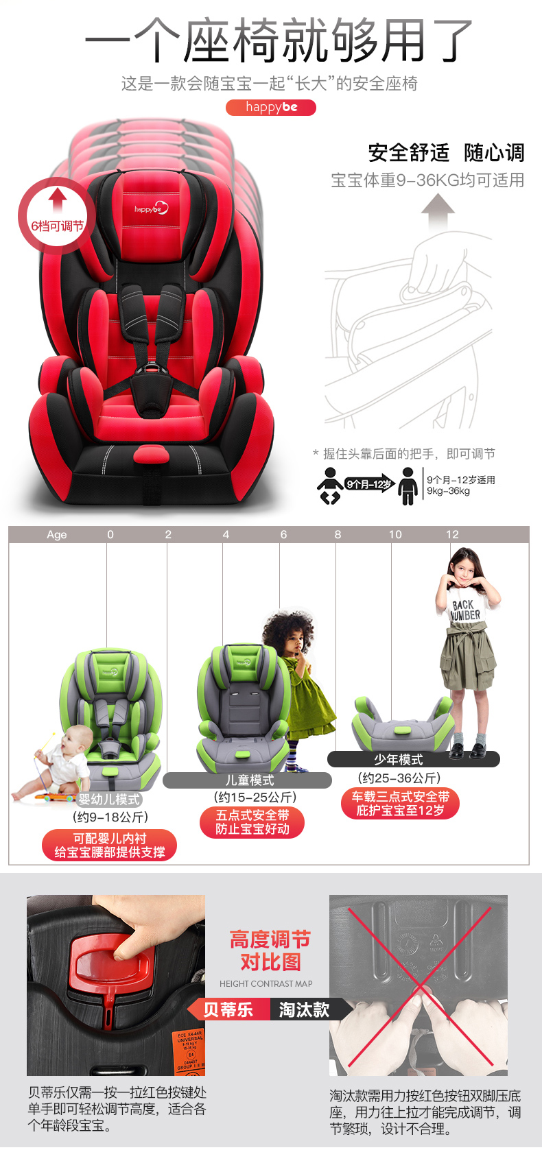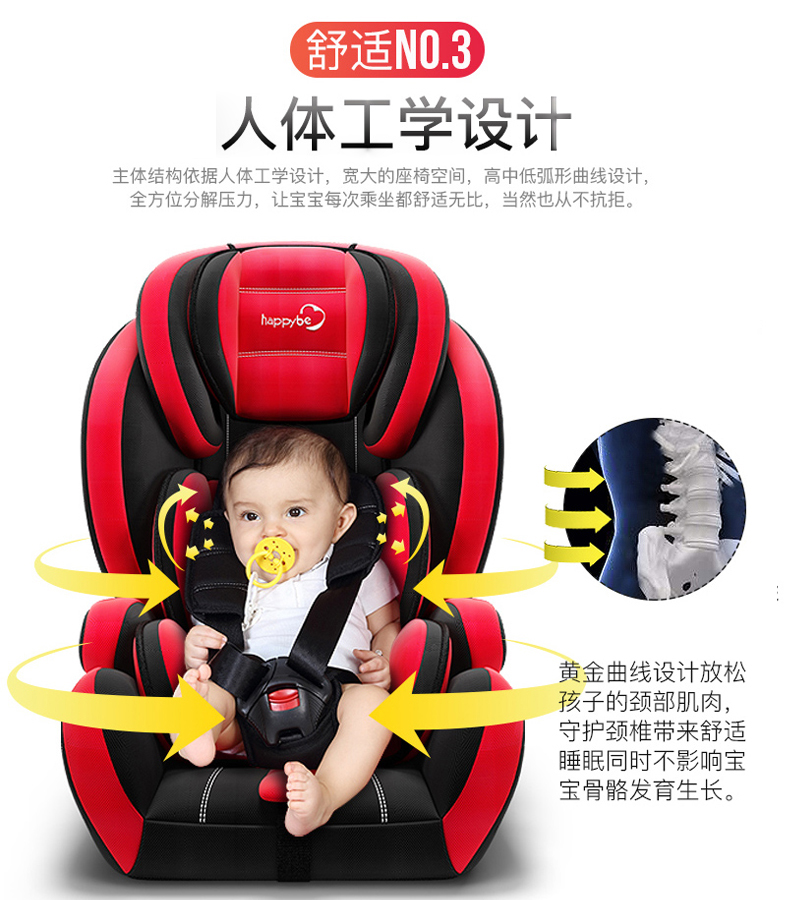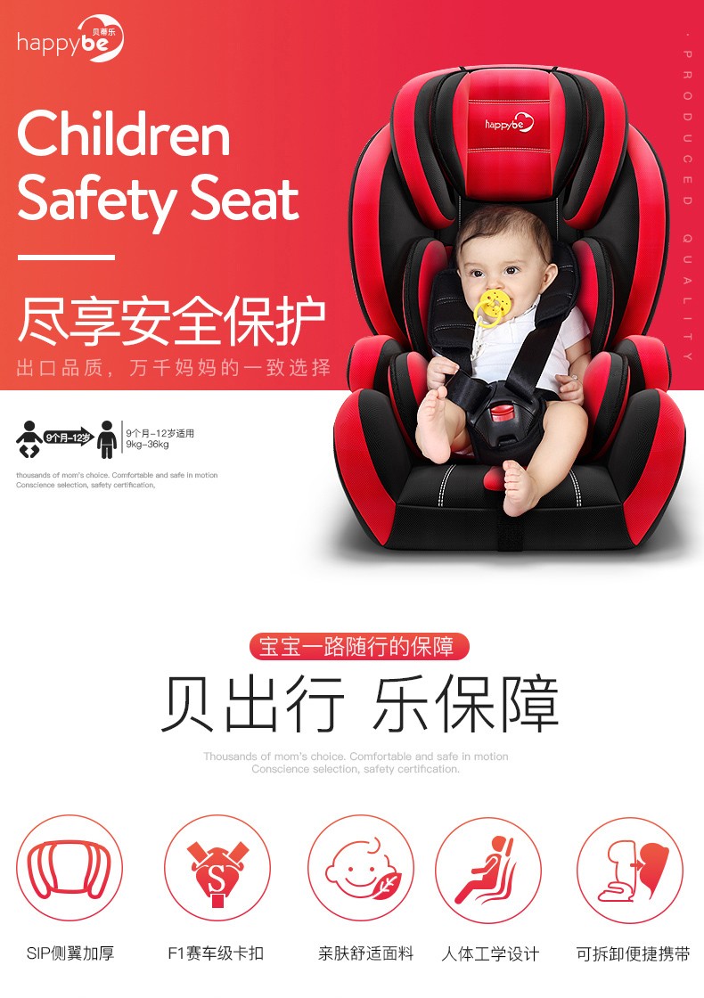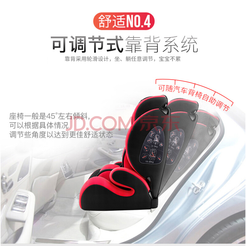 商品名称:贝蒂乐汽车儿童安全座椅0-4-12岁宝宝车载安全椅可坐躺折叠便携增高垫 红黑色