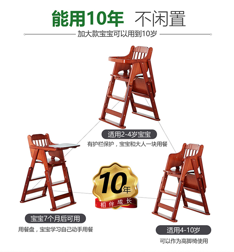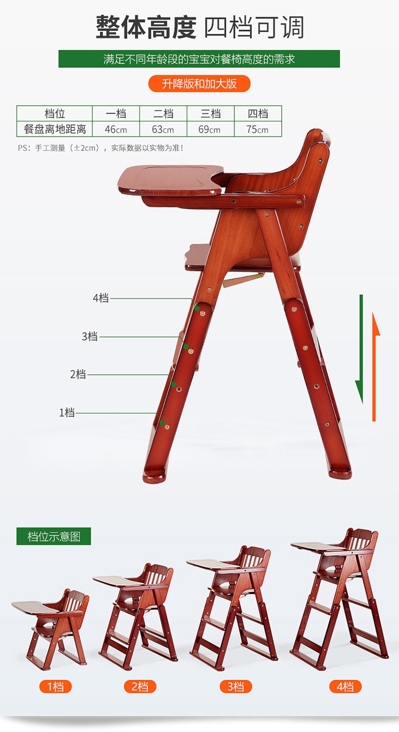 商品名称:henryrabbitHenryrabbit宝宝餐椅实木多功能儿童吃饭座椅调节折叠婴儿餐桌椅 升降深咖色+塑料餐盘【送坐垫】