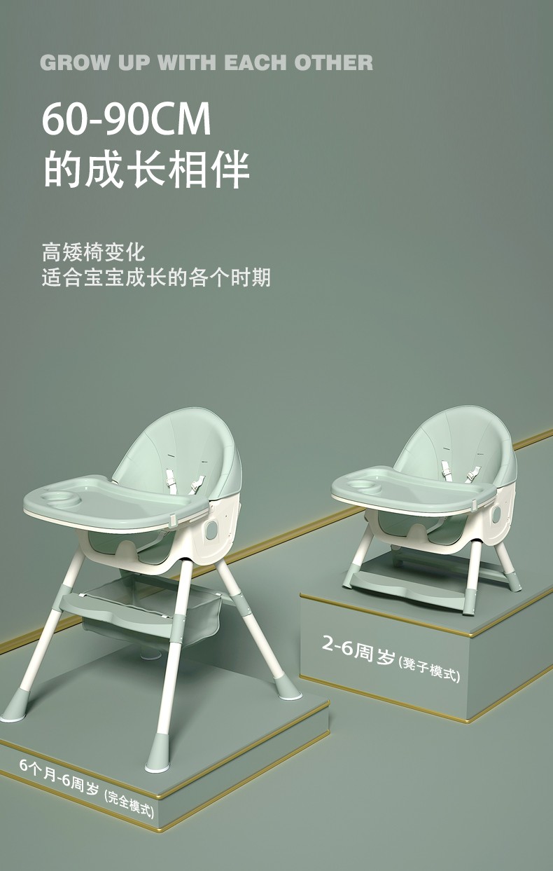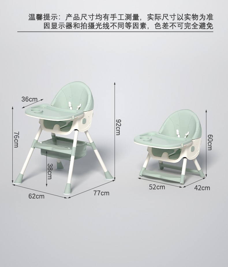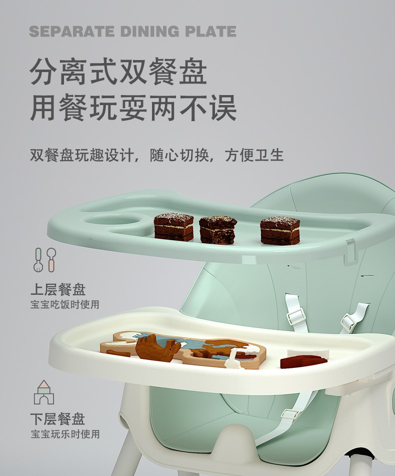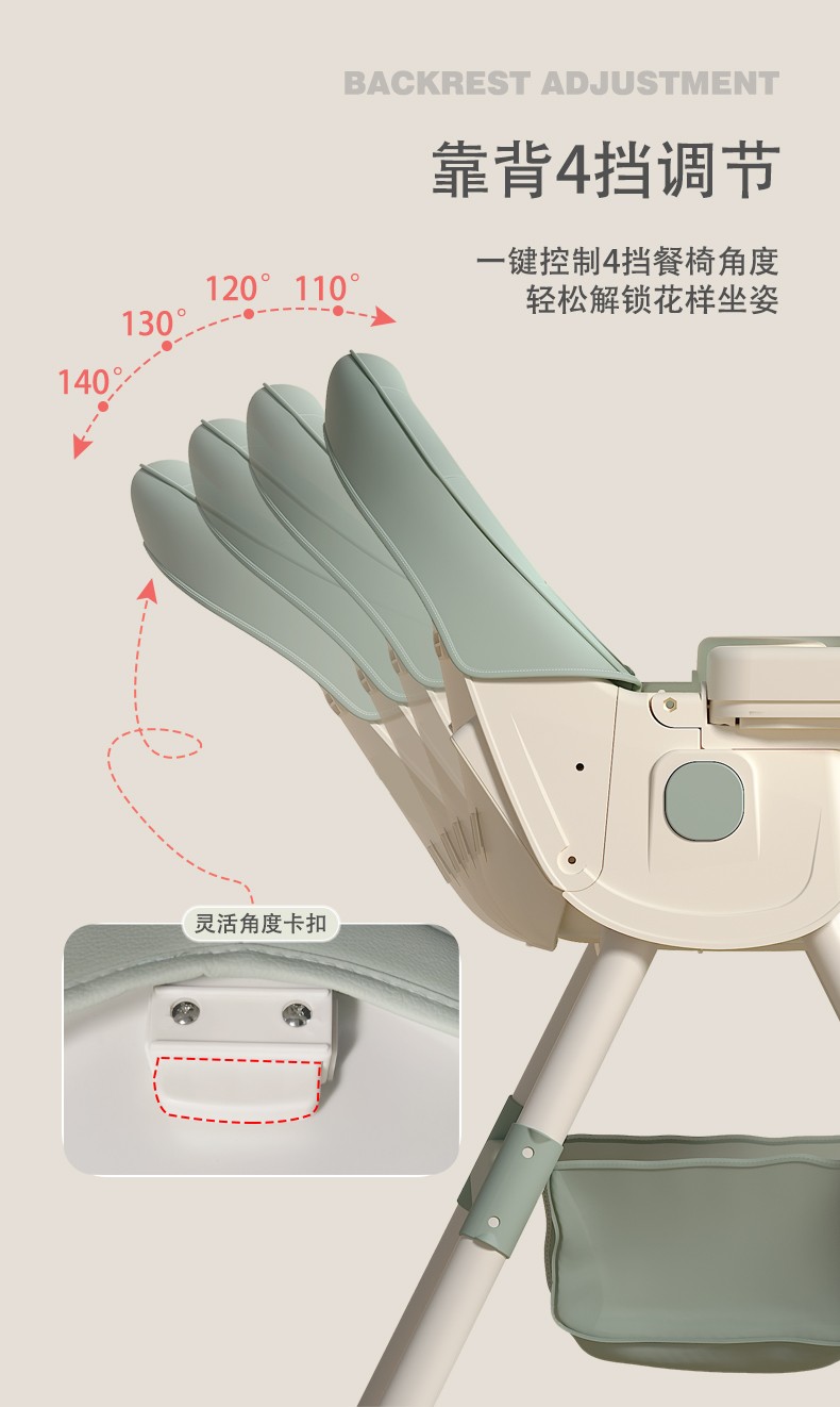 商品名称:嘻优米宝宝餐椅儿童餐桌椅婴幼儿可折叠便携防侧翻多功能可调节吃饭座椅 晨雾绿【一键折叠】【靠背可躺】