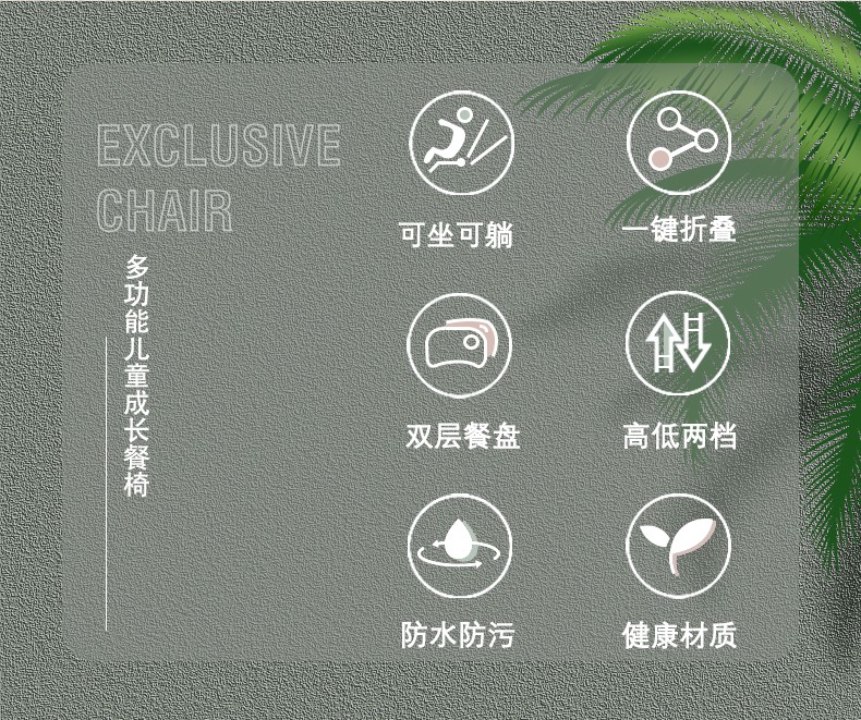 功能:可折叠,便携,可调档,带餐盘,可组装,有安全带