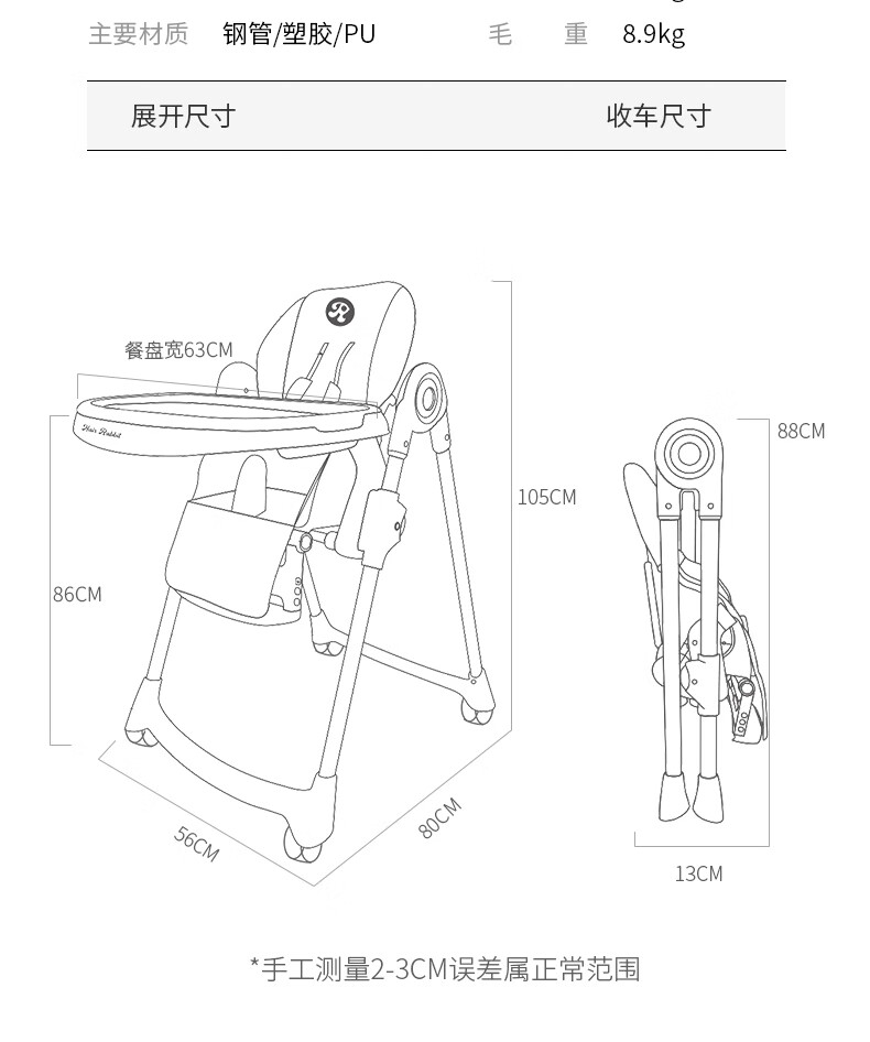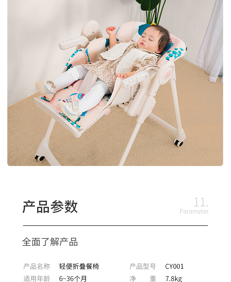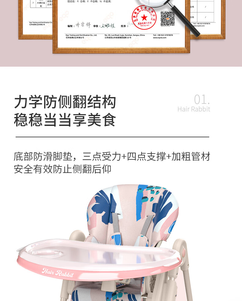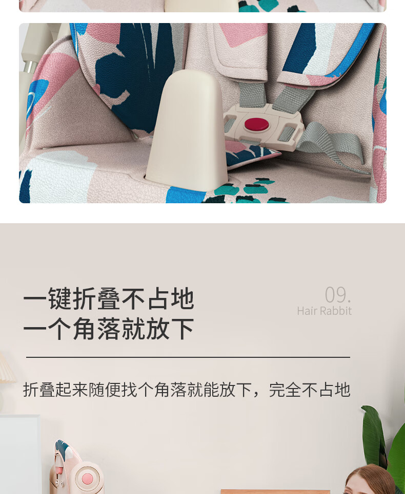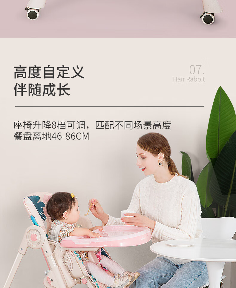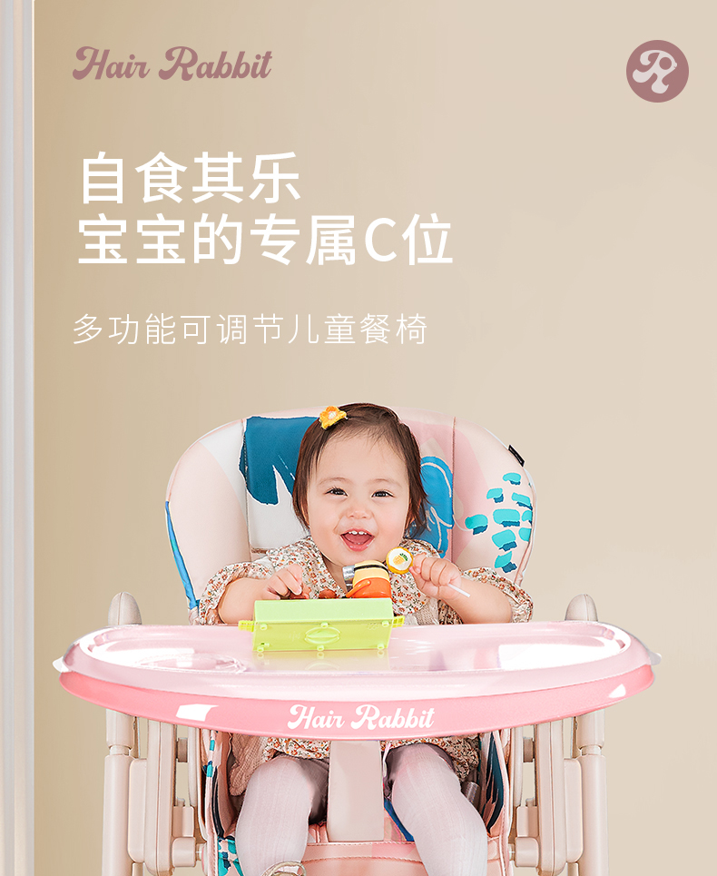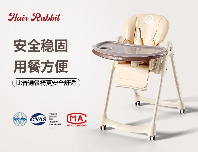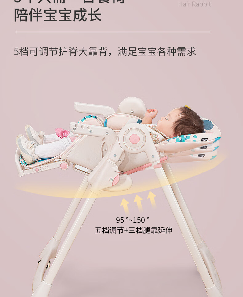 商品名称:HAIR RABBIT宝宝餐椅婴儿家用儿童吃饭餐桌椅子可坐可躺可折叠便携学坐成长椅 伯里黄(安全稳固+加宽座椅)