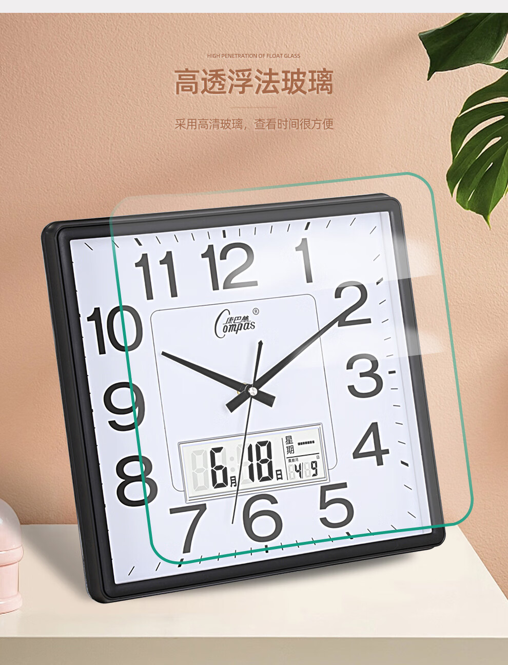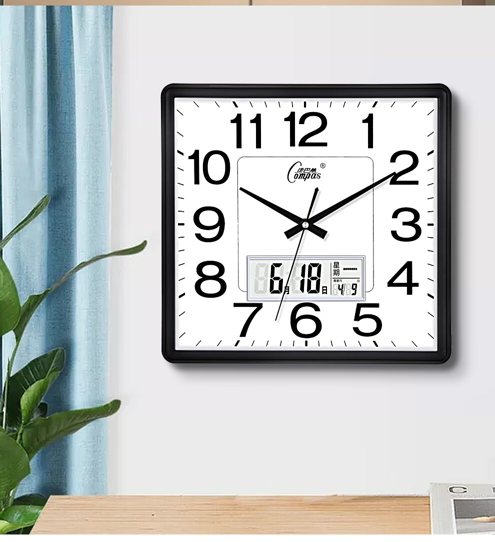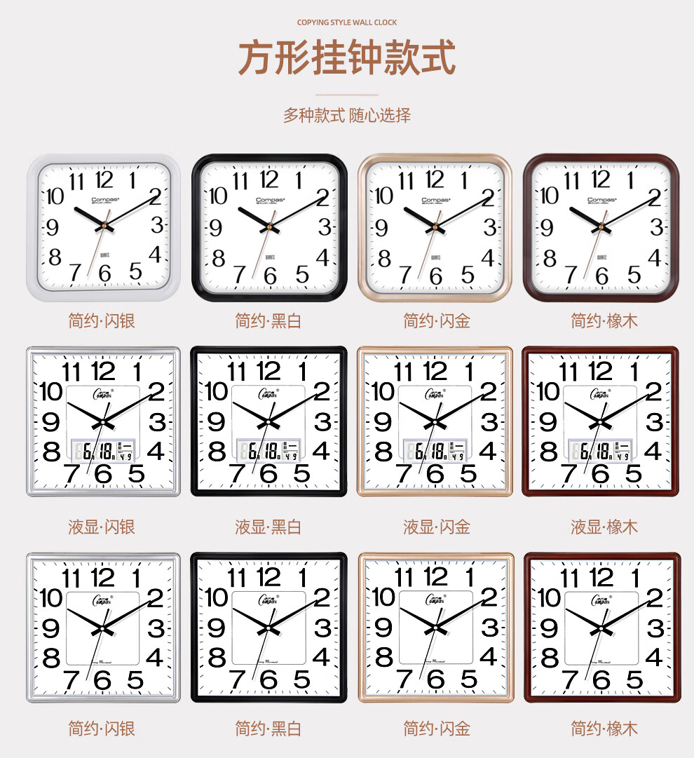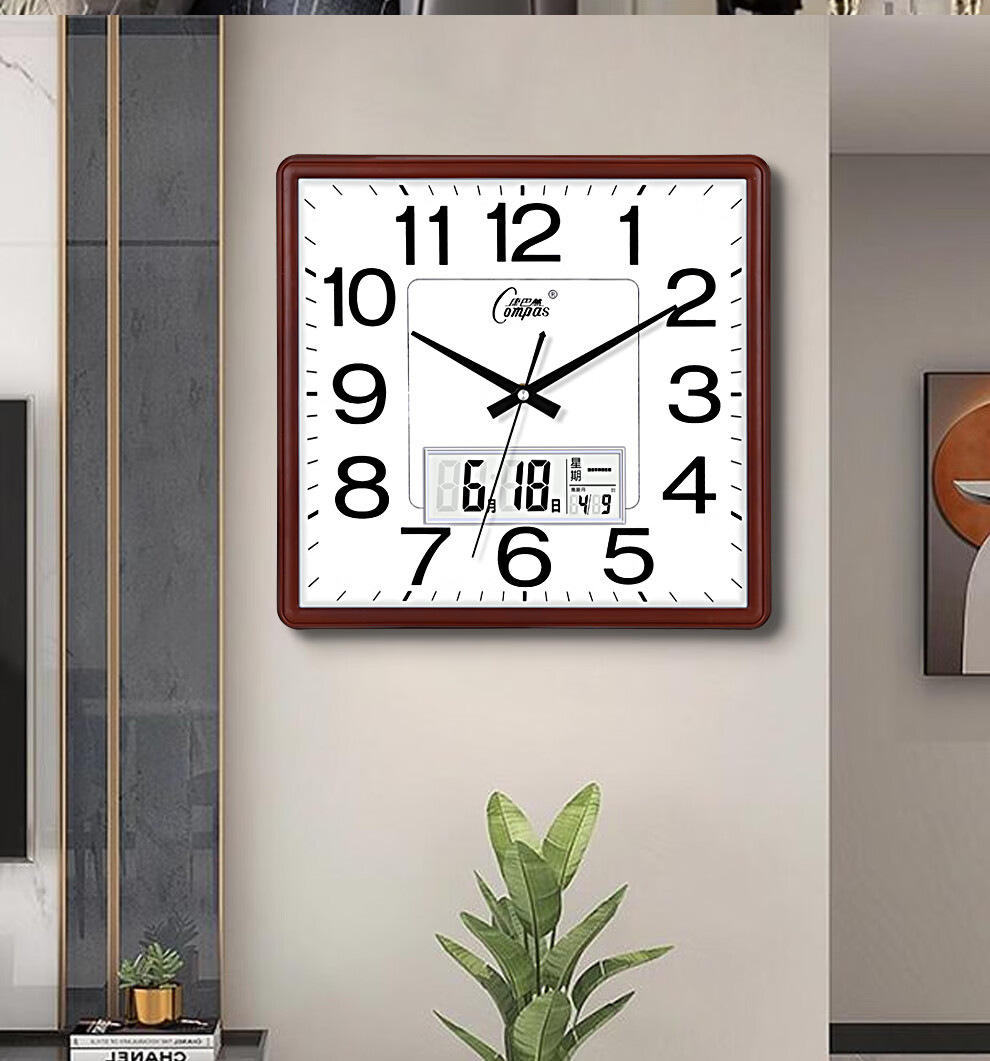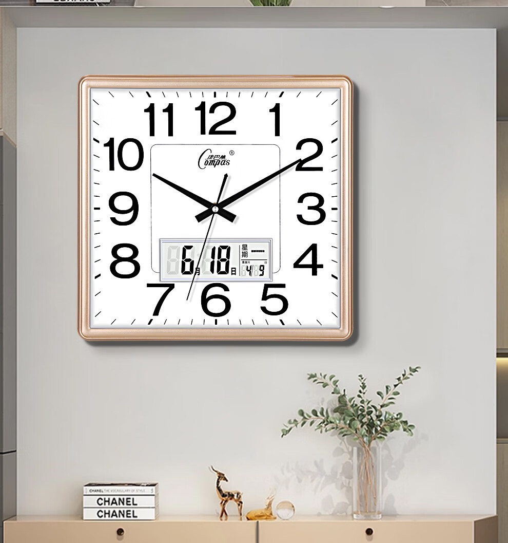 Compas Wall Clock Living Room Home Atmosphere Square Quartz Clock Office Calendar Clock Wall Mounted Bedroom Wall Mounted Clock 2548 Gold (25 * 25cm)