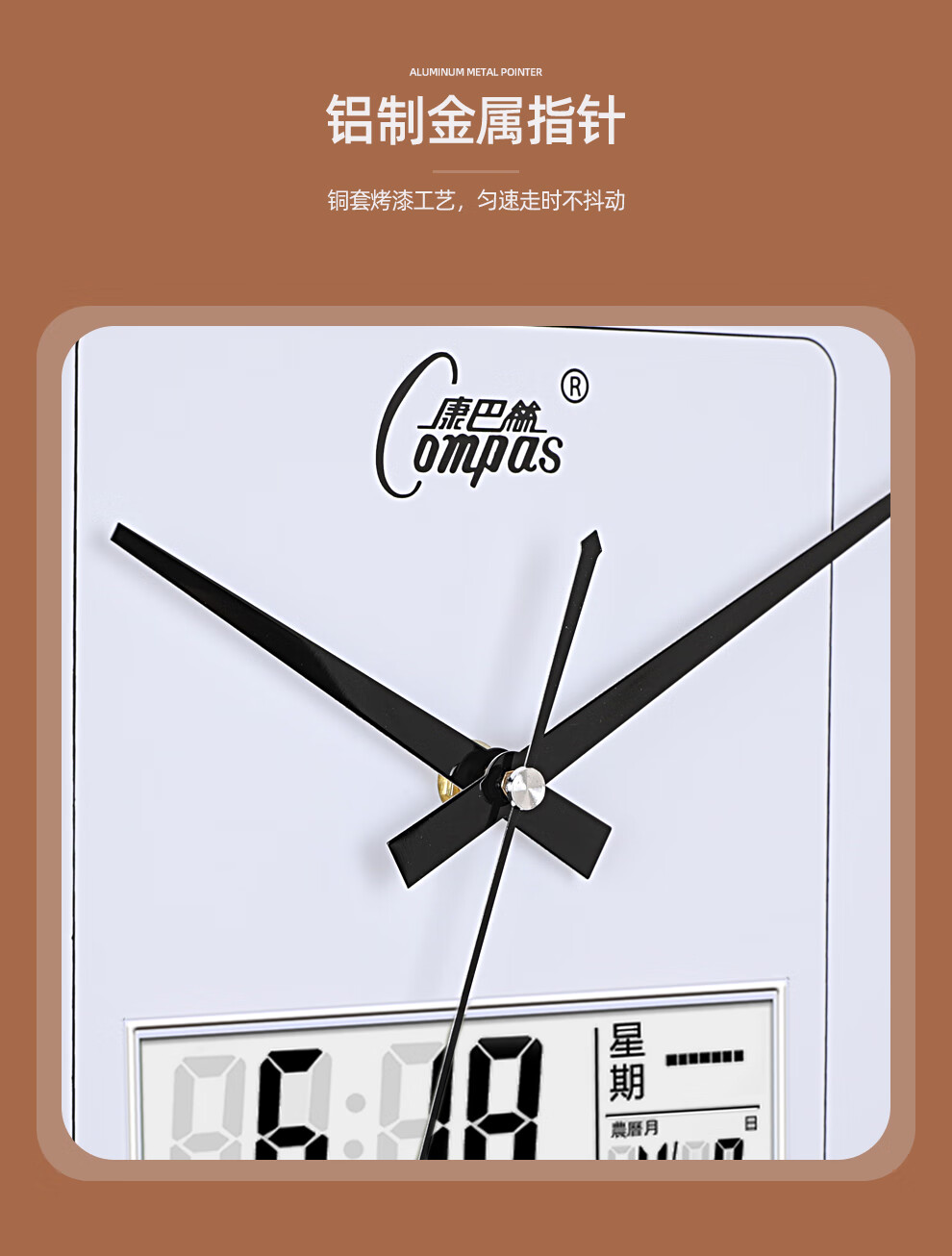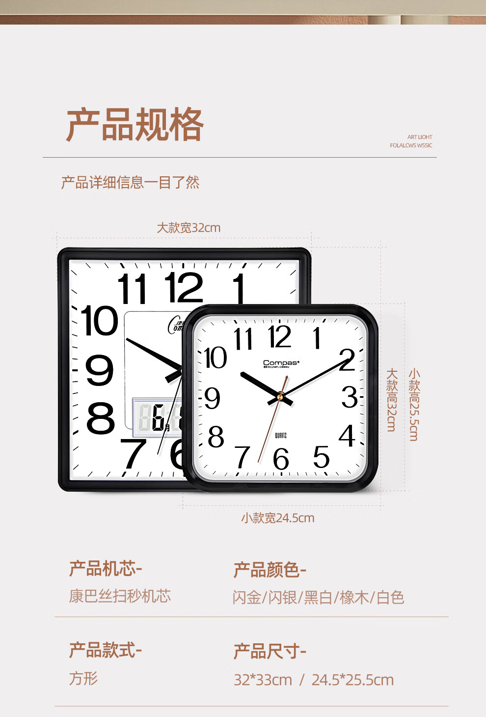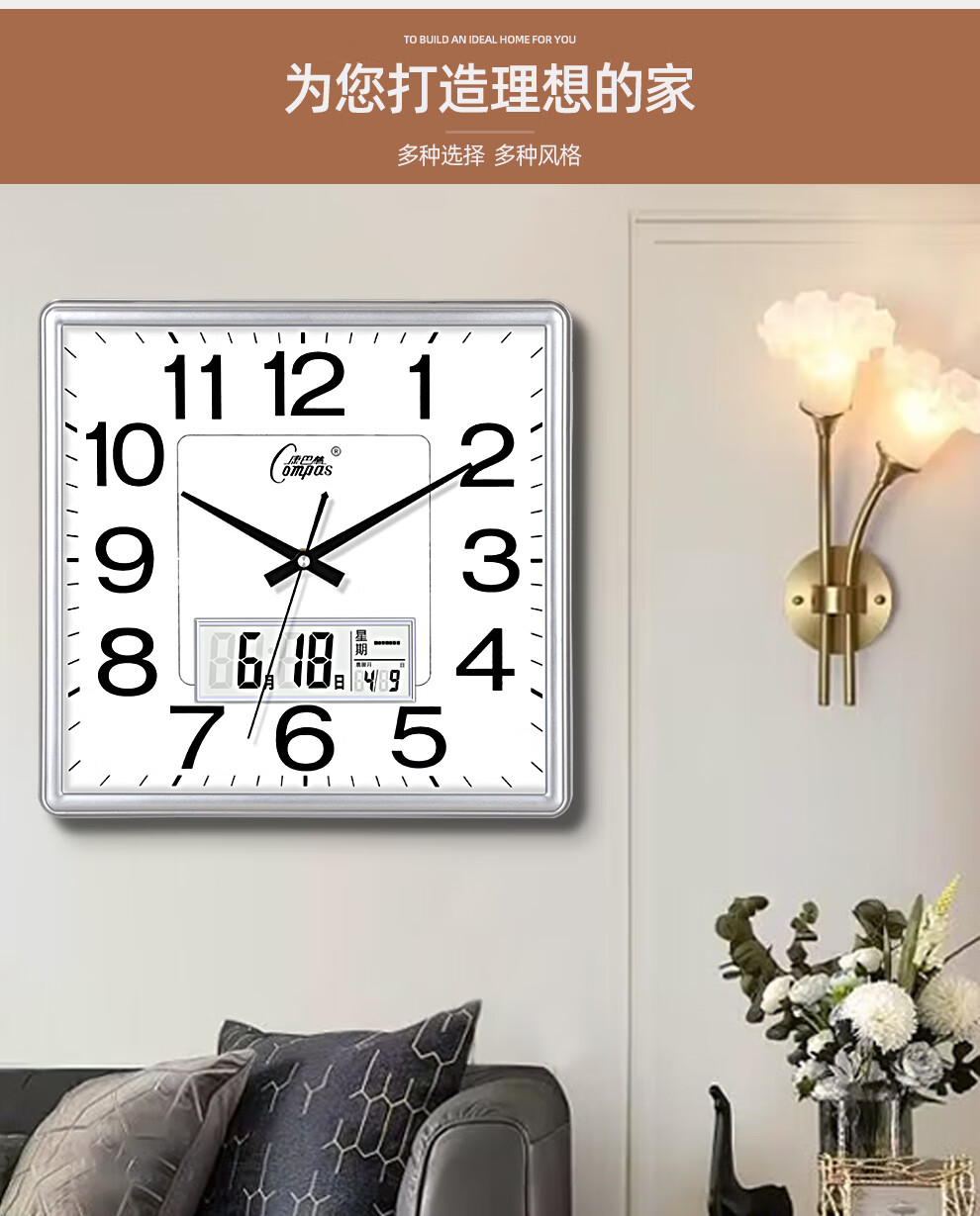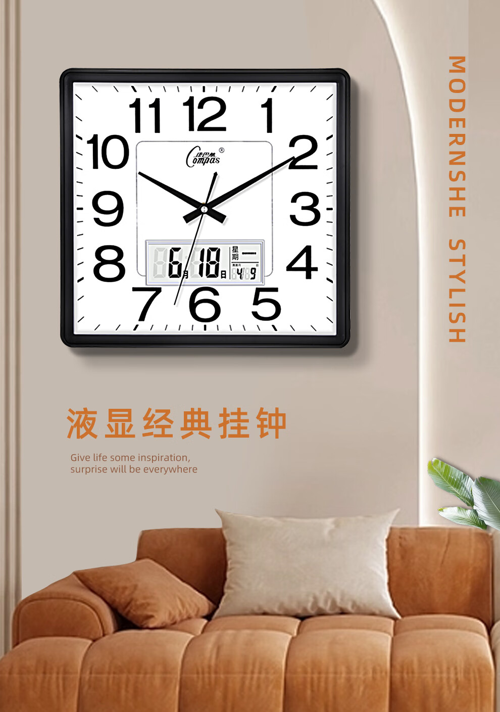 Compas Wall Clock Living Room Home Atmosphere Square Quartz Clock Office Calendar Clock Wall Mounted Bedroom Wall Mounted Clock 2548 Gold (25 * 25cm)