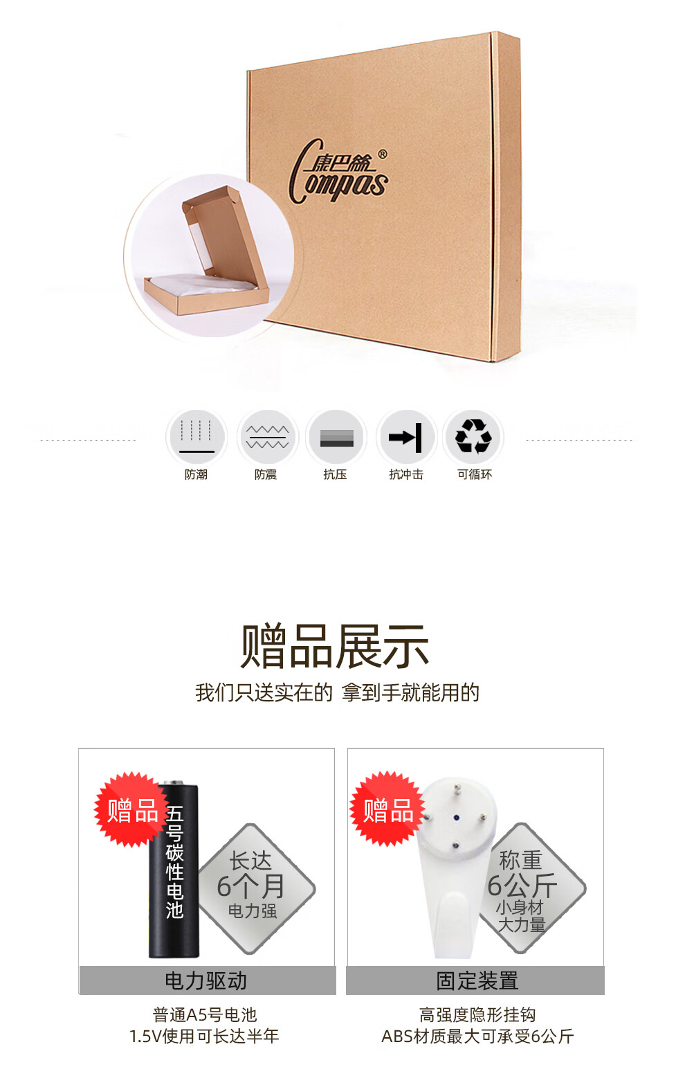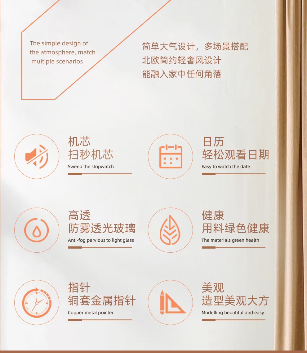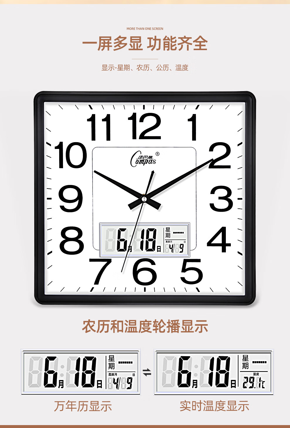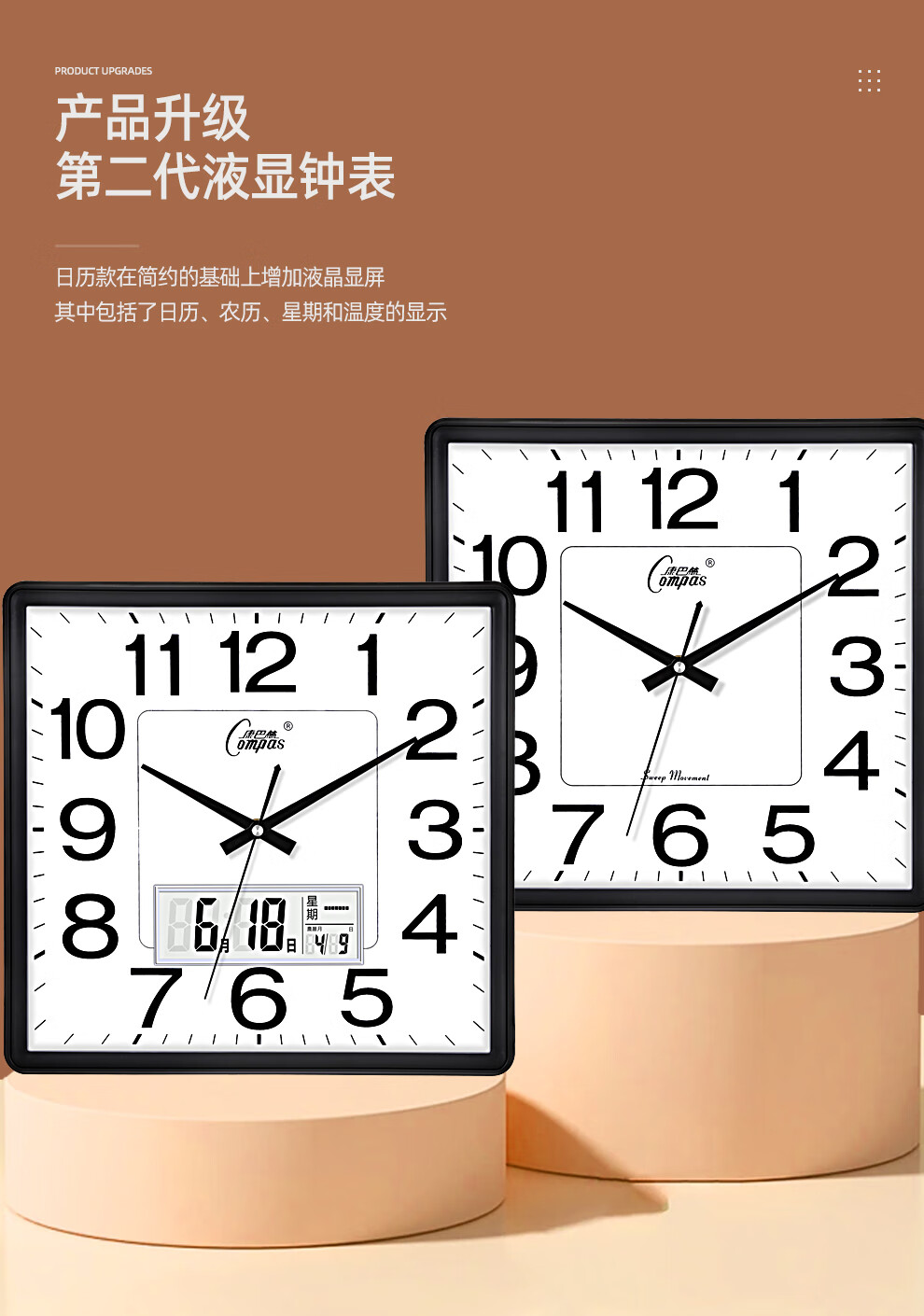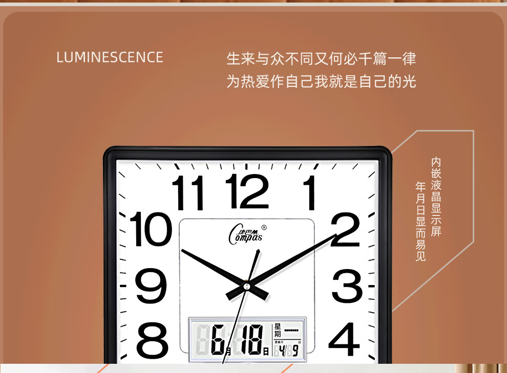 Compas Wall Clock Living Room Home Atmosphere Square Quartz Clock Office Calendar Clock Wall Mounted Bedroom Wall Mounted Clock 2548 Gold (25 * 25cm)