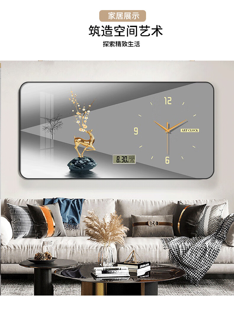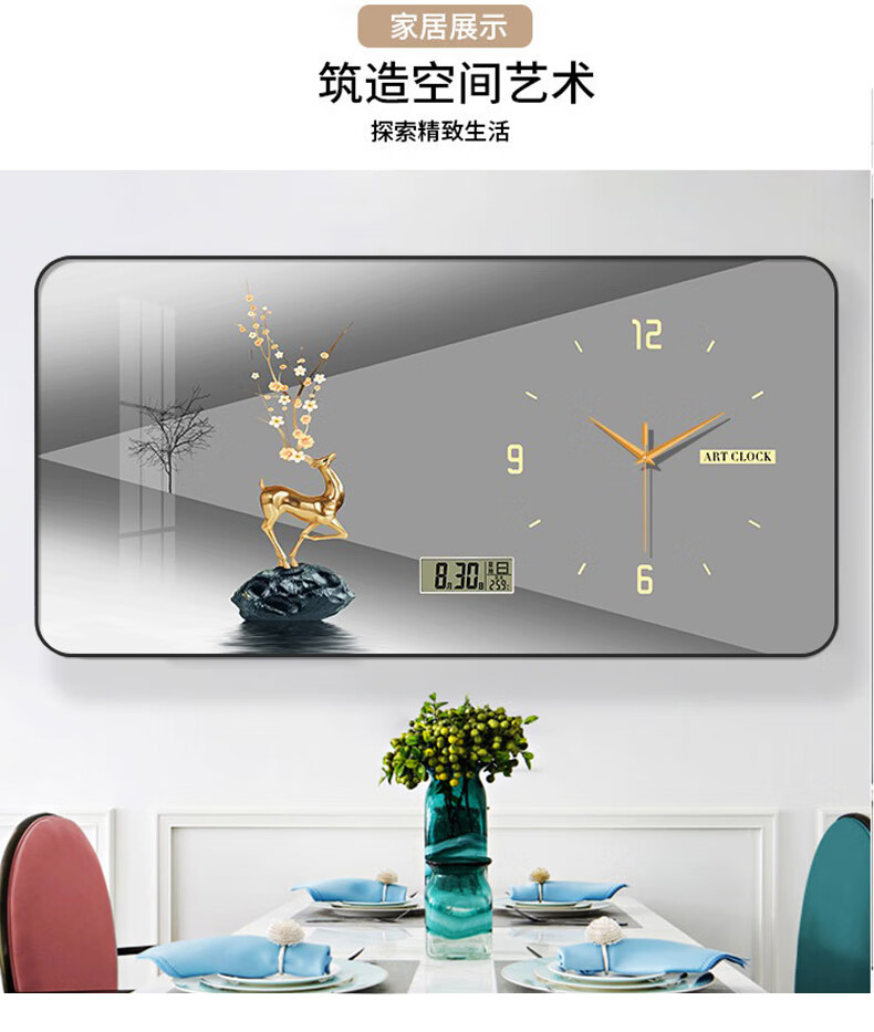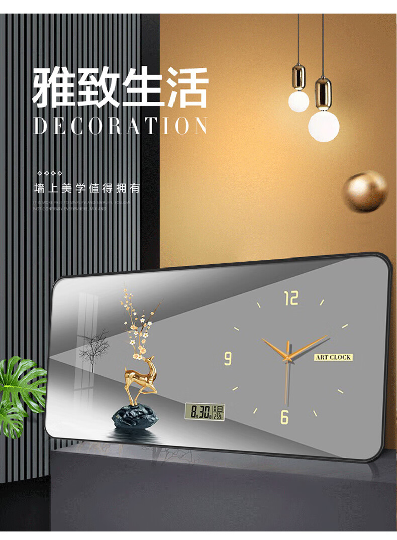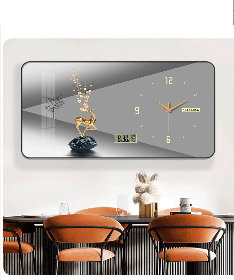 金鹿呈祥万年历挂钟【日历 60*30cm 】