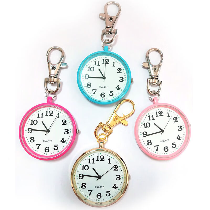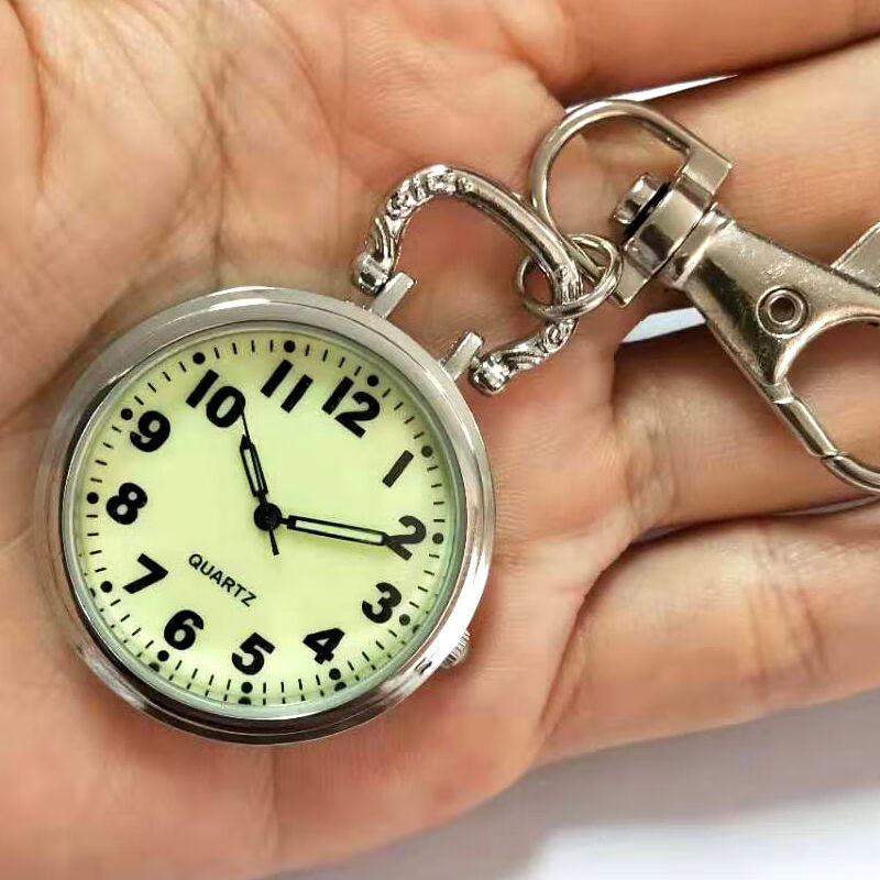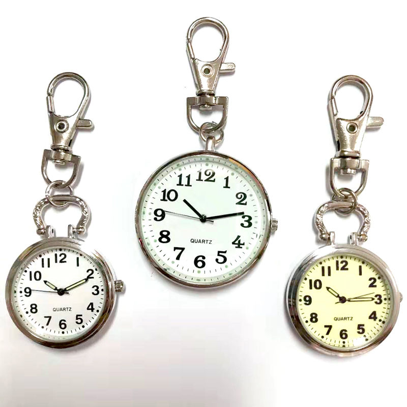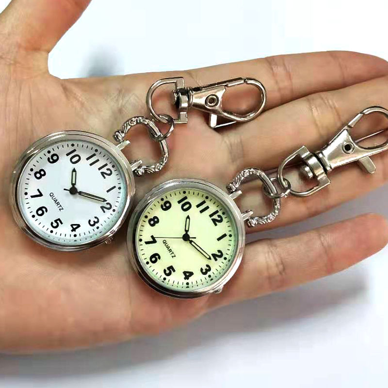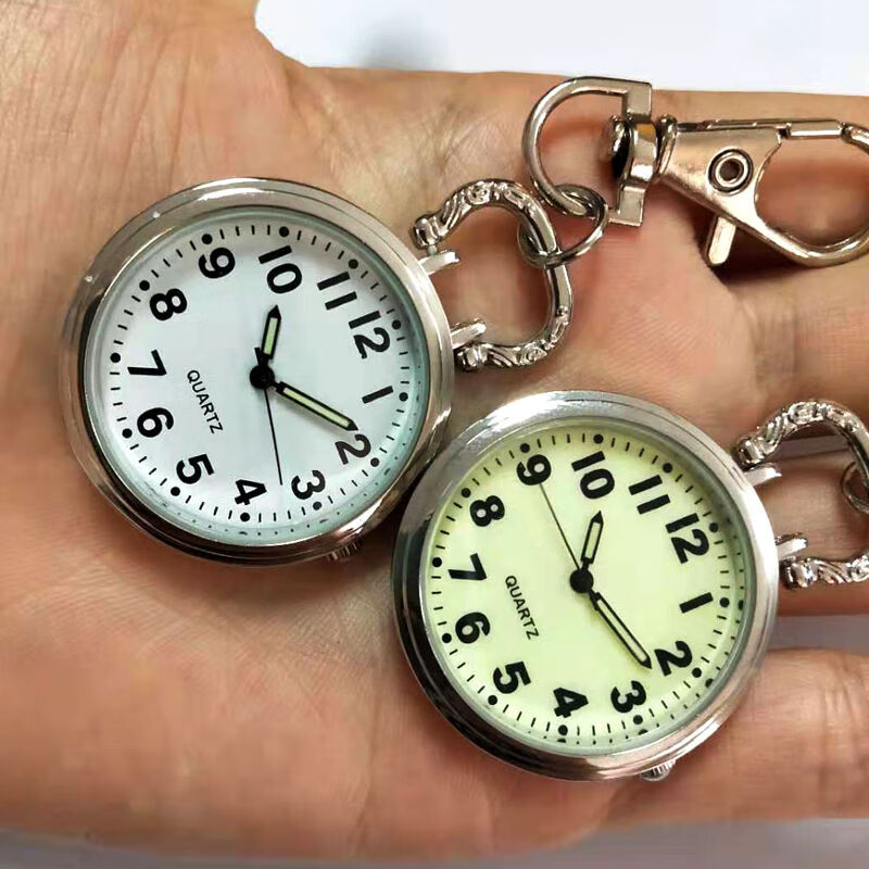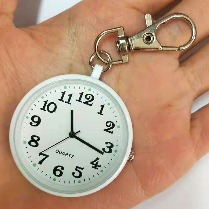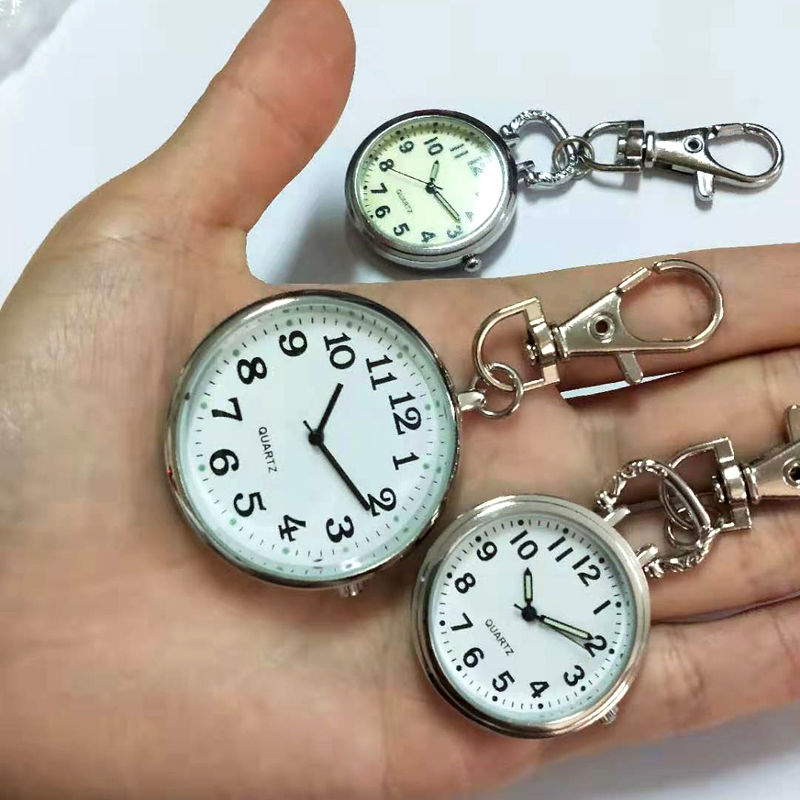 Jiaochi Elderly Clear Large Number Men's Pocket Watch Keychain Hanging Watch Student Exam Quartz Waterproof Watch Nurse Watch Silver 4cm