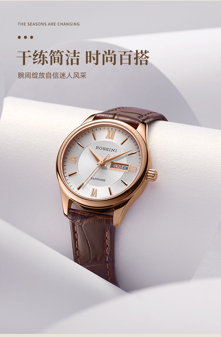 ROSSINI Watch Women's Quartz Watch White Disc Belt New Year Gift for Girlfriend National Watch Luxury Waterproof Calendar 618574