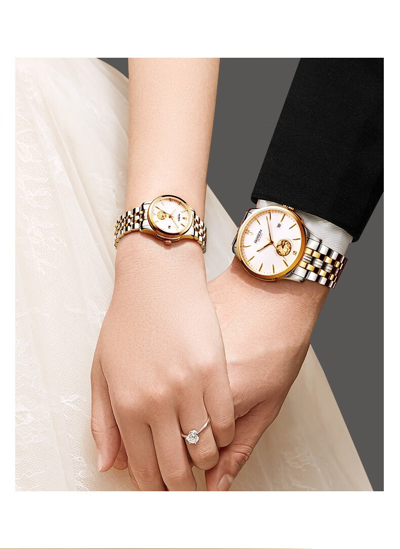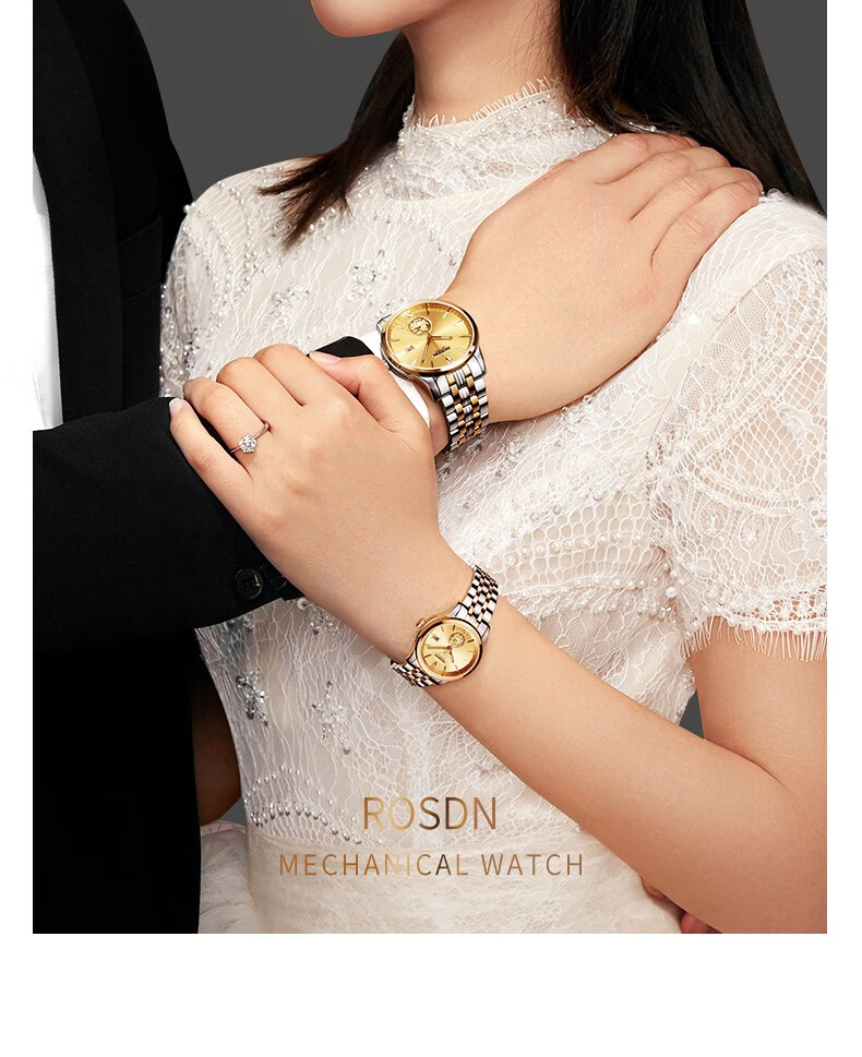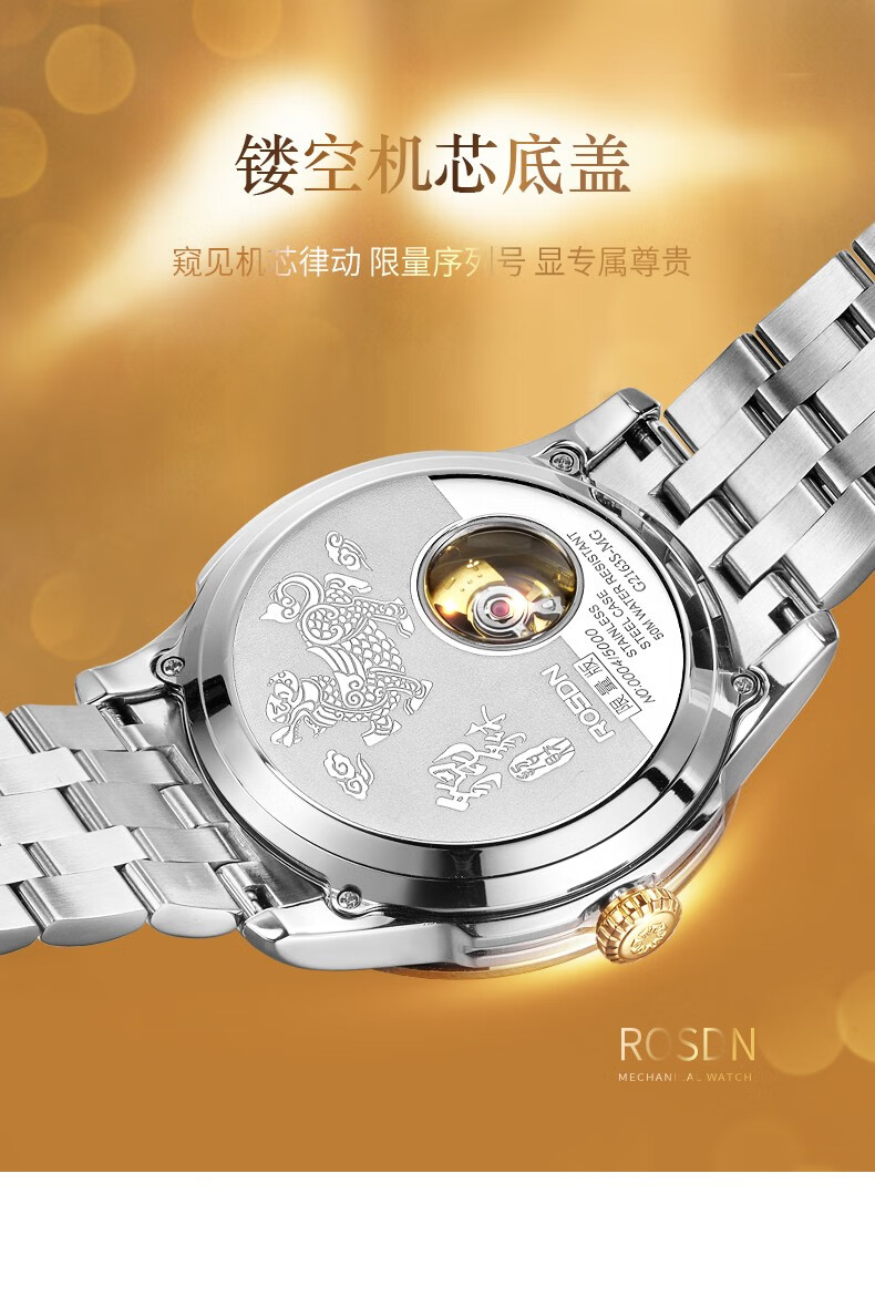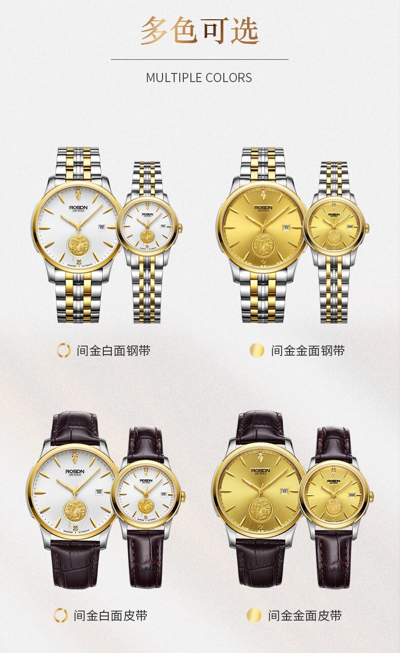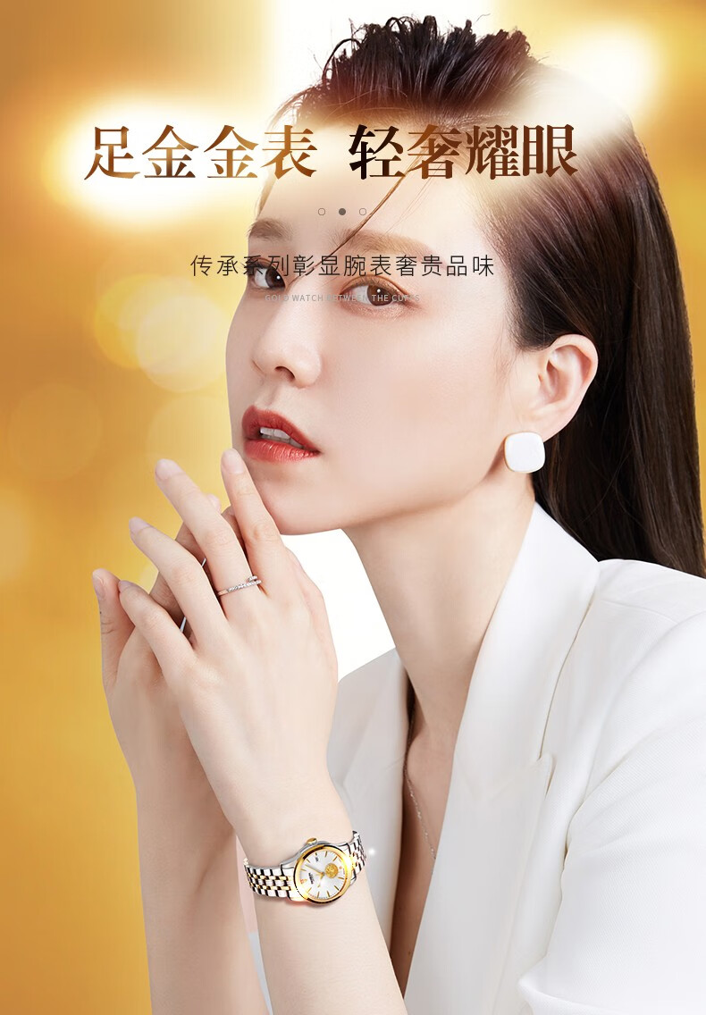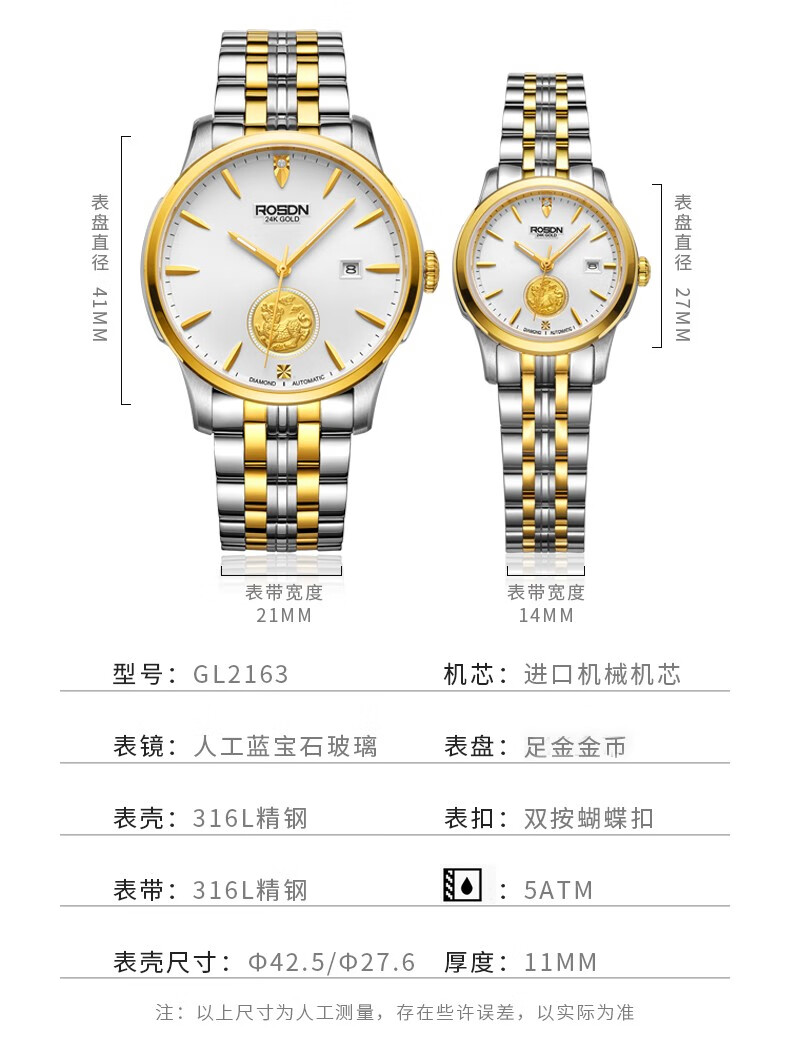 ROSDN Gold Watch Full Gold 999 Gold Coins Real Diamond Watch Women's Mechanical Watch Brand Swiss Quality Women's Watch 【 Zhaocai Nafu Pixiu 】 Medium Gold White Face Steel Strip
