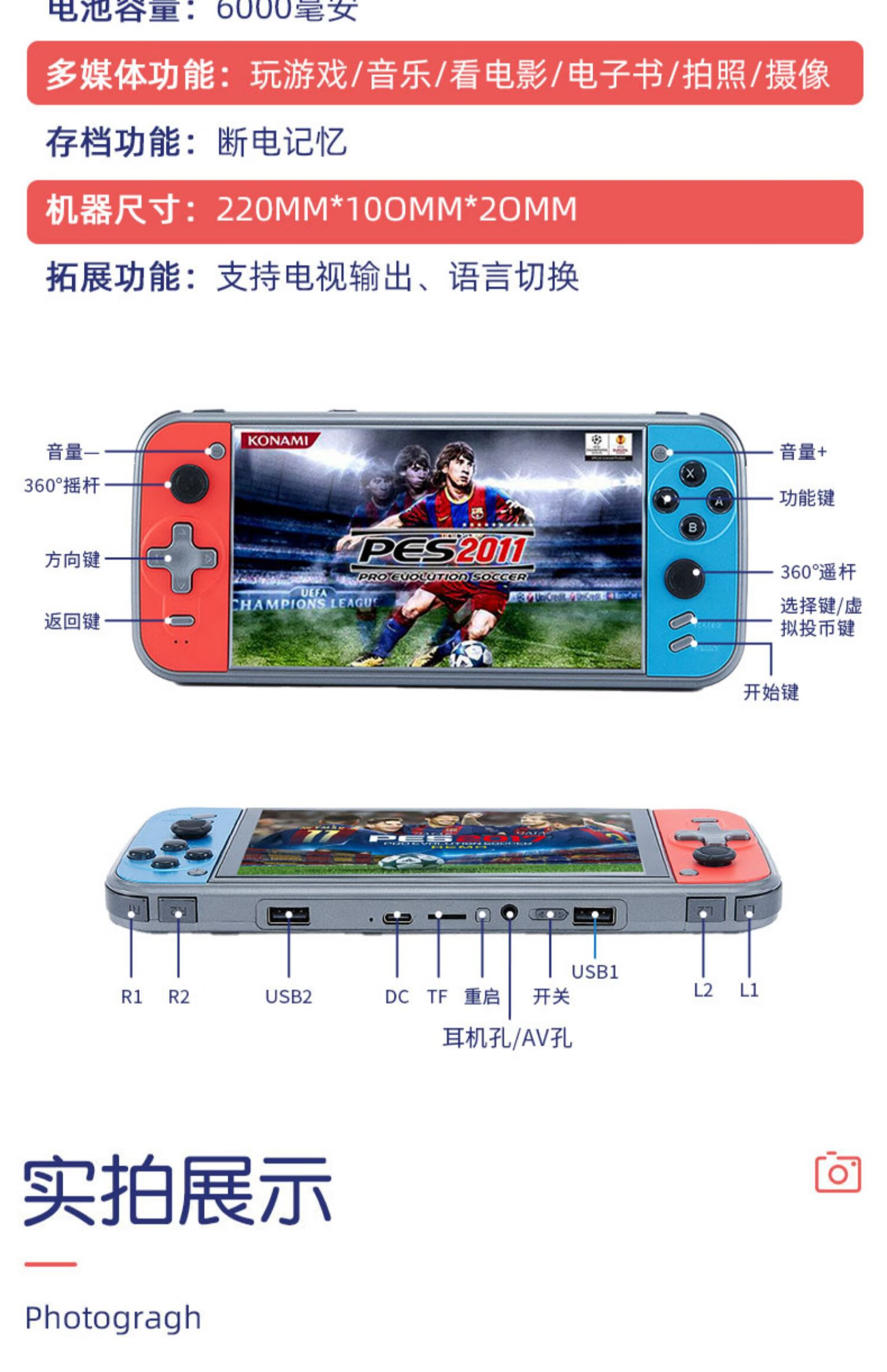 商品名称:RABMIV游戏机掌机掌上复古老式街机psp大屏游游机双人fc怀旧款gba宝可梦连电视儿童单机送男友 3.5寸/500游戏/单人版 单机标配_中国大陆
