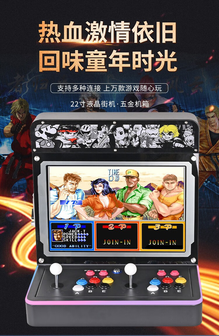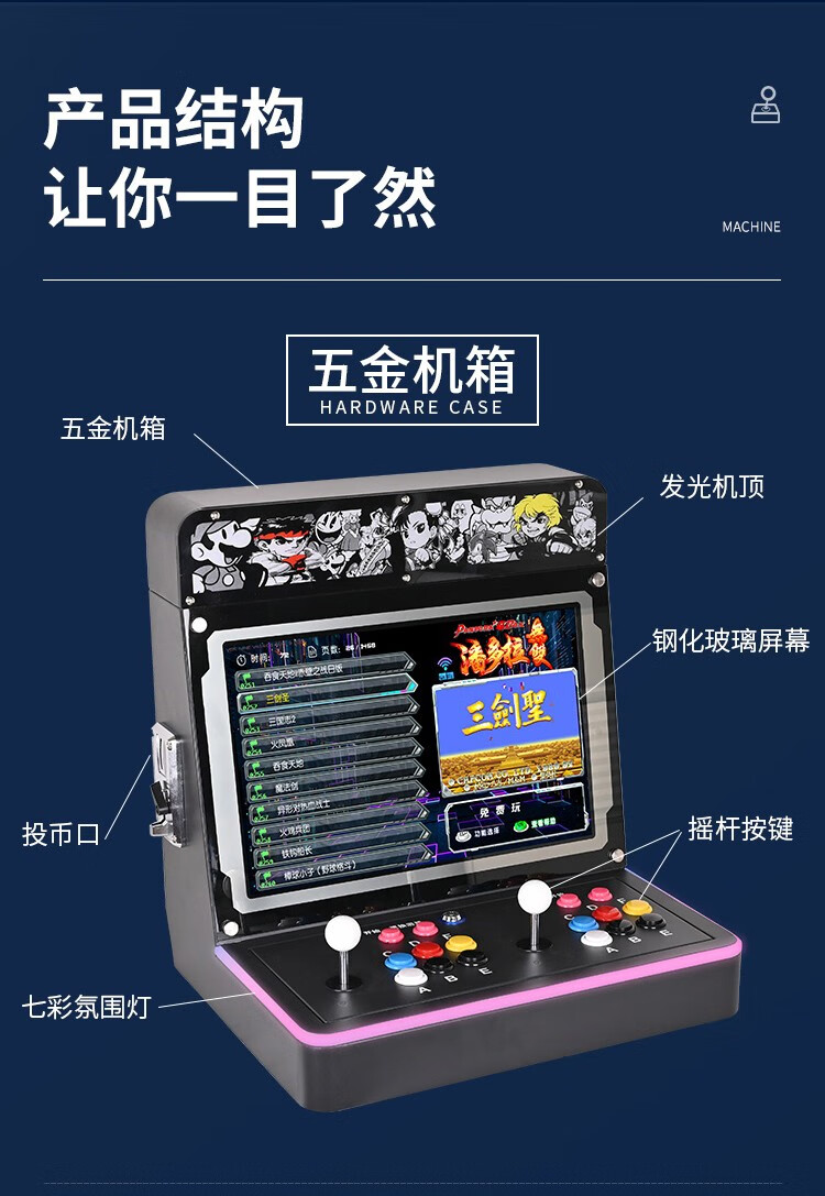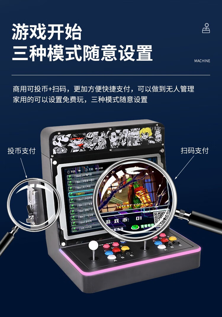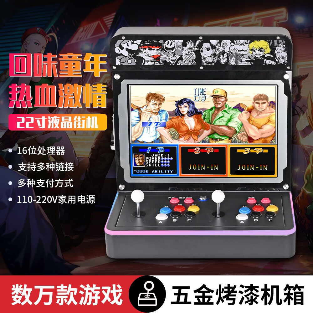 商品名称:微东街机游戏机潘多拉台式一体机月光宝盒双人投币摇杆97拳皇扫码家用商用经典怀旧游戏多合一格斗机便携式 22寸1080P2万个游戏WIFI128G