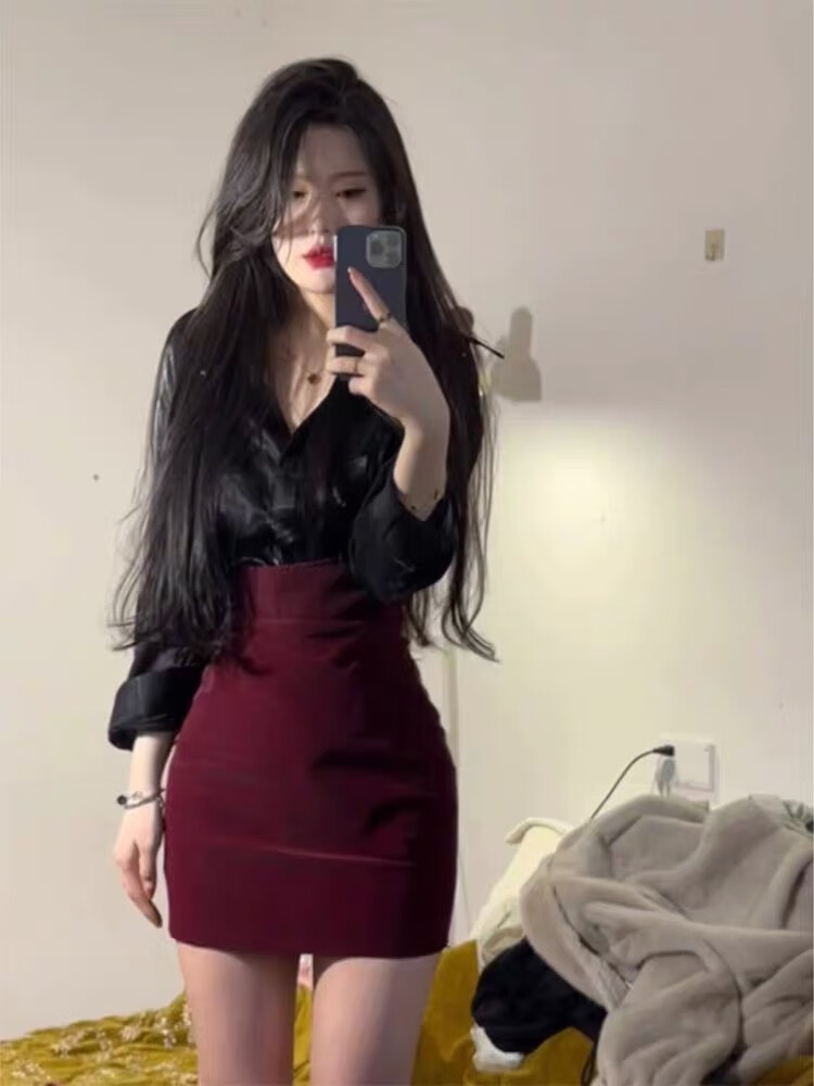 Majaomei's New Dress Set for Women 2023 Spring and Autumn French Kikyu Light Maturity Style, Elegant Sister, Shirt Wrapped Hip Skirt, Shirt+Skirt S