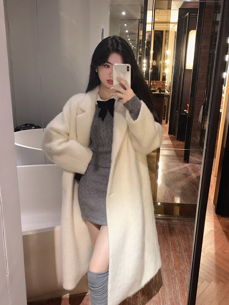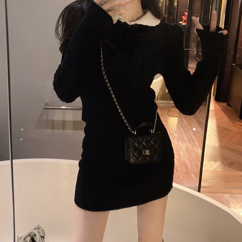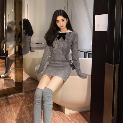 商品名称:欧若婷雅针织连衣裙秋冬小个子新款学院风蝴蝶结韩版时尚气质两件套套装裙 米白色 M