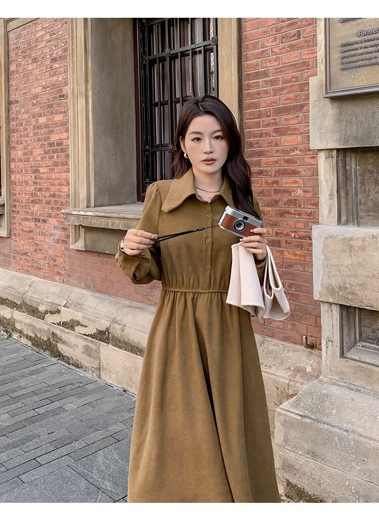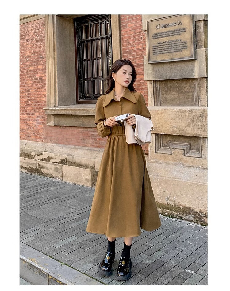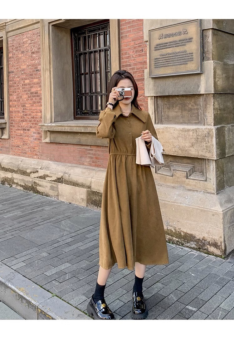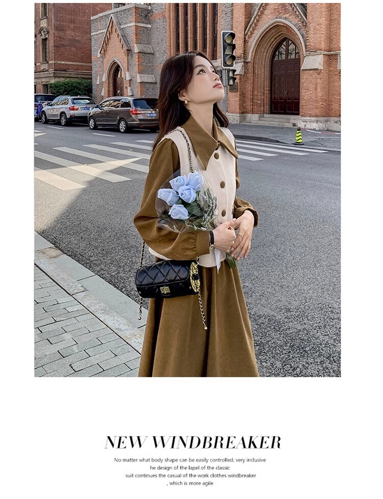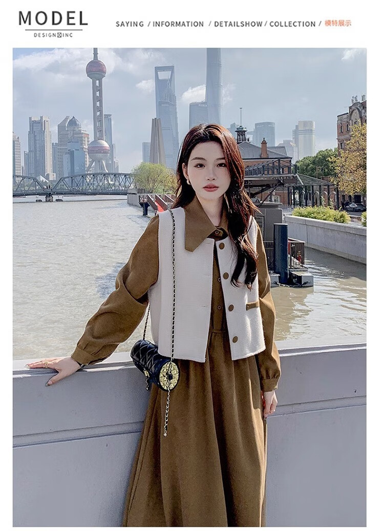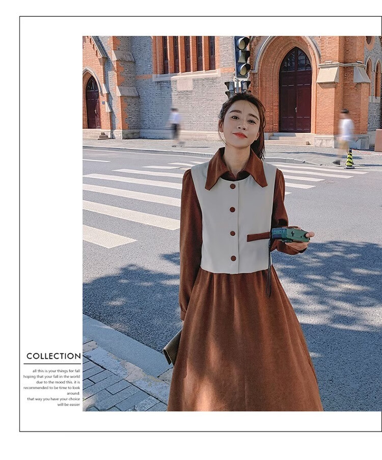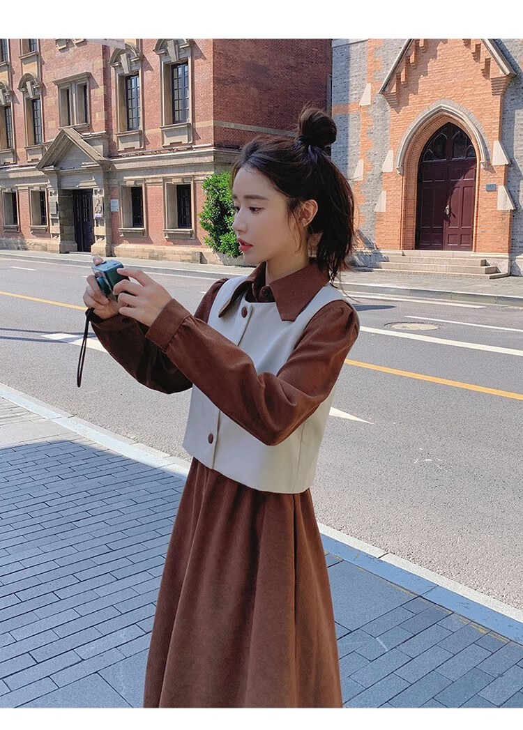 商品名称:宏资琦小香风连衣裙2023秋冬新款女装韩版长袖轻熟风马甲衬衫裙子两件装 咖色 L(建议110—119斤)