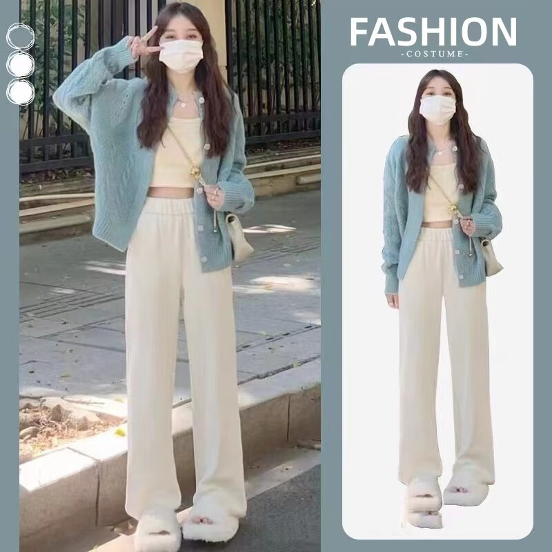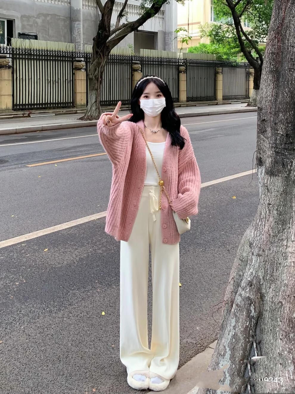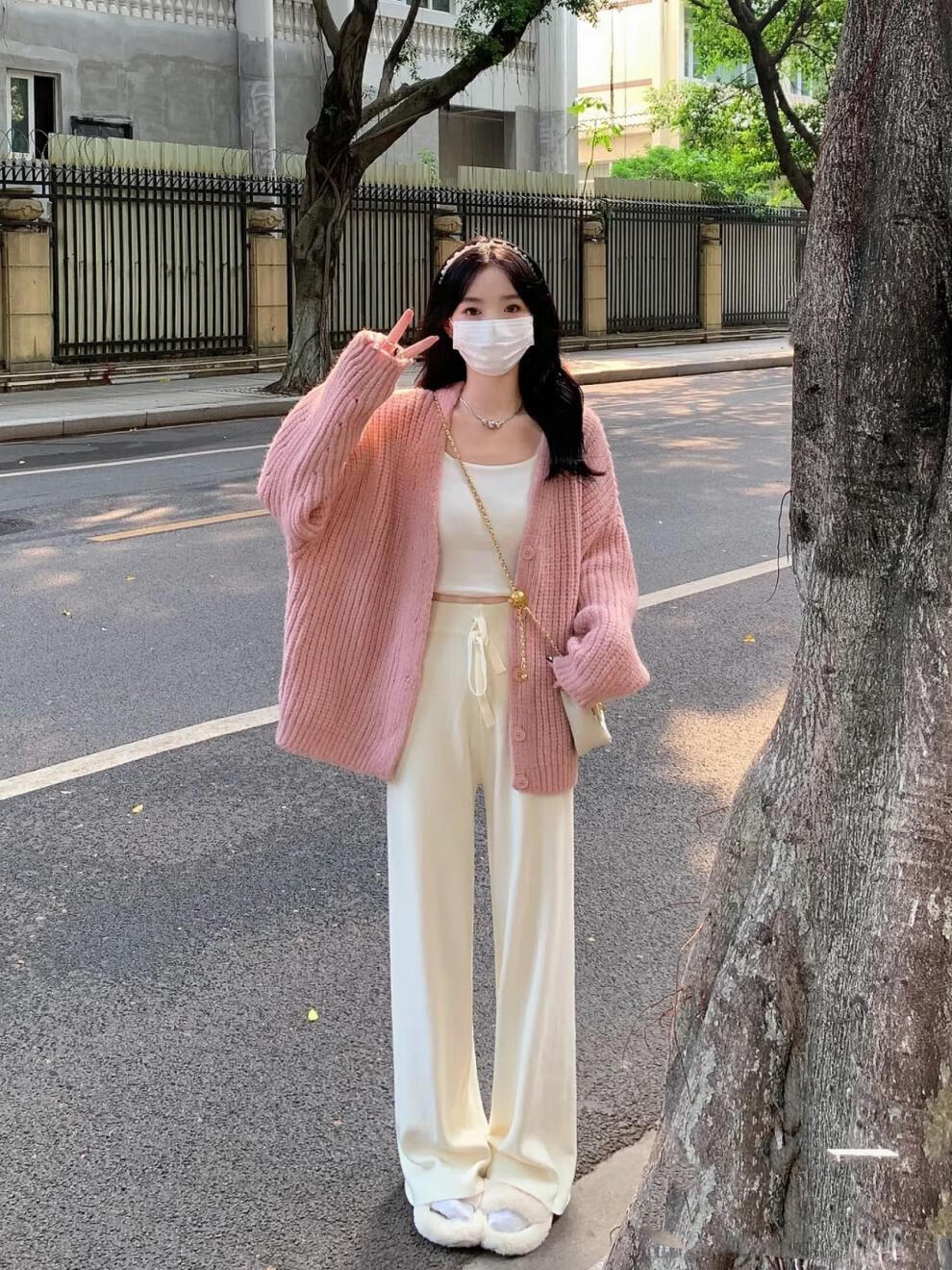 商品名称:领季休闲套装卫衣女装法式感秋冬新款早秋女可盐可甜洋气小个子套装女 粉色外套+裤子+吊带 M 建议91-106斤