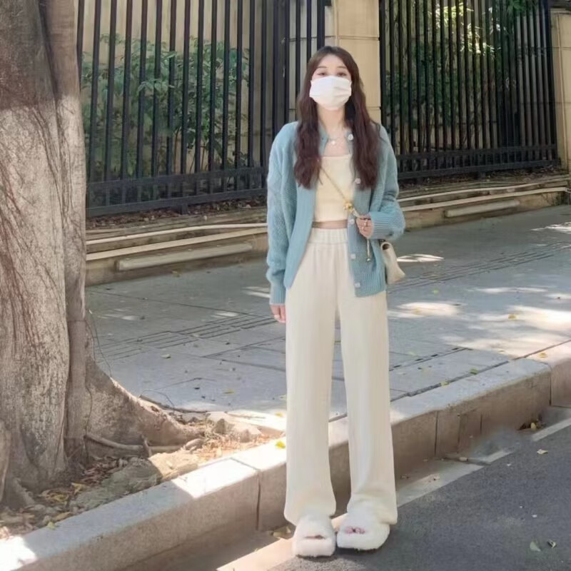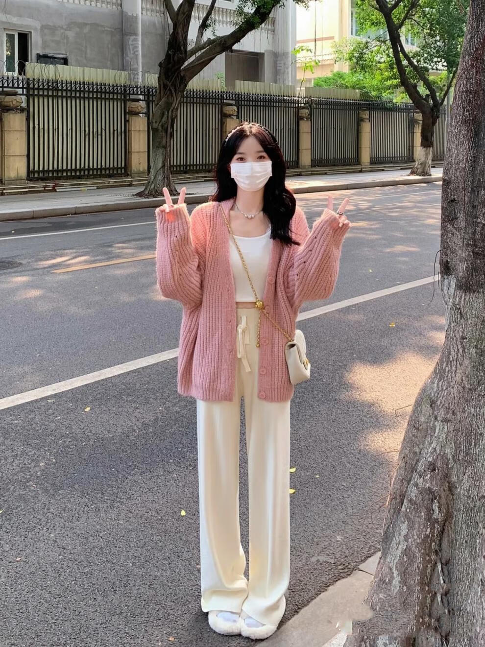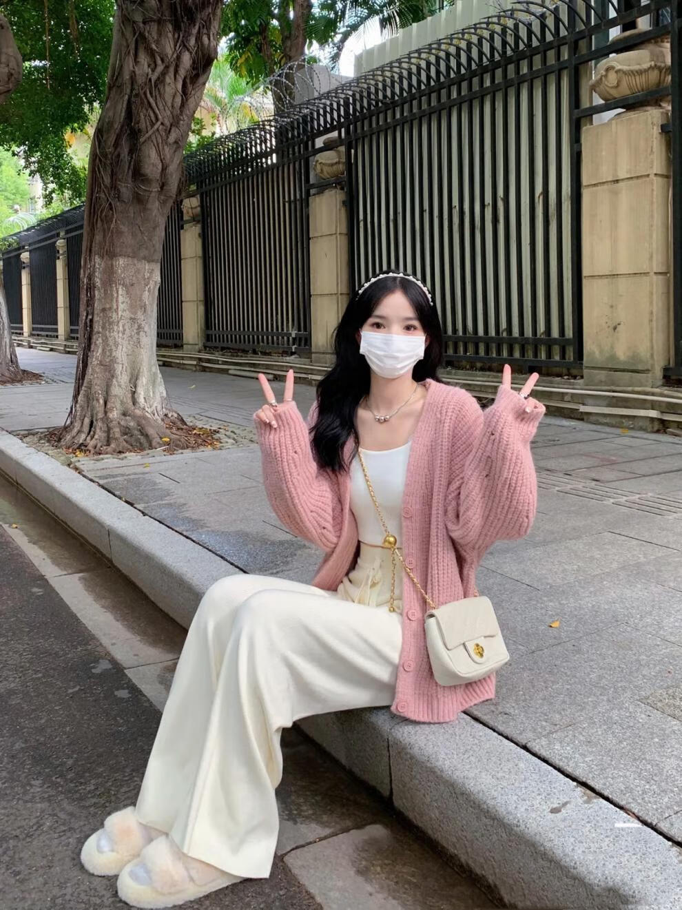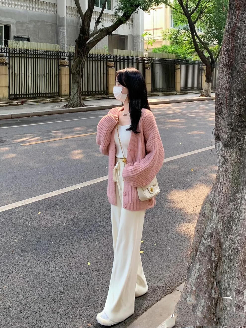 商品名称:领季休闲套装卫衣女装法式感秋冬新款早秋女可盐可甜洋气小个子套装女 粉色外套+裤子+吊带 M 建议91-106斤