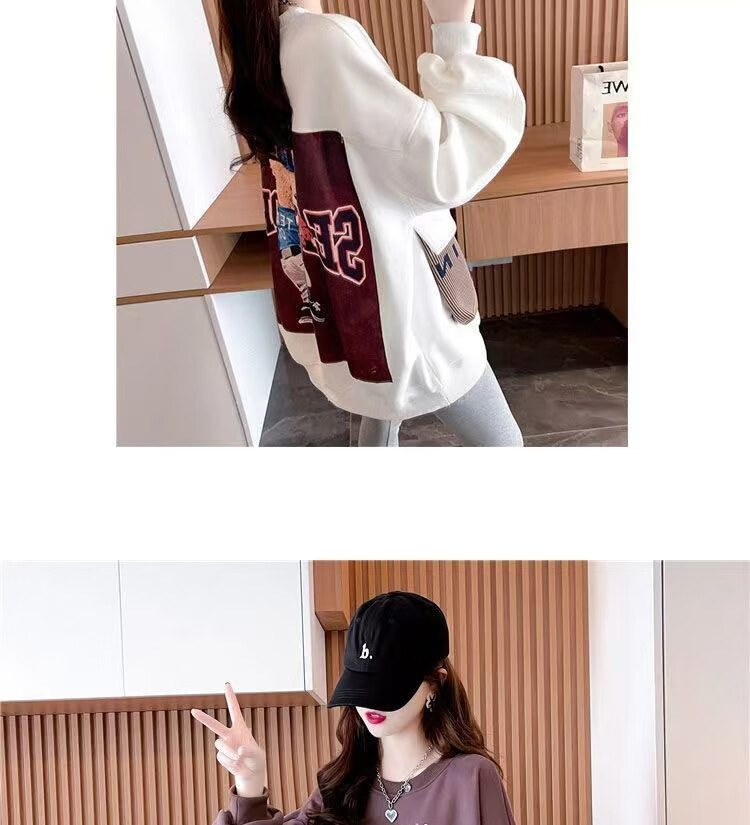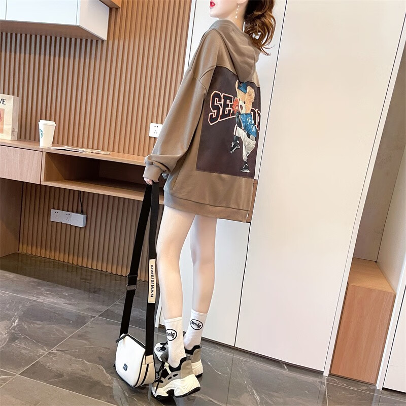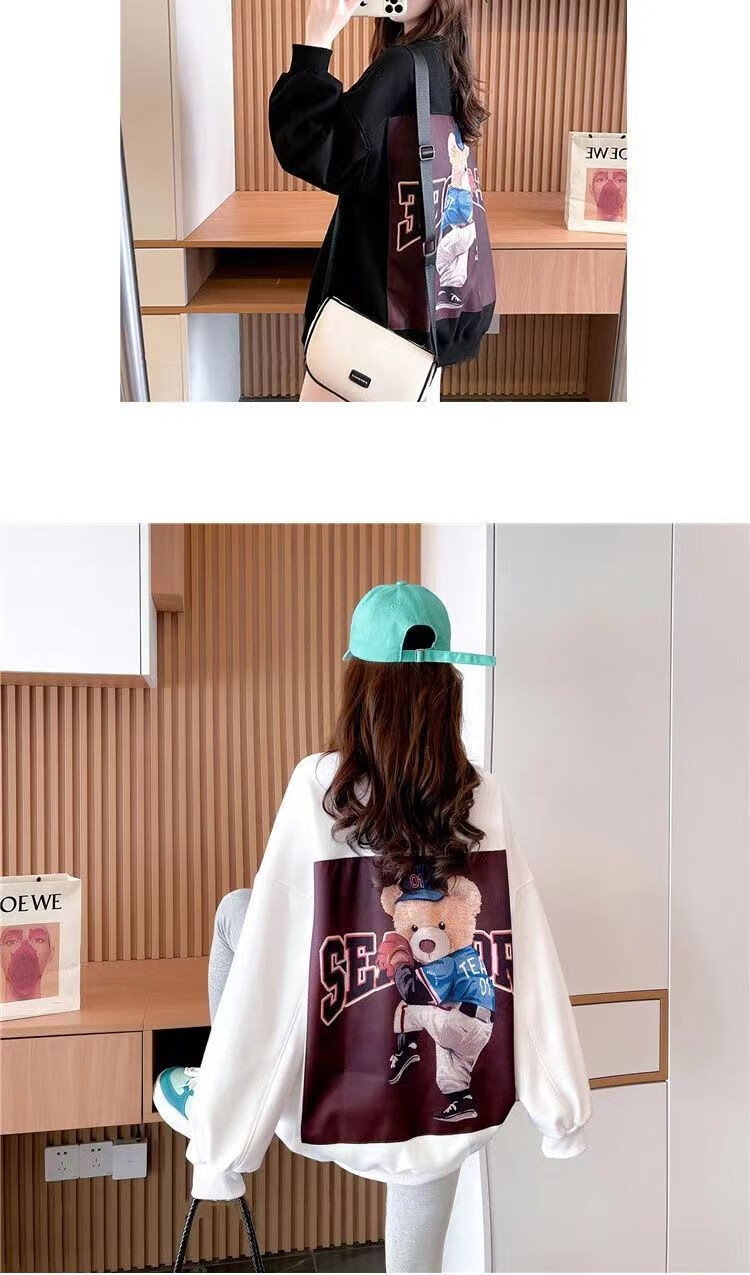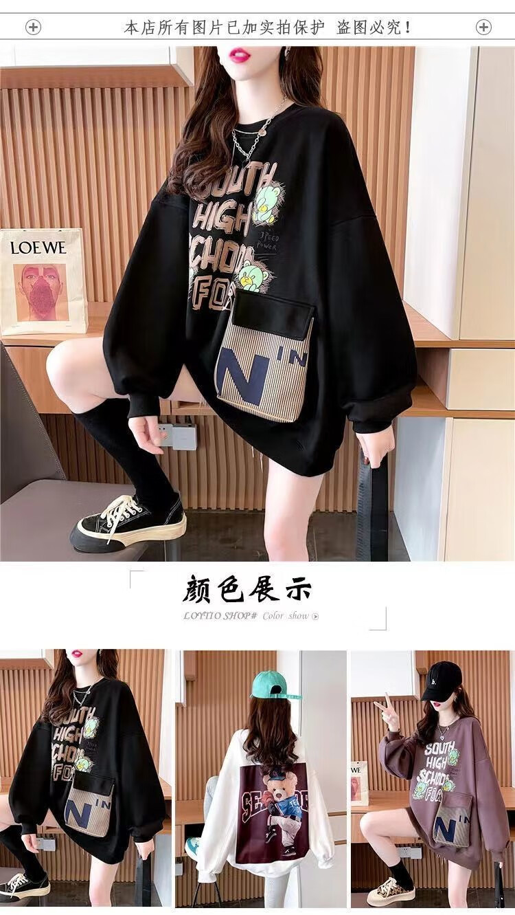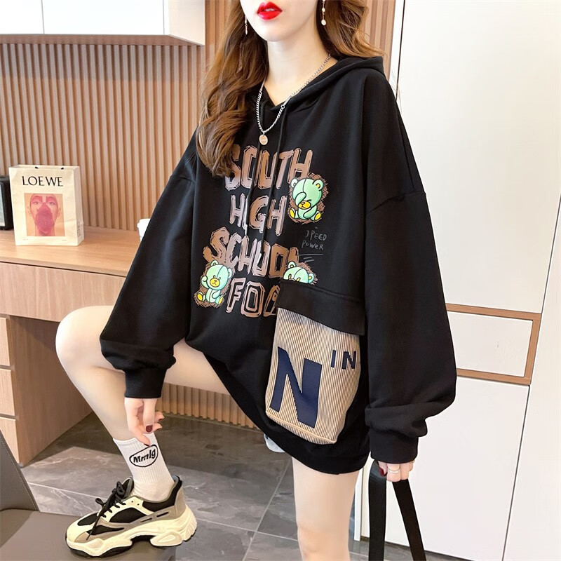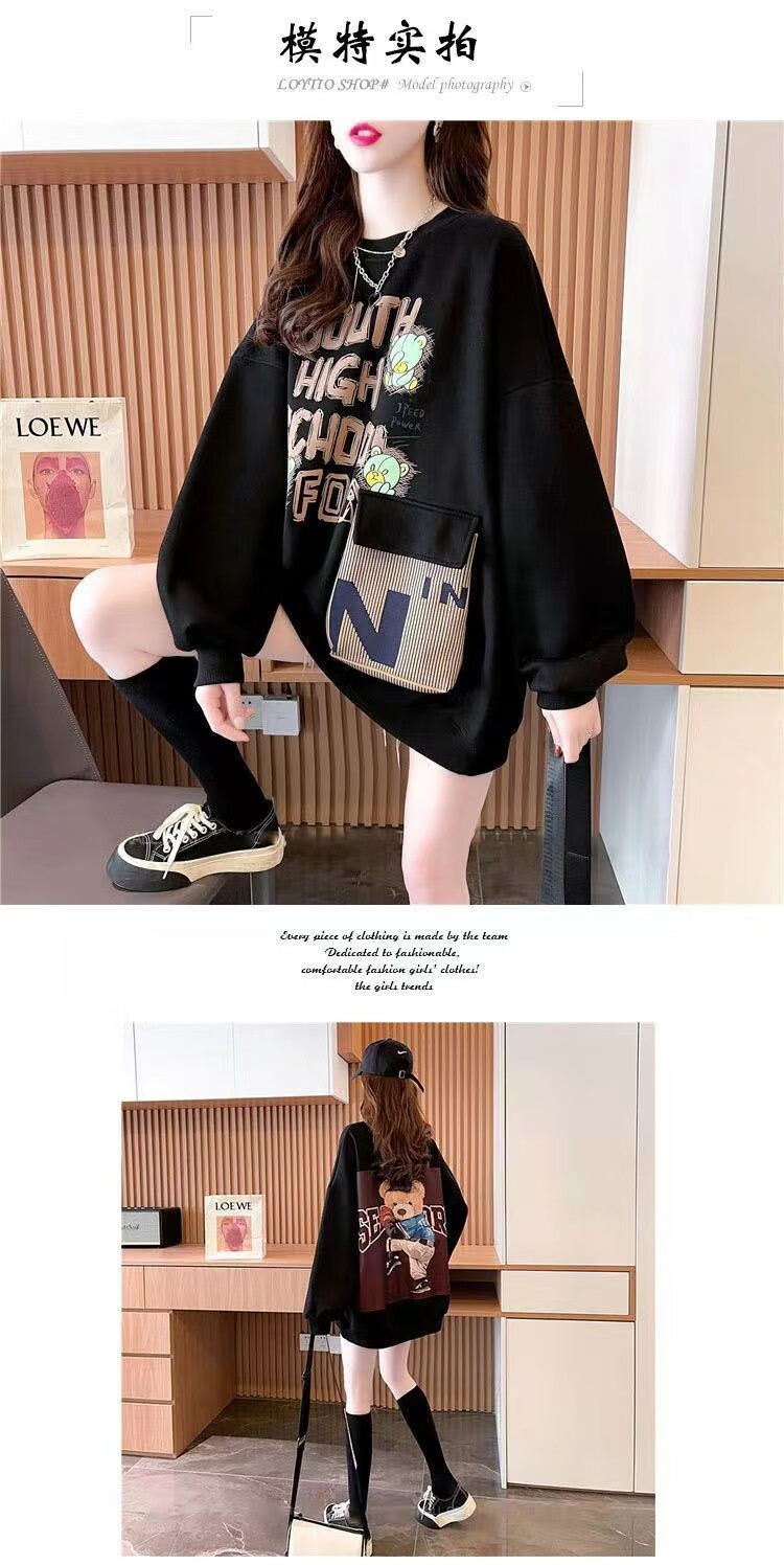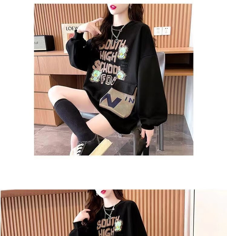 商品名称:凡龙春秋新款卫衣女韩版宽松慵懒风长袖上衣女ins印花潮网红同款显瘦 黑色 M【建议80-105斤】