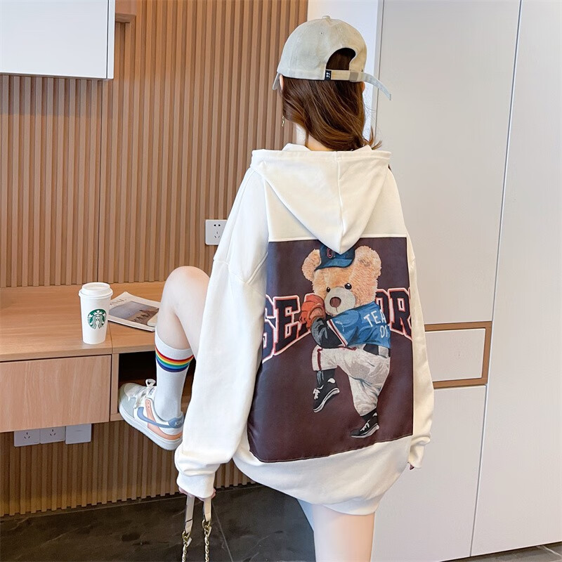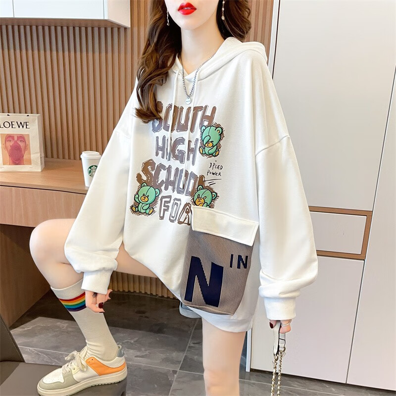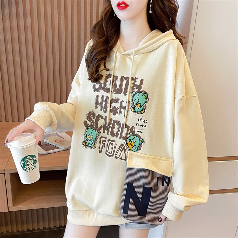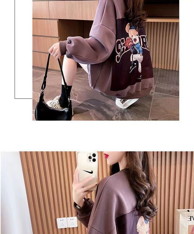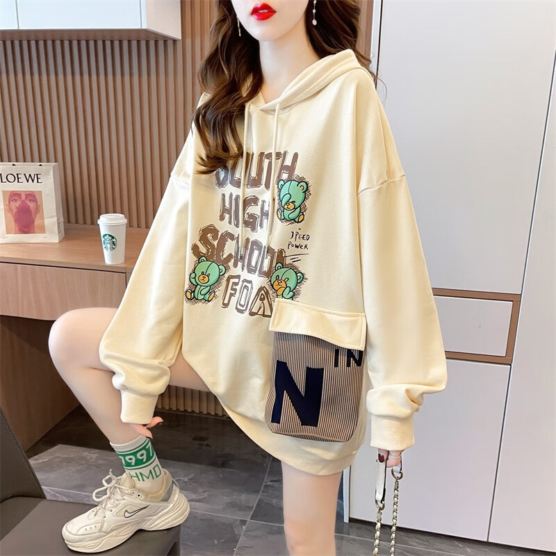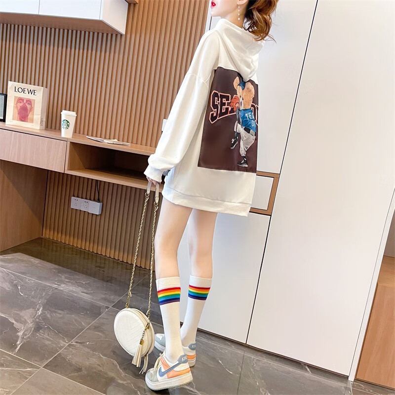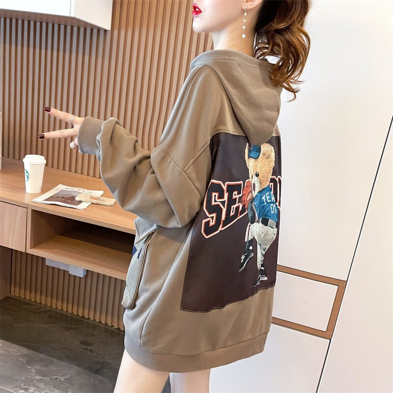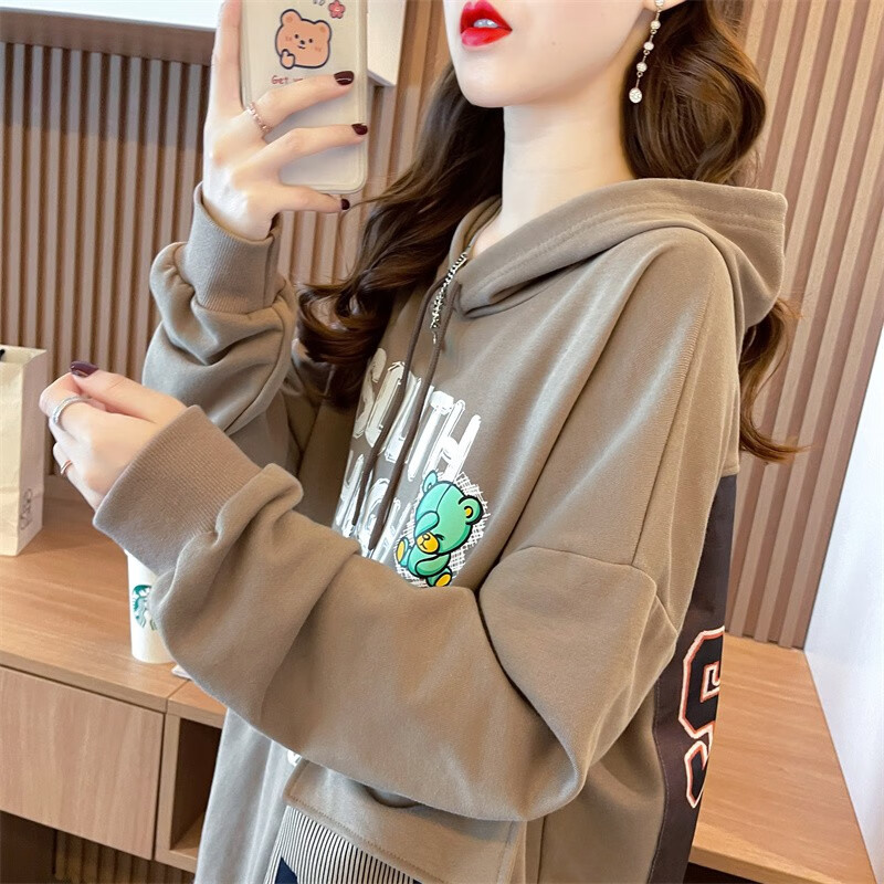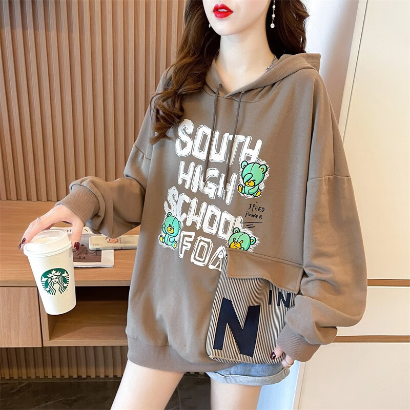 商品名称:凡龙春秋新款卫衣女韩版宽松慵懒风长袖上衣女ins印花潮网红同款显瘦 黑色 M【建议80-105斤】