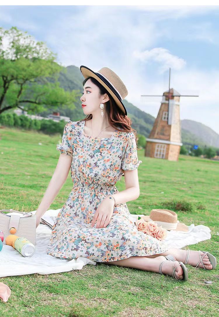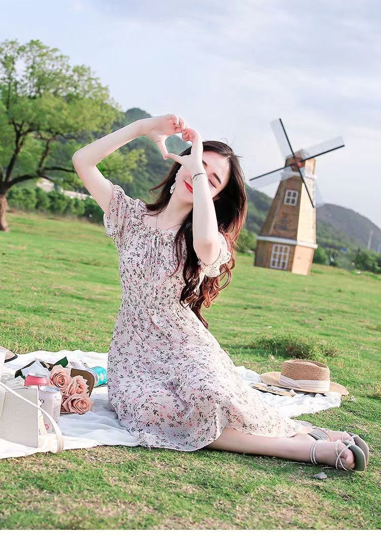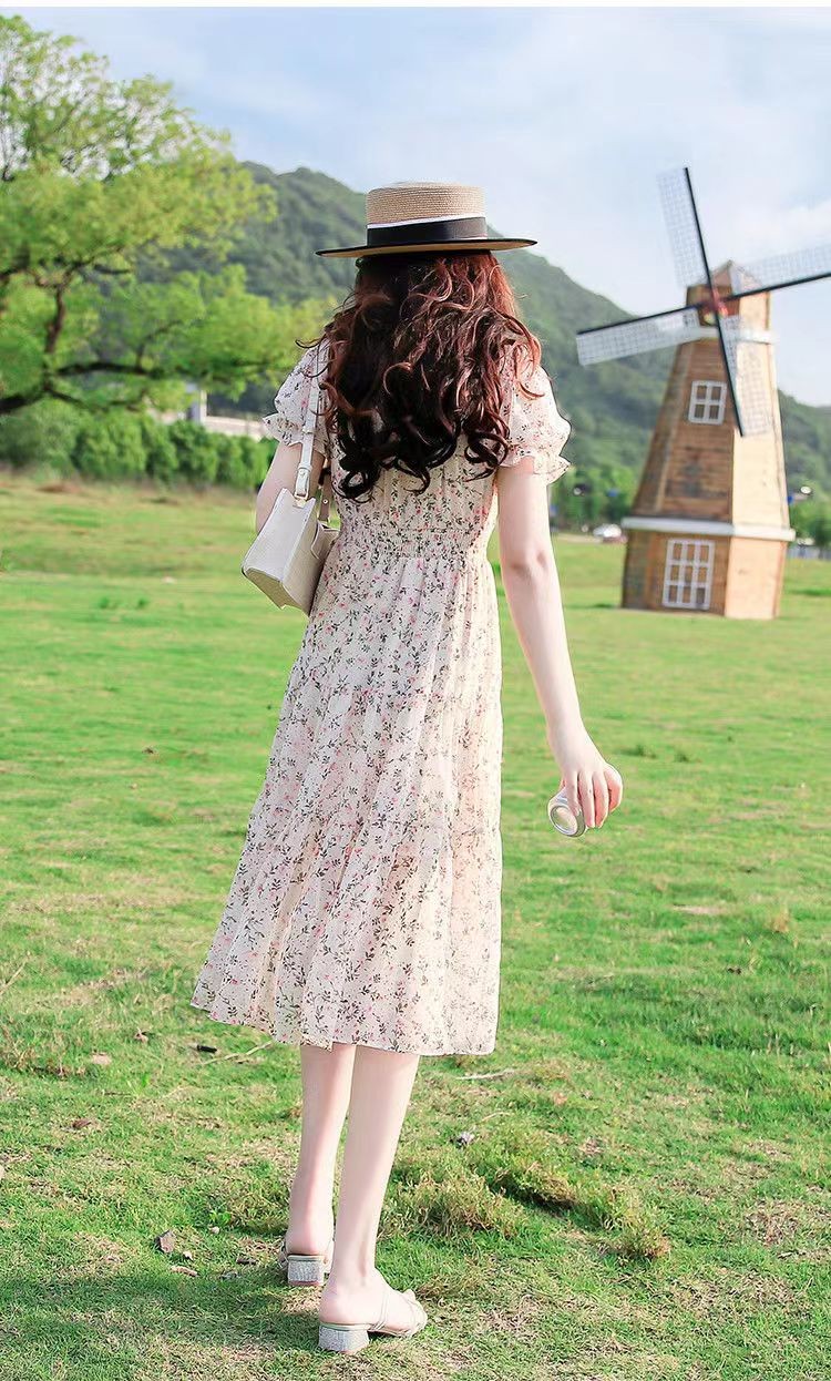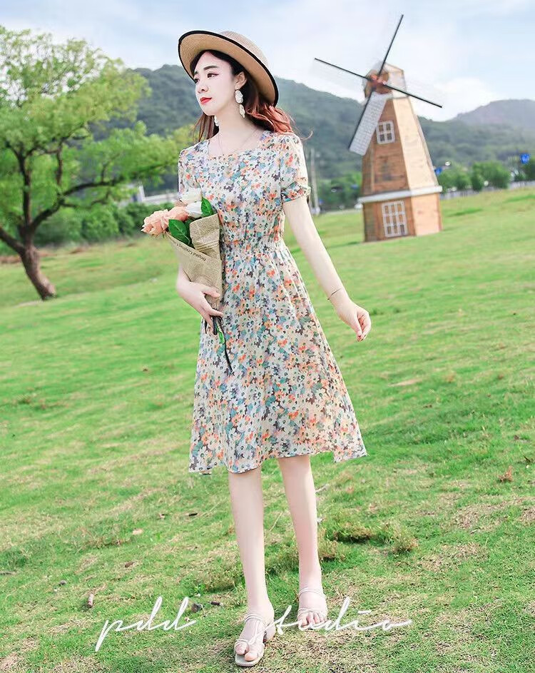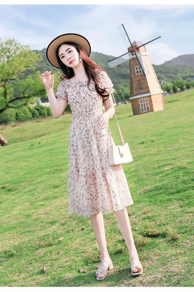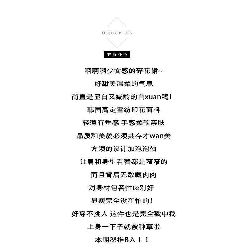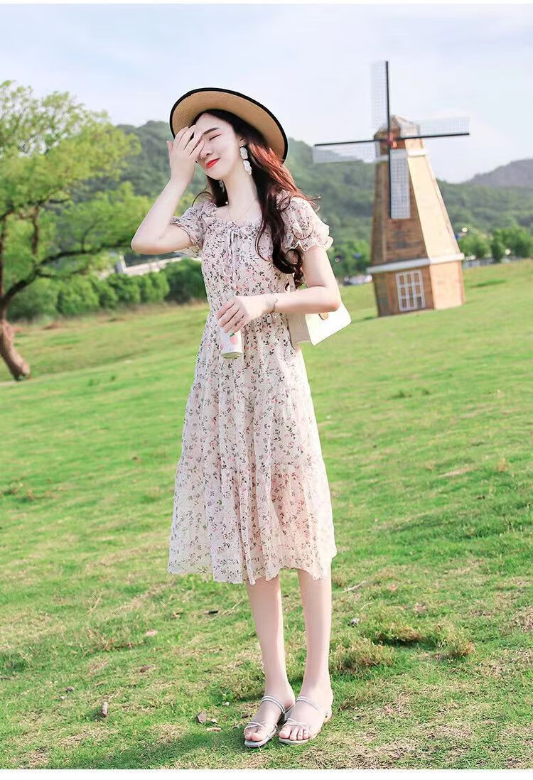 商品名称:凡龙 碎花雪纺连衣裙中长款2022新款夏季显瘦收腰减龄气质甜美小清新少女感小个子连衣裙 优雅款 M【建议95-105斤】
