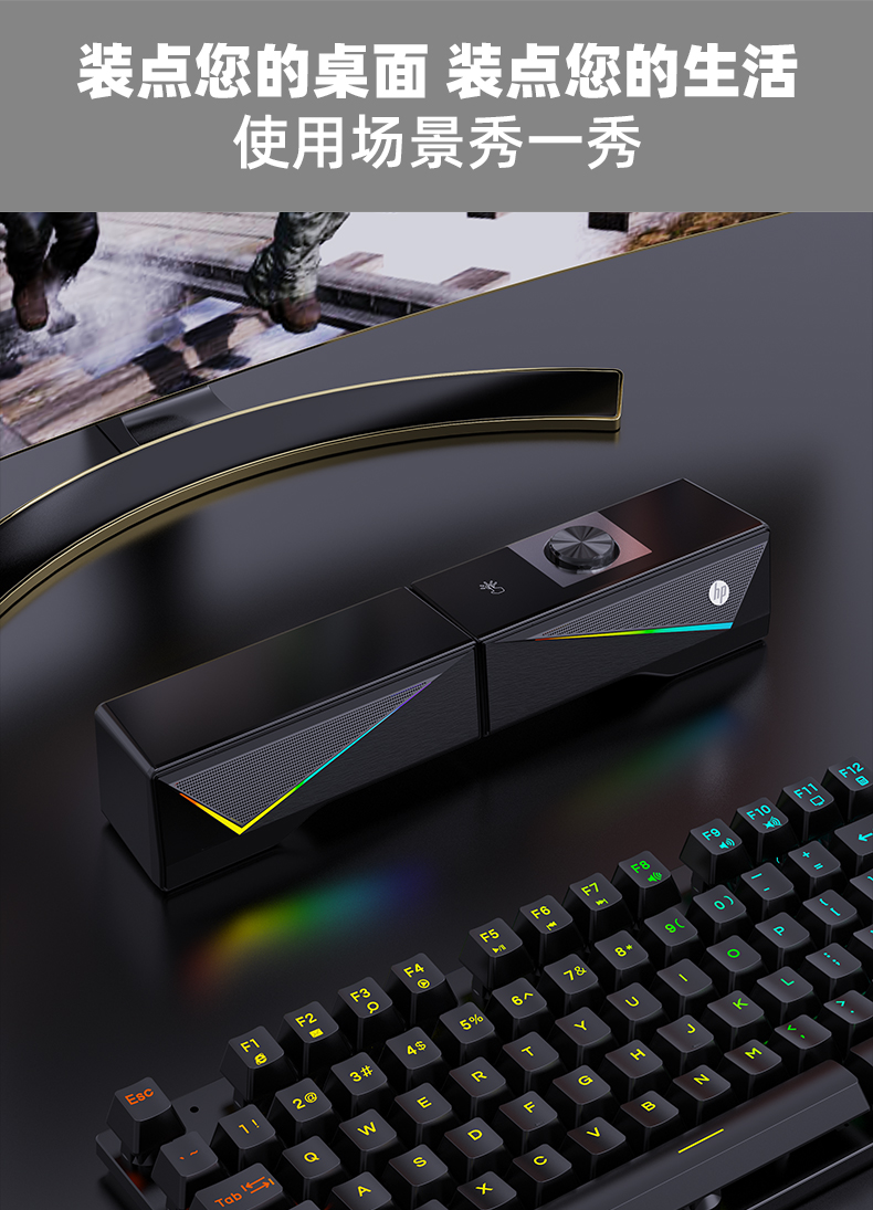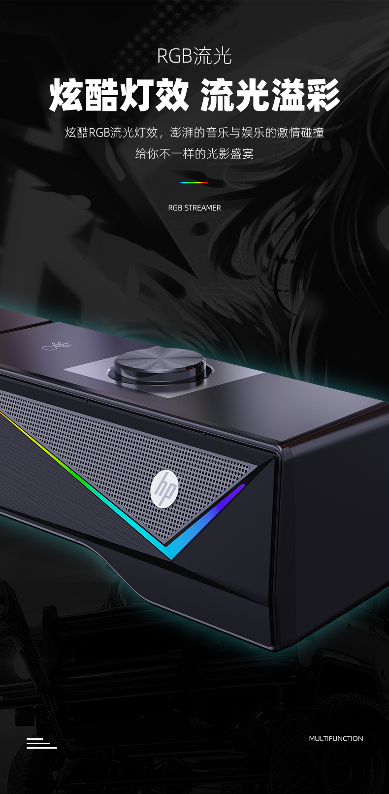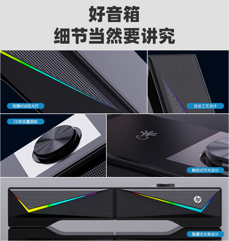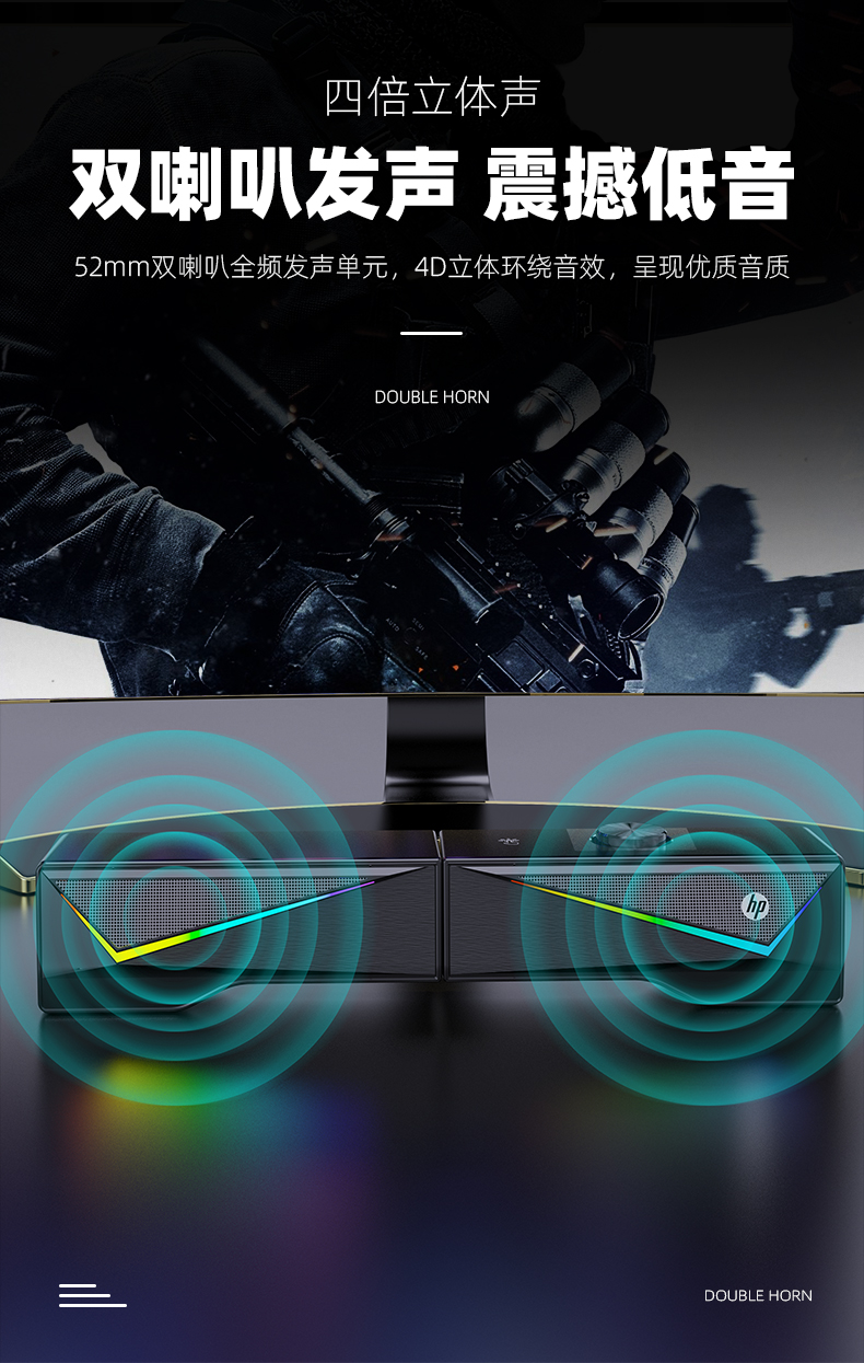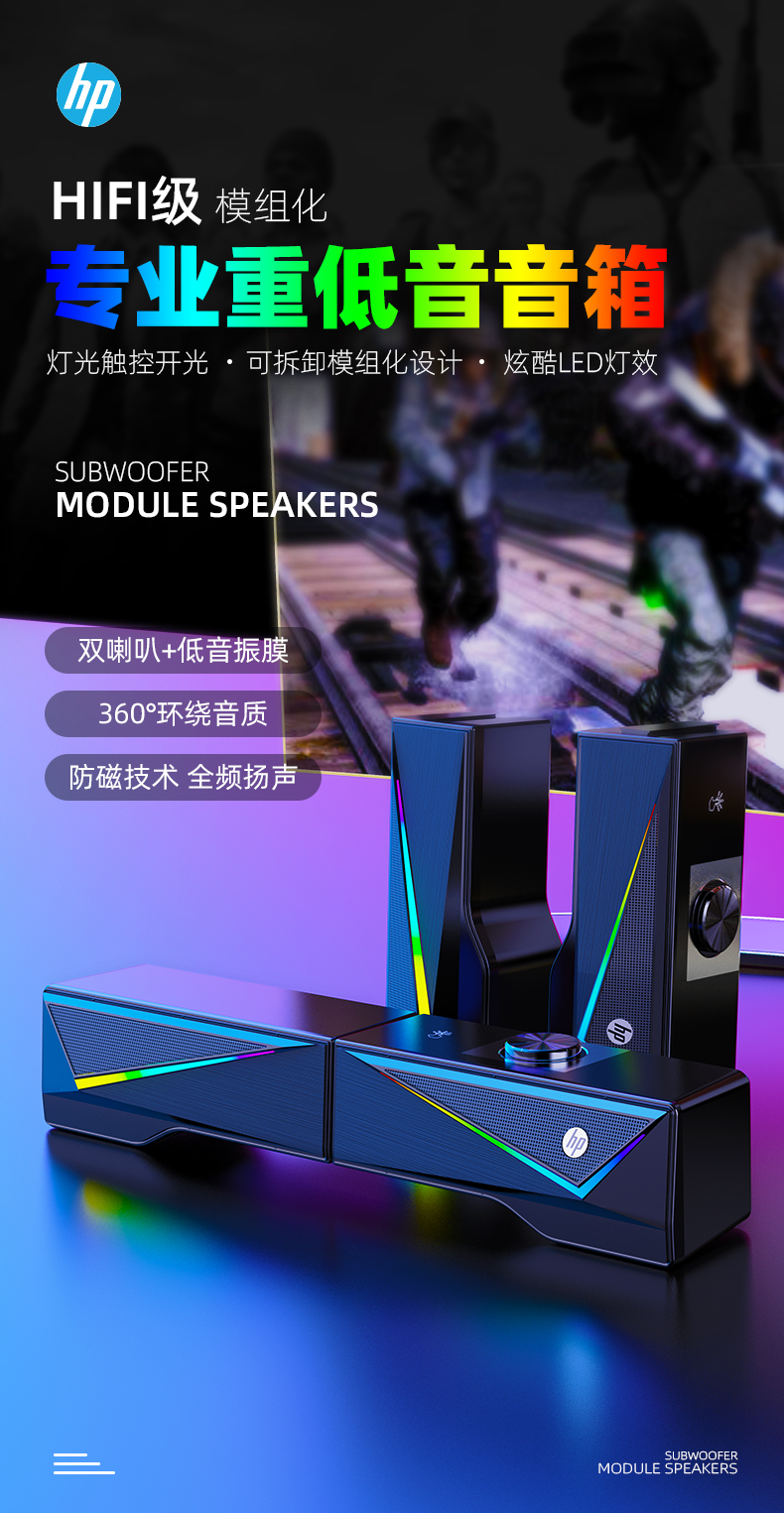 HP computer speaker, home desktop computer, laptop, subwoofer, long bar mini steel cannon, high volume USB multimedia cable DHE-6005